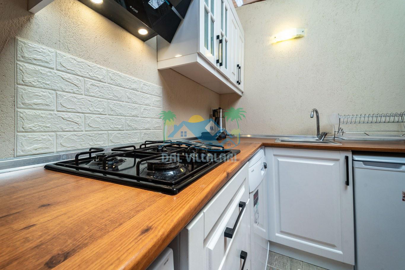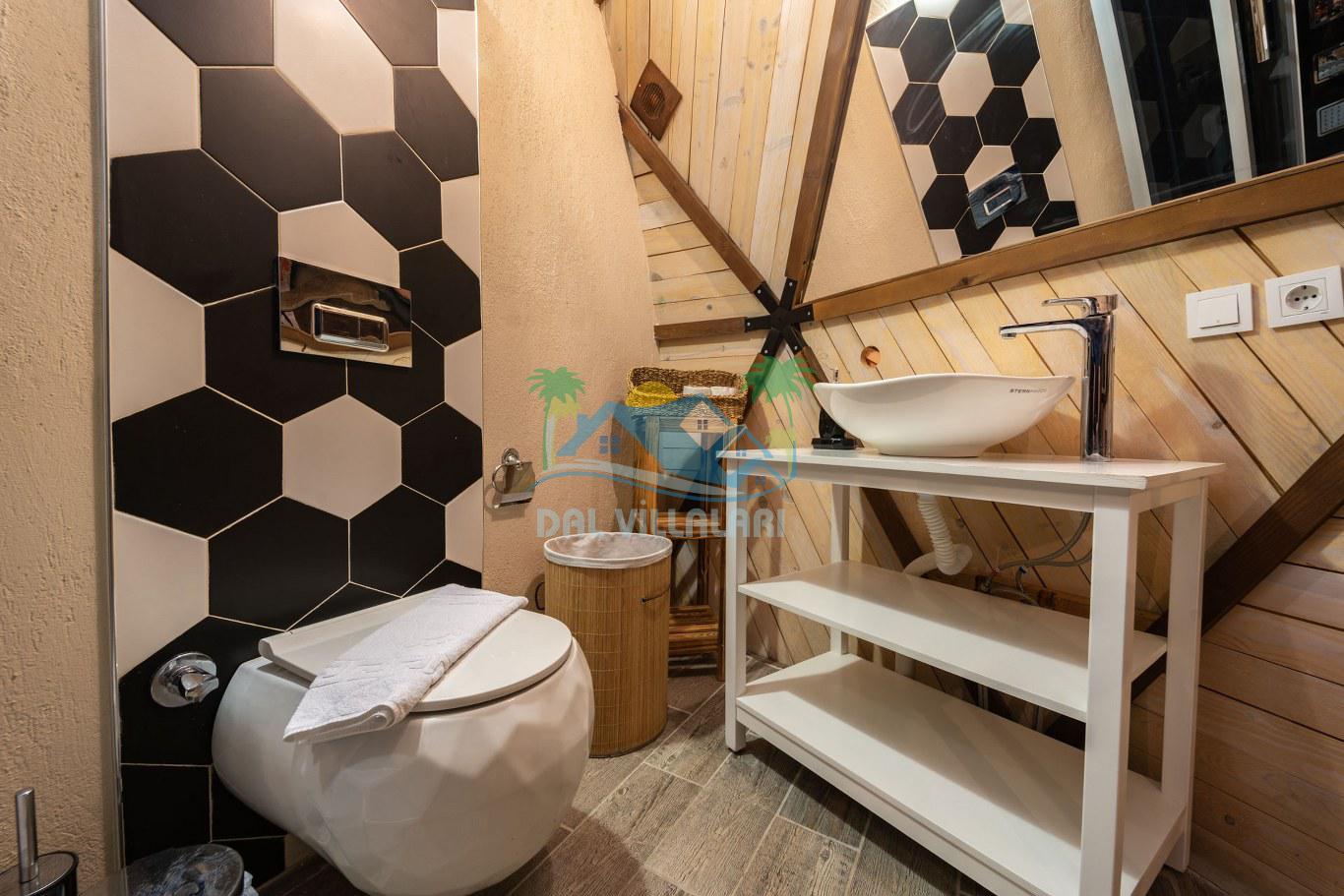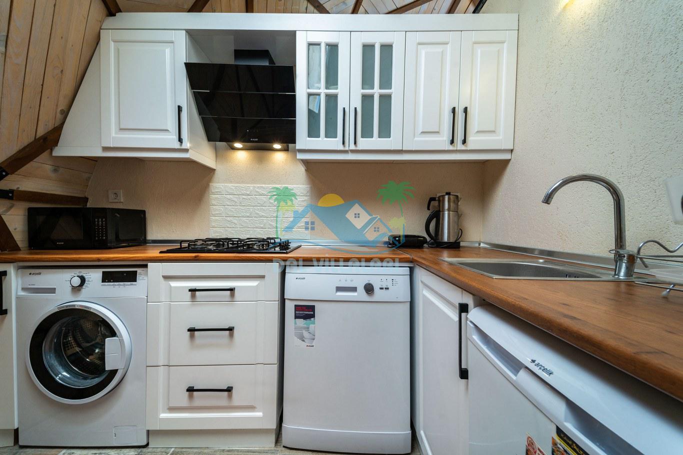 Villalarımızın iç mekanında standart olarak 2 kişilik yatak, 2 koltuk ve sehpa, makyaj masası, küçük bir yemek masası, Akıllı TV ve Uydu yayını, açık gardrop, yangın söndürme tüpü, klima ve uzaktan kumandalı tavan vantilatörü bulunmaktadır. Mutfak bölümünde ise çamaşır-bulaşık makinesi, mini buzdolabı (114 litre), mikrodalga fırın, ankastre ocak-davlumbaz ve yeterli mutfak malzemesi mevcuttur. Kısa süreli konaklayan misafirler için çay-kahve seti ve tek kullanımlık şampuan, saç kremi, sabun gibi buklet malzemeleri temin edilmektedir.