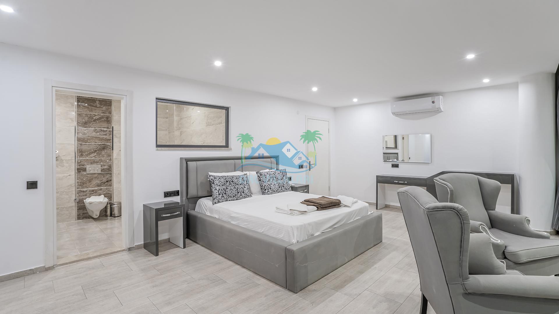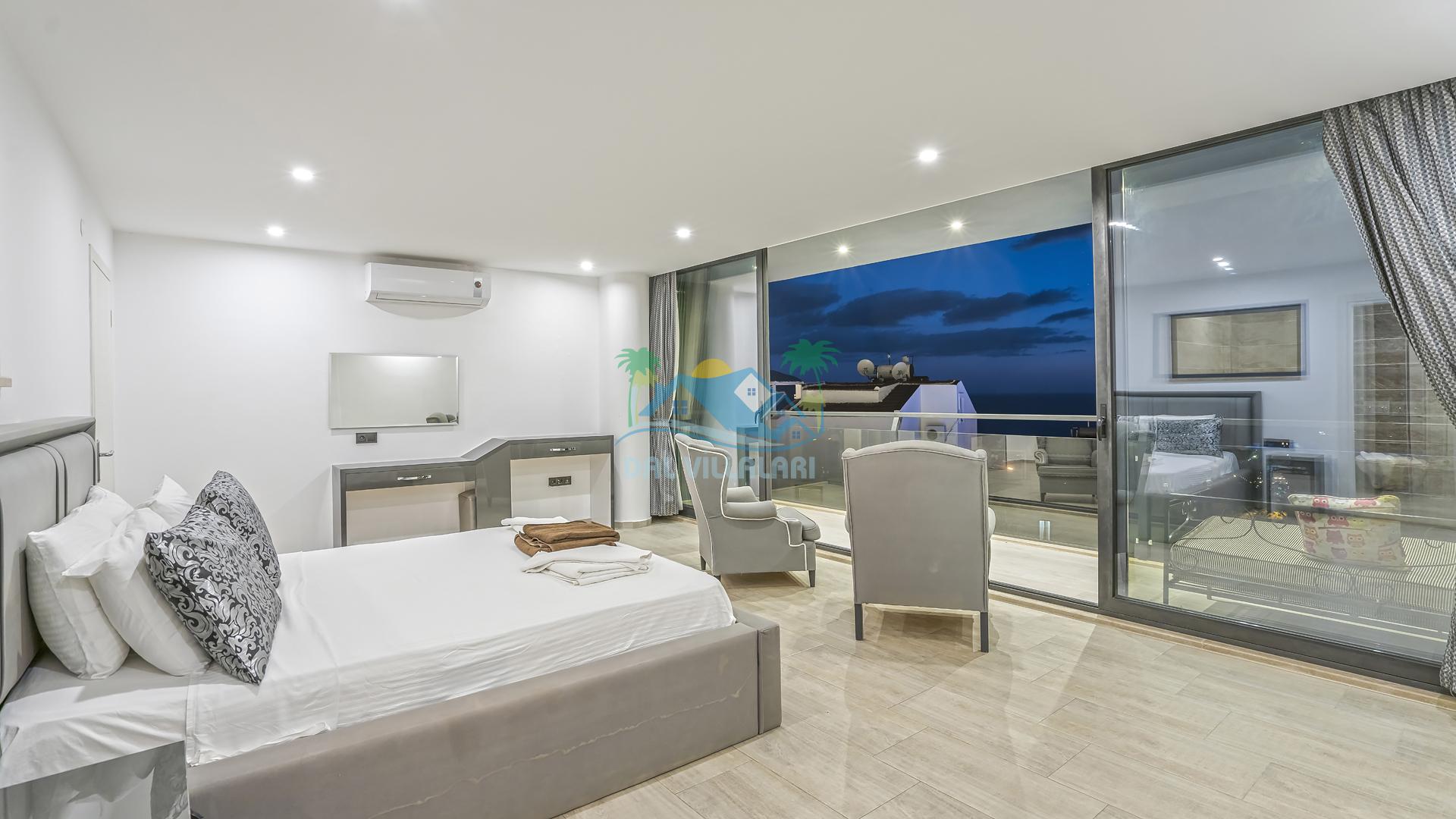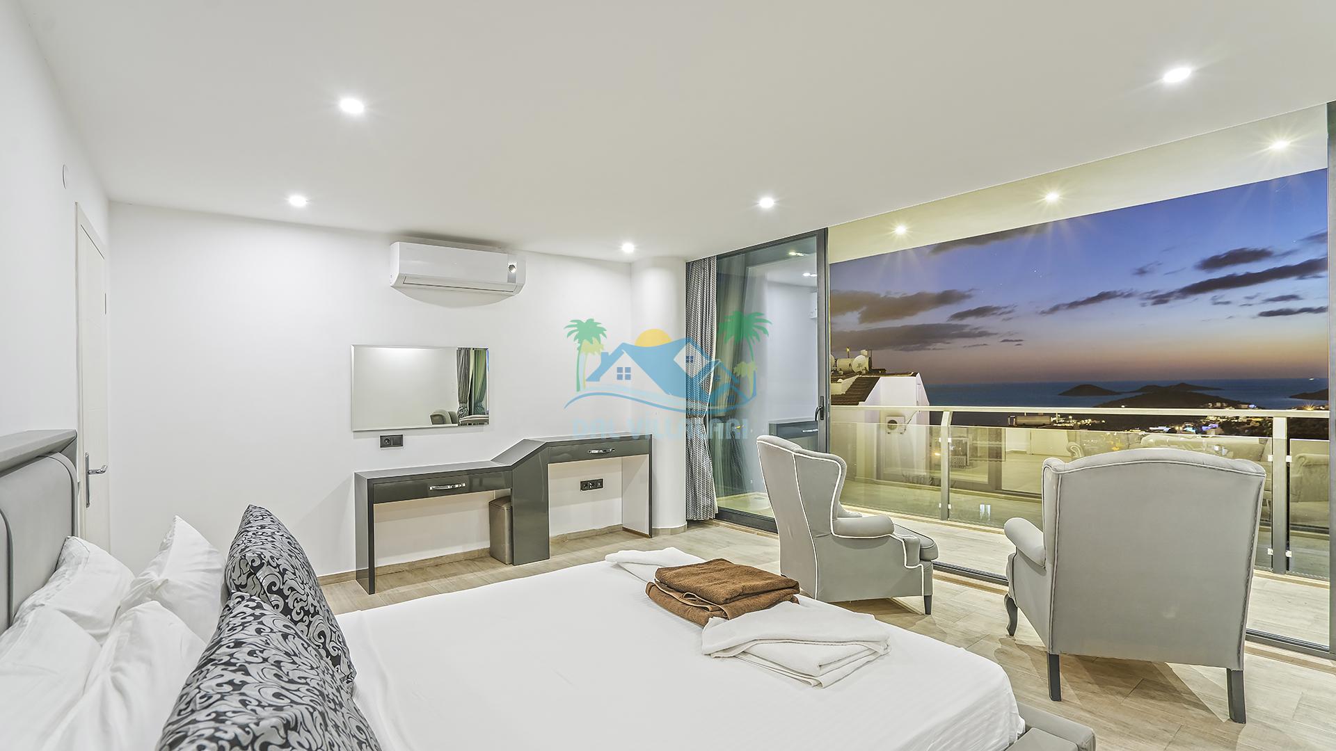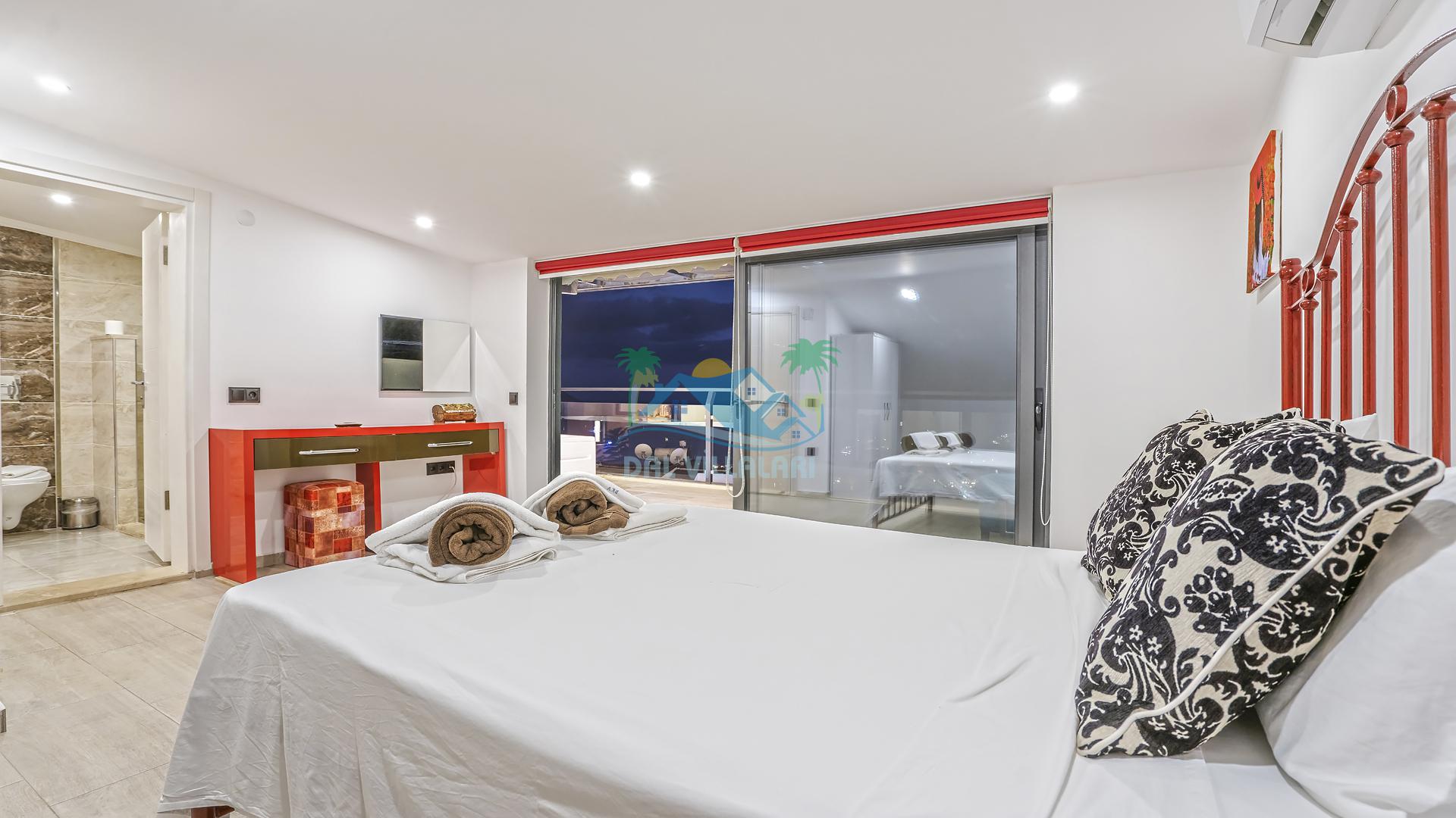 Villanın 4 adet geniş ve konforlu yatak odası bulunmaktadır. Özel olarak tasarlanmış teraslı yatak odası, muhteşem manzaranın keyfini çıkarabileceğiniz bir jakuzi yer almaktadır. Burada değişen batışını izleyerek hem rahat edebilir hem de benzersiz bir romantik atmosferin tadını çıkarabilirsiniz.