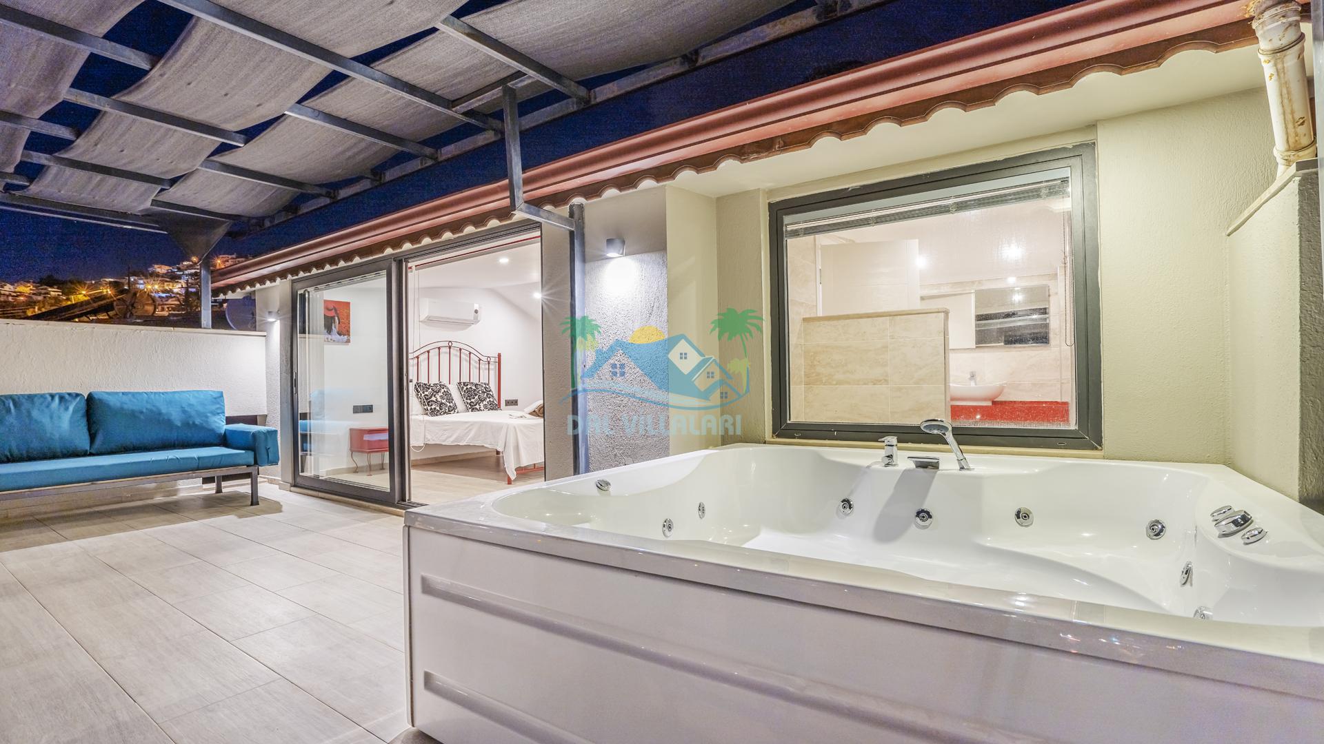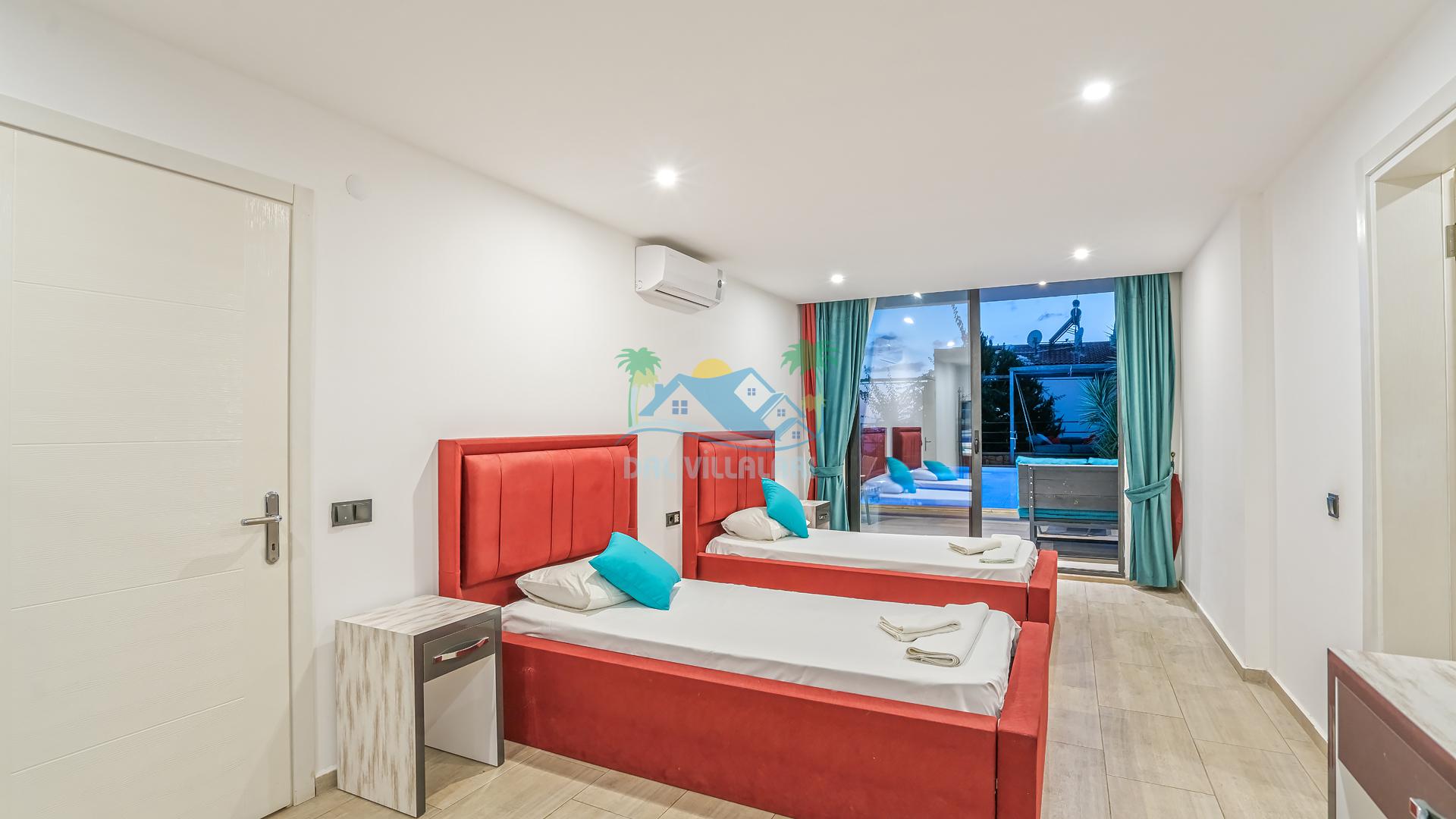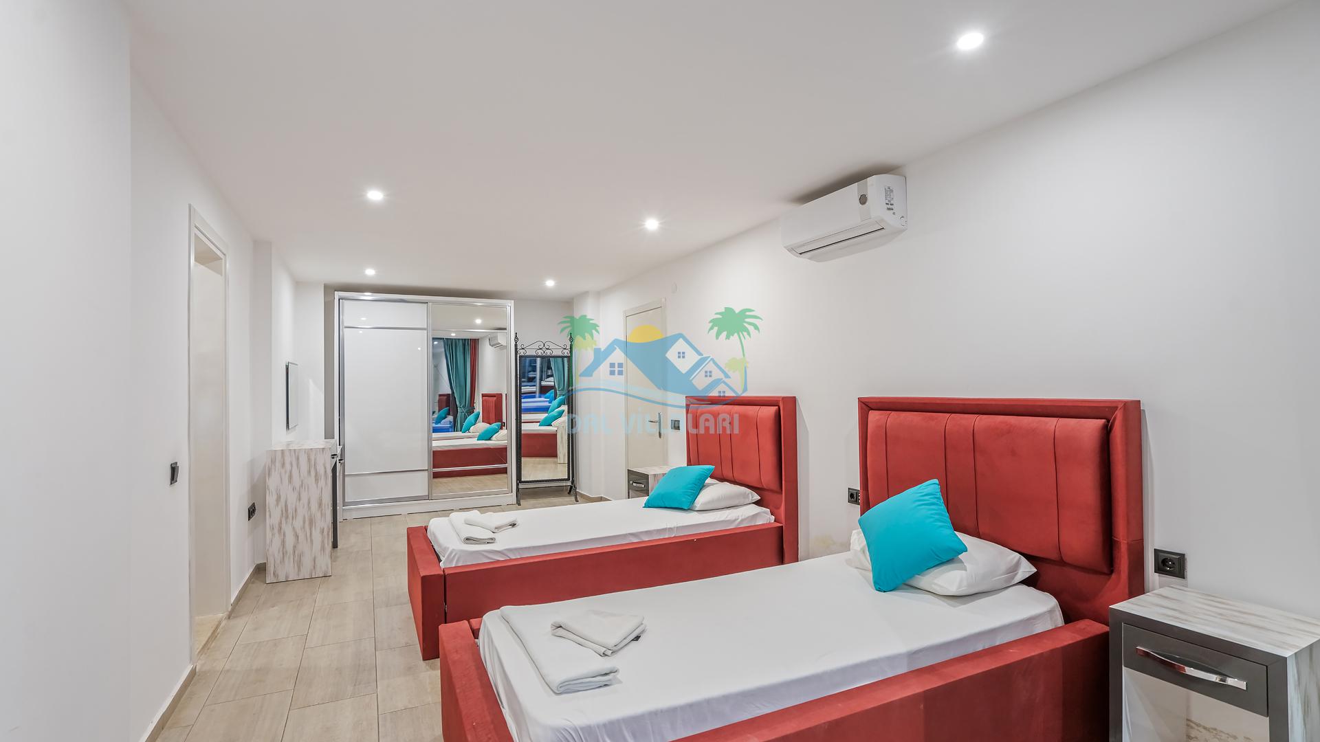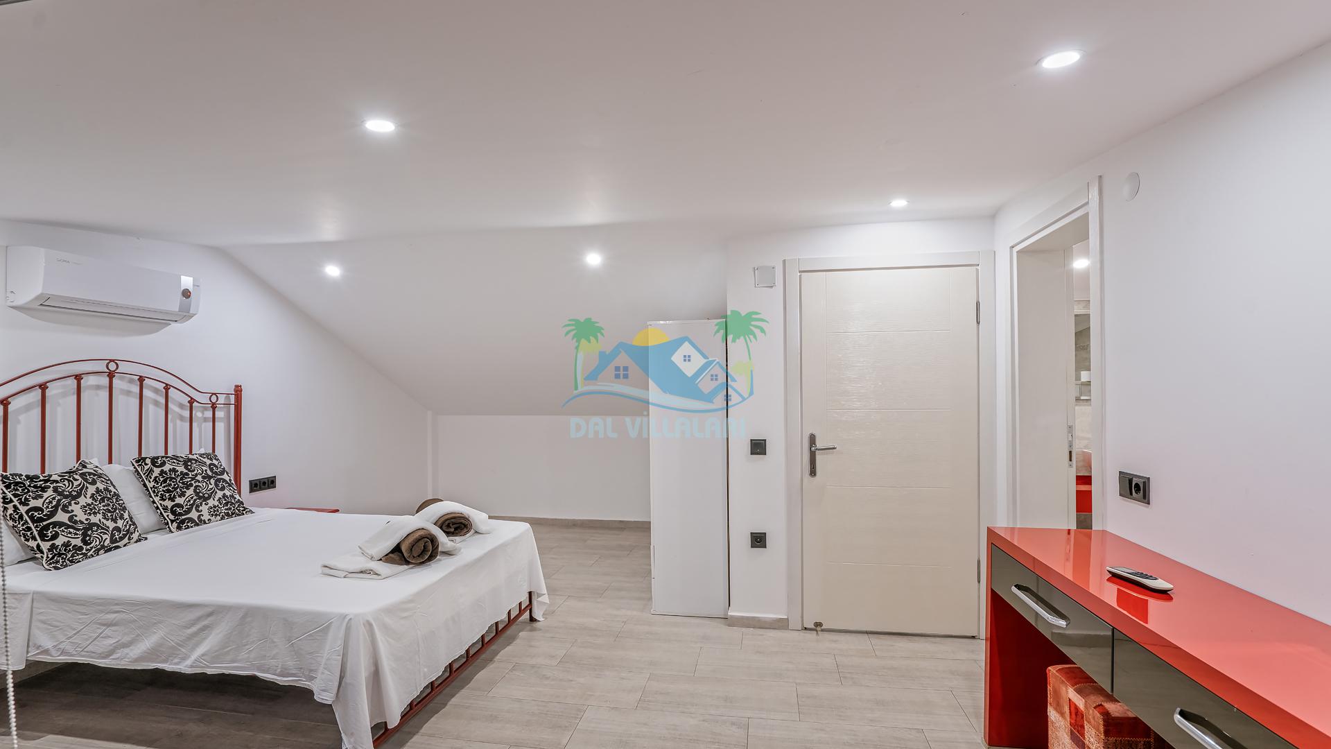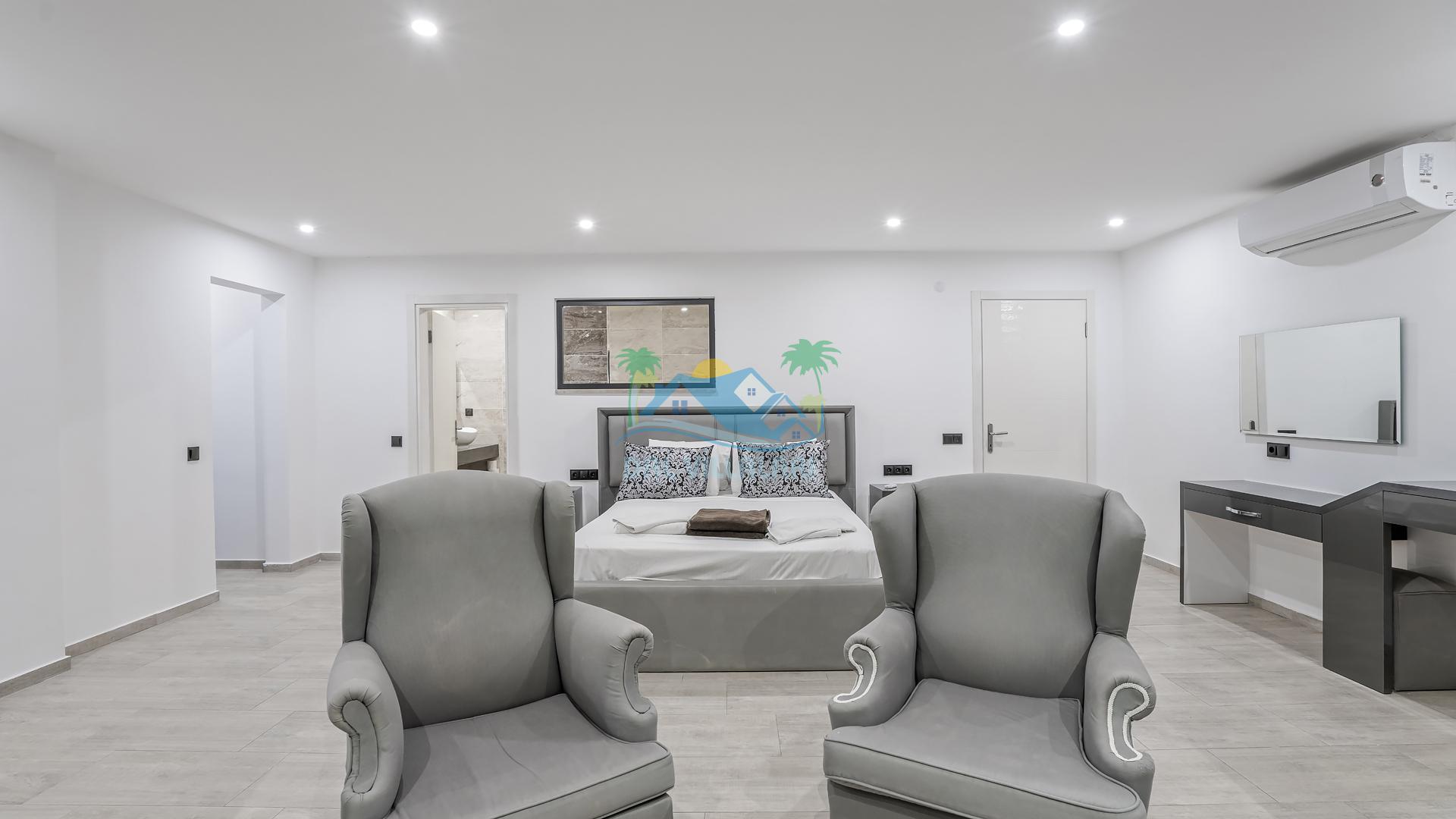 Villanın 4 adet geniş ve konforlu yatak odası bulunmaktadır. Özel olarak tasarlanmış teraslı yatak odası, muhteşem manzaranın keyfini çıkarabileceğiniz bir jakuzi yer almaktadır. Burada değişen batışını izleyerek hem rahat edebilir hem de benzersiz bir romantik atmosferin tadını çıkarabilirsiniz.