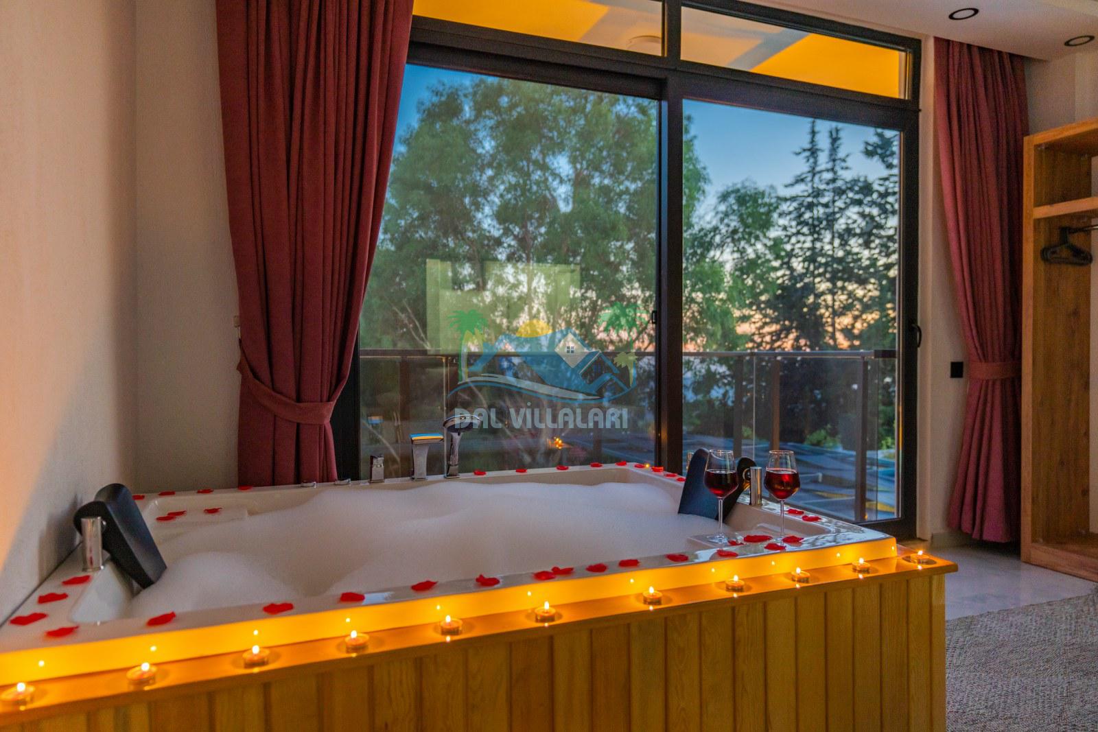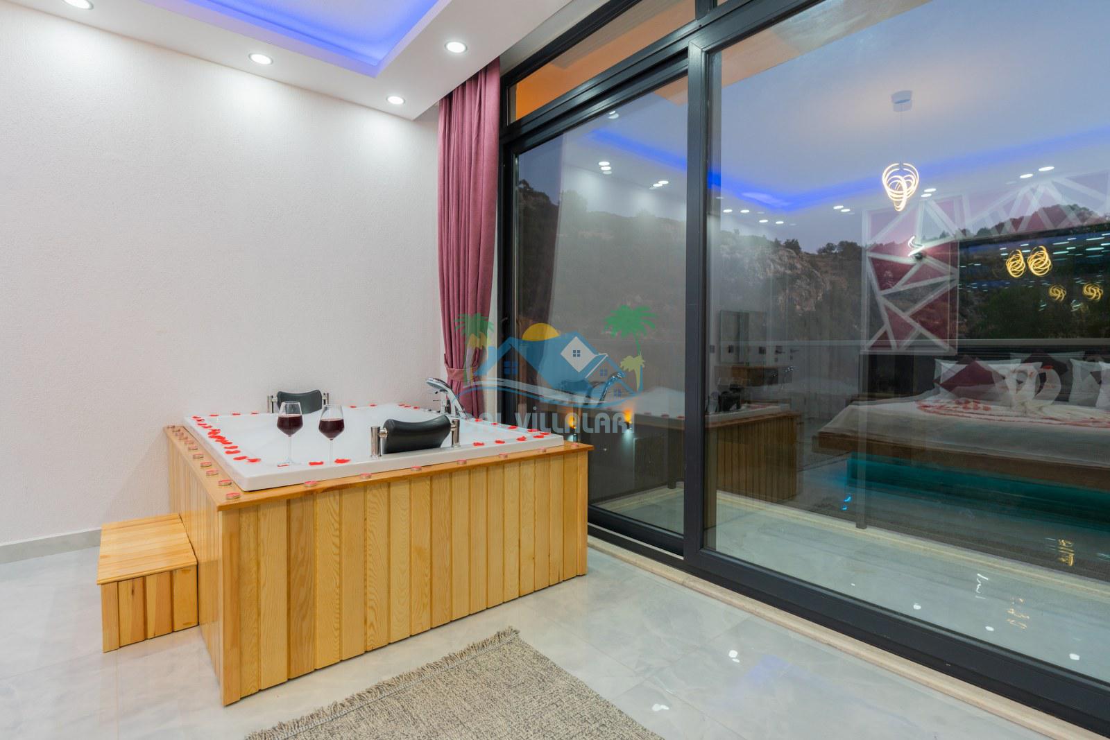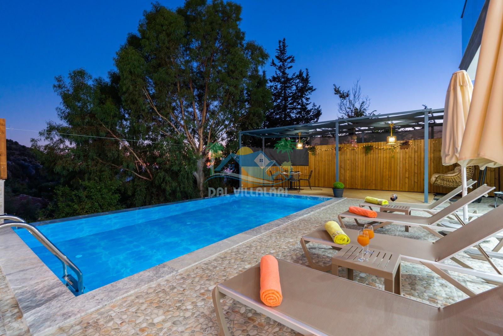 Kalkan'ın İslamlar köyünde bulunan havuzundaki korunaklı villalar , balayı villaları ve jakuzili villalar içindekiki villa Lilyum, 2 yatak odalı ve 4 kişi konaklama imkanına sahiptir. Doğadaki konumu, bahçesi ve şık tasarımı ile dikkat çeken villamızın çevresindeki perdeleme işlemlerinin dolayısıyla odası ve bahçesi dışarıdan görünmüyor. Muhafazakar ailelerimiz ya da da özel hissetmek isteyen balayı çiftlerimiz için tasarlanmış villa Lilyum, güzel hatıralar biriktireceğiniz huzurlu bir tatil sizi bekliyor. Modern yapısı ile özellikle balayı çiftleri tarafından sıklıkla tercih edilen Villa Lilyum kusursuz bir tatil isteyenlerin ilk tercih ettikleri villamızdır. Kiralık balayı villası Lilyum ile muhteşem bir balayı tatiline hazır mısınız?