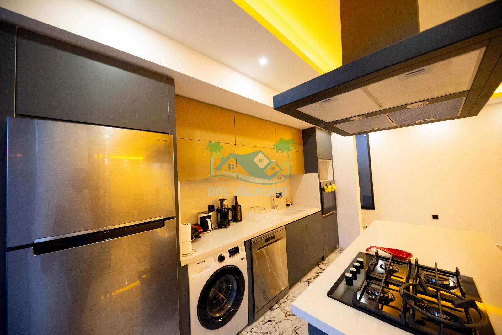 Detayları : Buzdolabı, Bulaşık makinesi, Çamaşır makinesi,Fırın, 4’lü Ocak, Elektrikli su ısıtıcı, Tost makinesi,Kahve makinesi, 4 kişilik yemek takımı, Tava, Tencereler, Çatal bıçak vb.