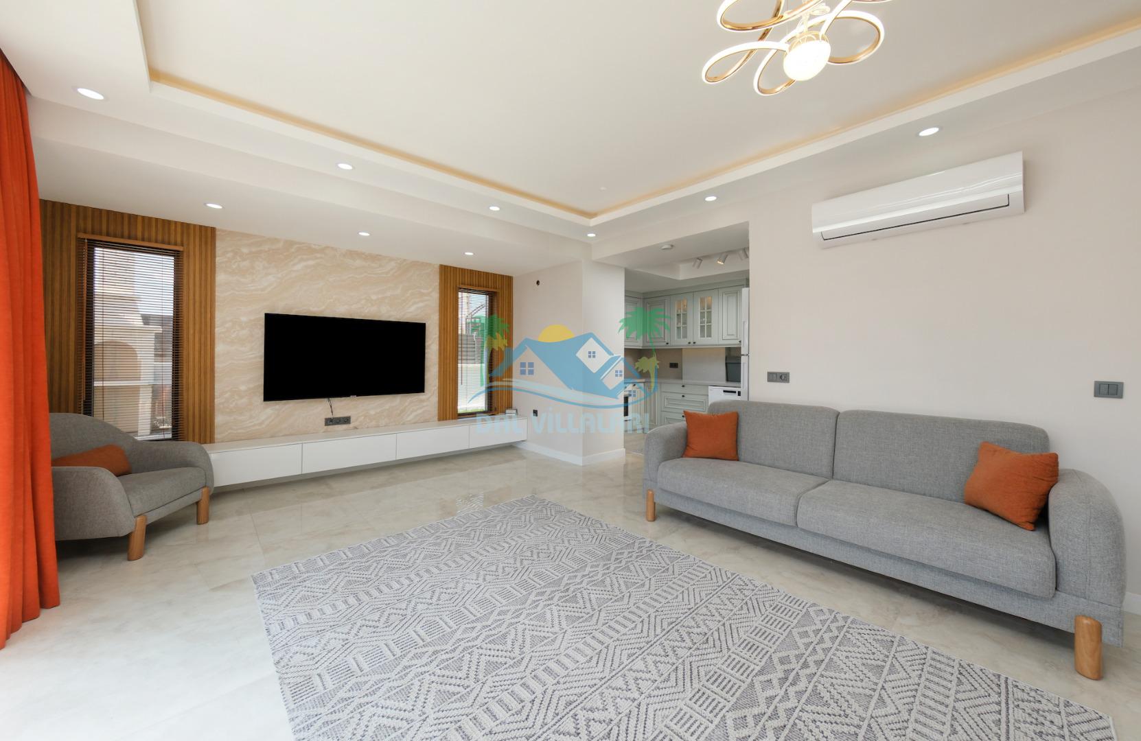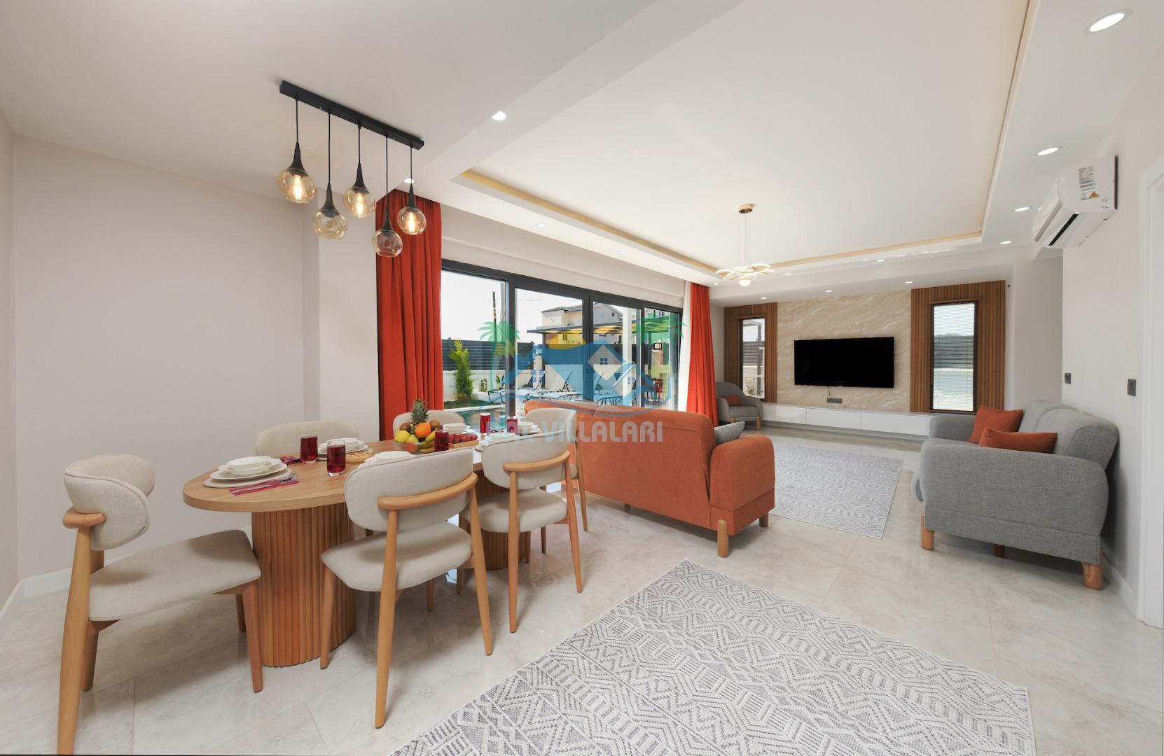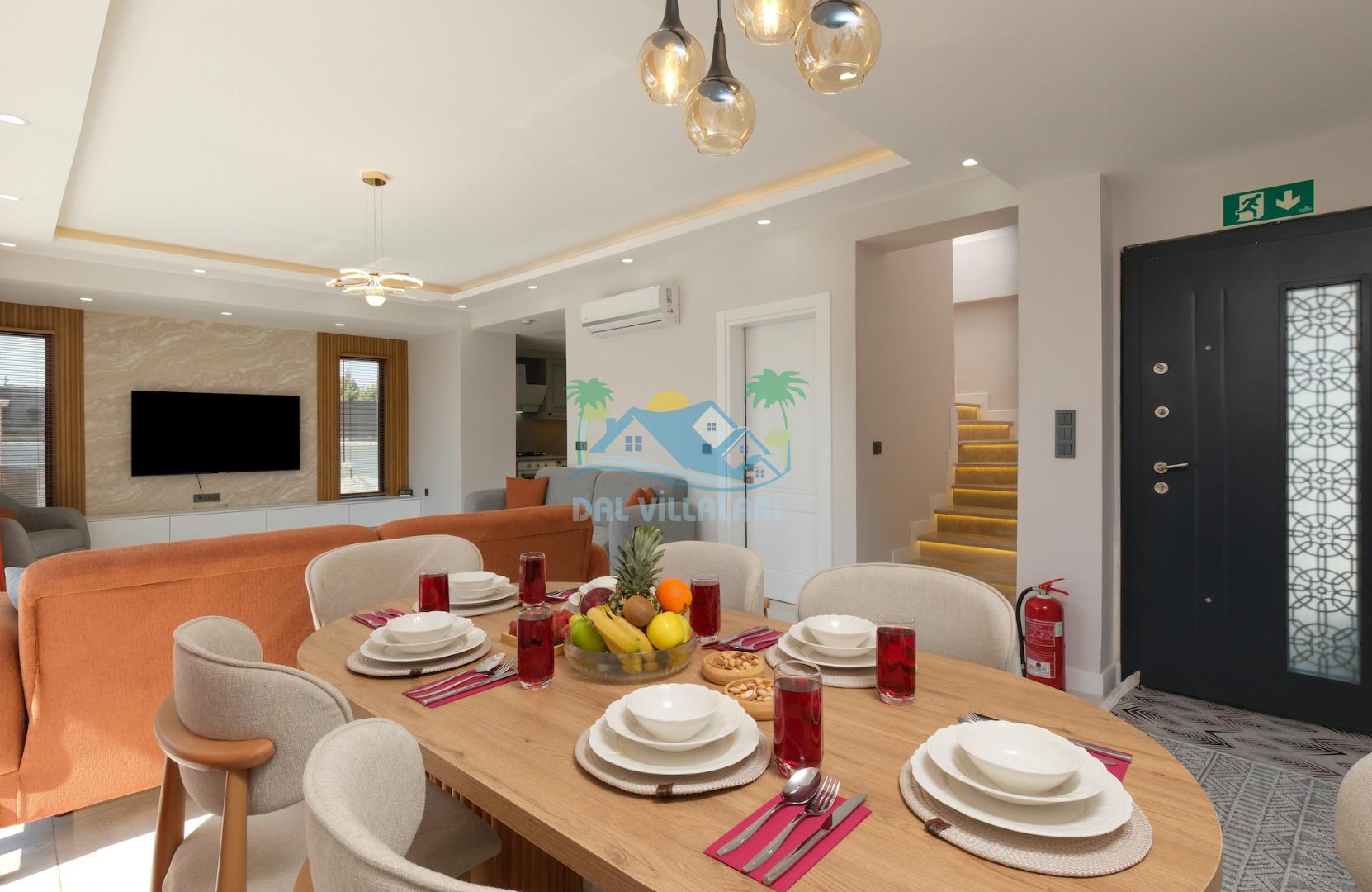 Özenle tasarlanmış iç ve dış yaşam alanlarına sahip olan villamızda konfor ön planda tutulmuştur. Geniş salon alanı, kullanışlı mutfak yapısı ve modern detayları sayesinde misafirlerine ev rahatlığında bir konaklama deneyimi sunar. Aile konaklamaları için oldukça uygun bir yapıdadır.