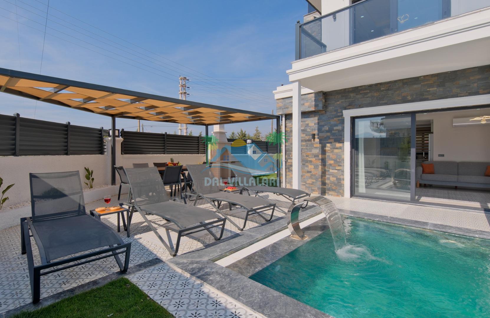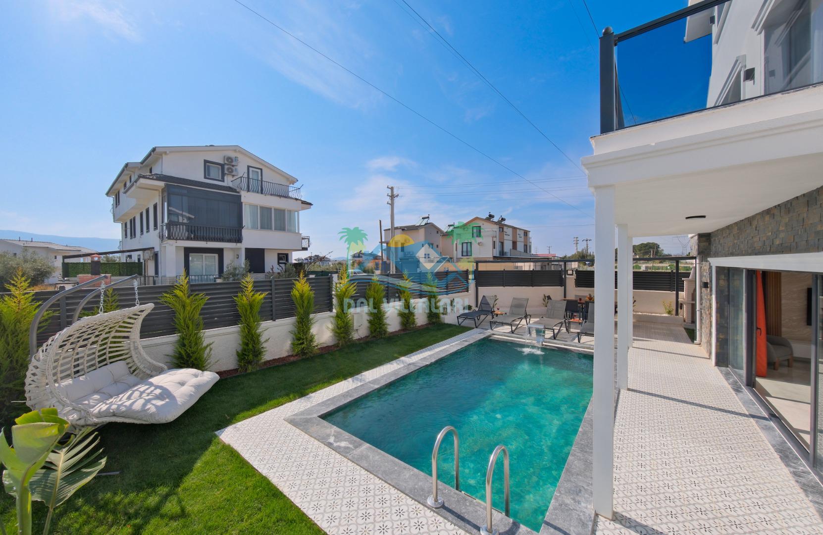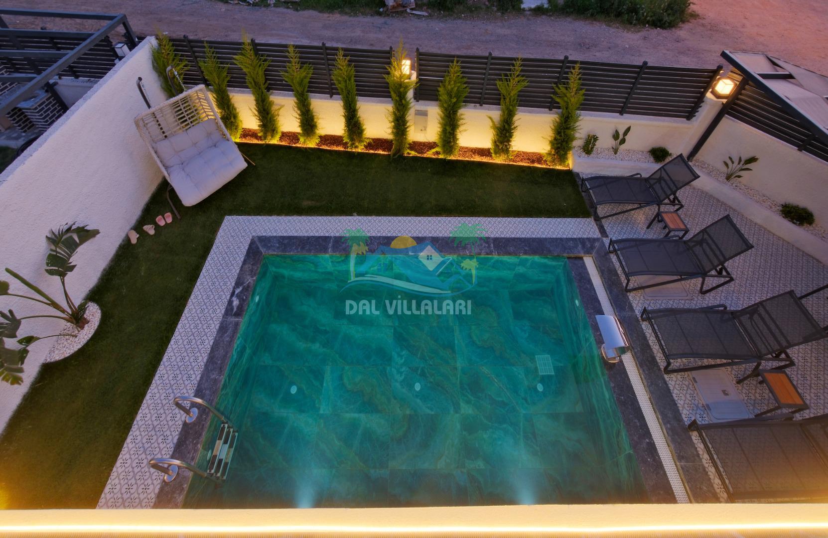 Villanın özel yüzme havuzu, sıcak yaz günlerinde serinleyip tatilin tadını çıkarmak isteyen misafirler için hazırlanmıştır. Havuz çevresinde bulunan şezlong alanı güneşlenmek ve dinlenmek için idealdir. Bahçe bölümünde yer alan oturma alanı ve barbekü alanı ise günün farklı saatlerinde keyifli vakit geçirmenize olanak sağlar.
