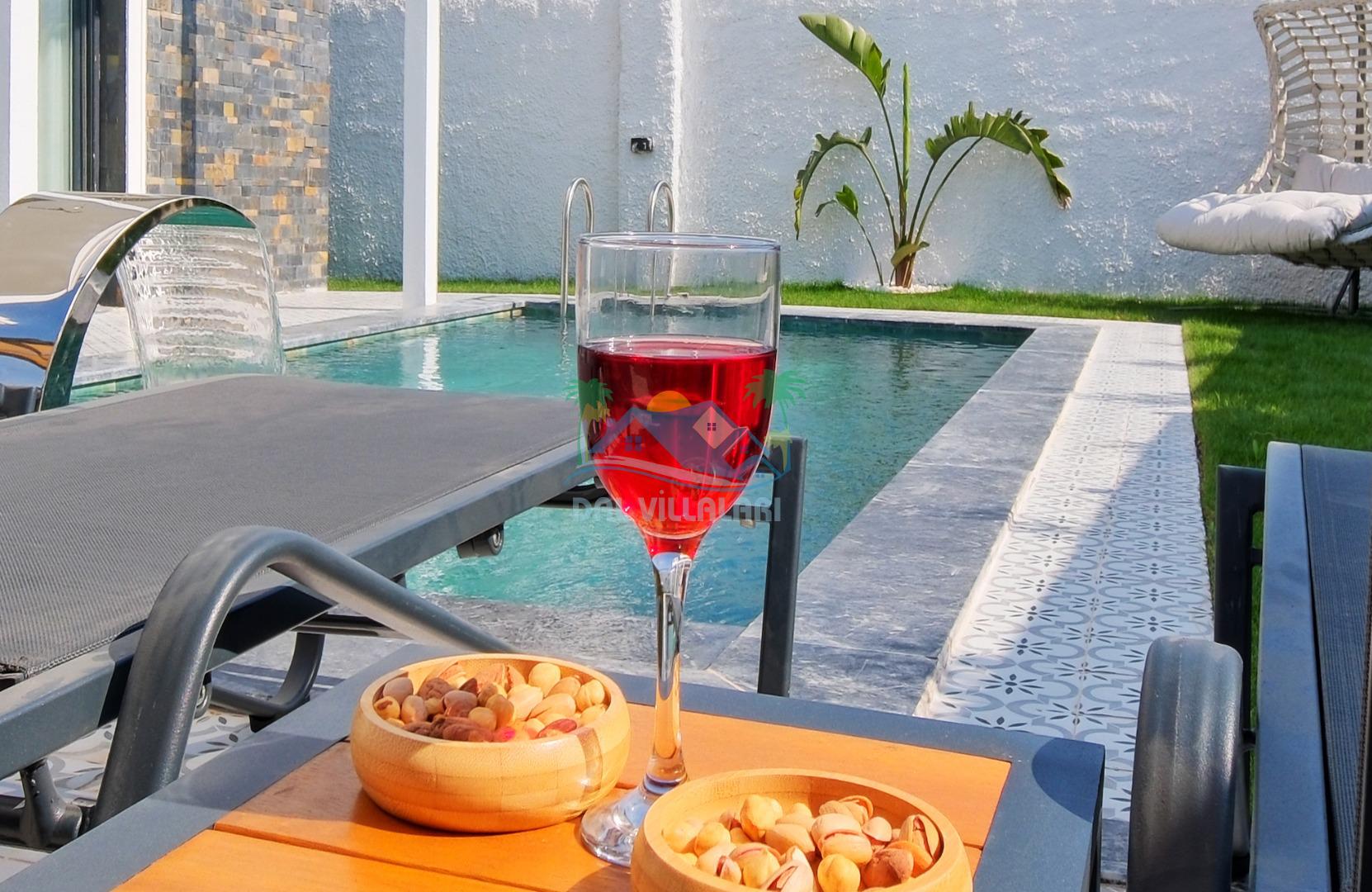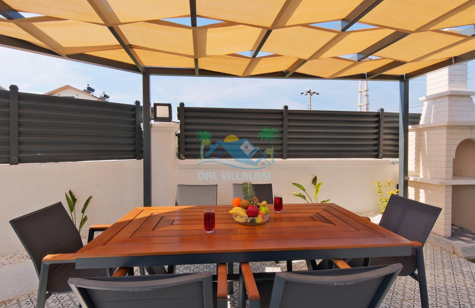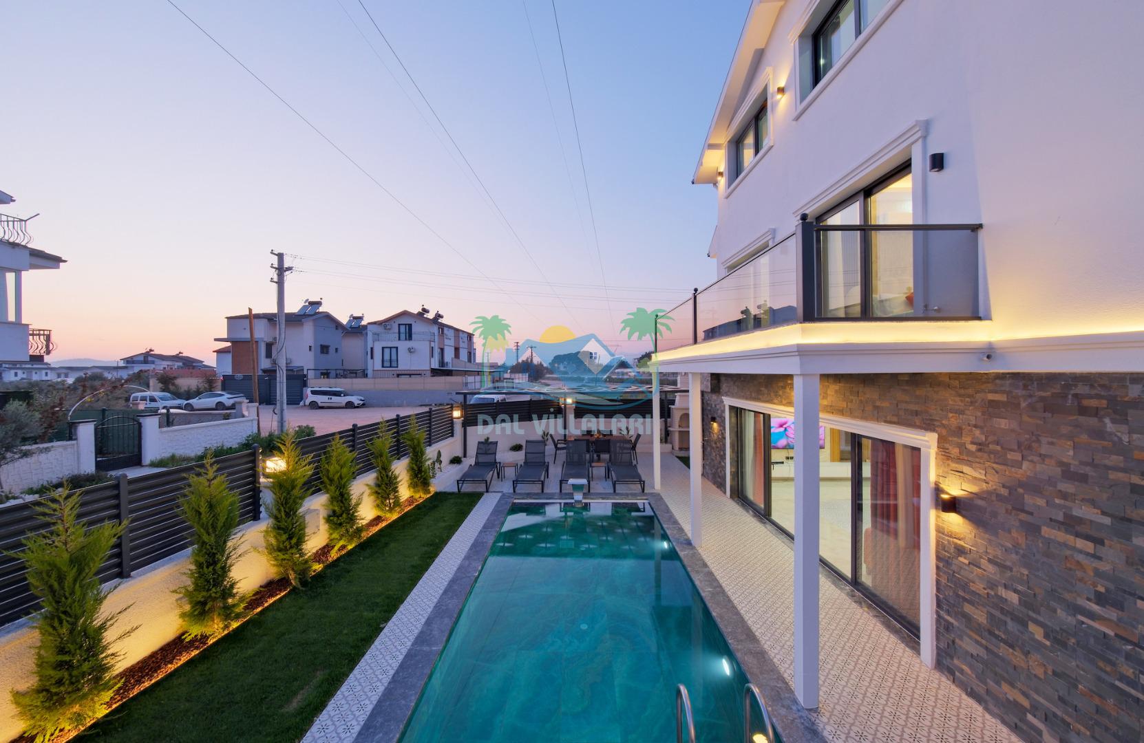 Villanın özel yüzme havuzu, sıcak yaz günlerinde serinleyip tatilin tadını çıkarmak isteyen misafirler için hazırlanmıştır. Havuz çevresinde bulunan şezlong alanı güneşlenmek ve dinlenmek için idealdir. Bahçe bölümünde yer alan oturma alanı ve barbekü alanı ise günün farklı saatlerinde keyifli vakit geçirmenize olanak sağlar.
