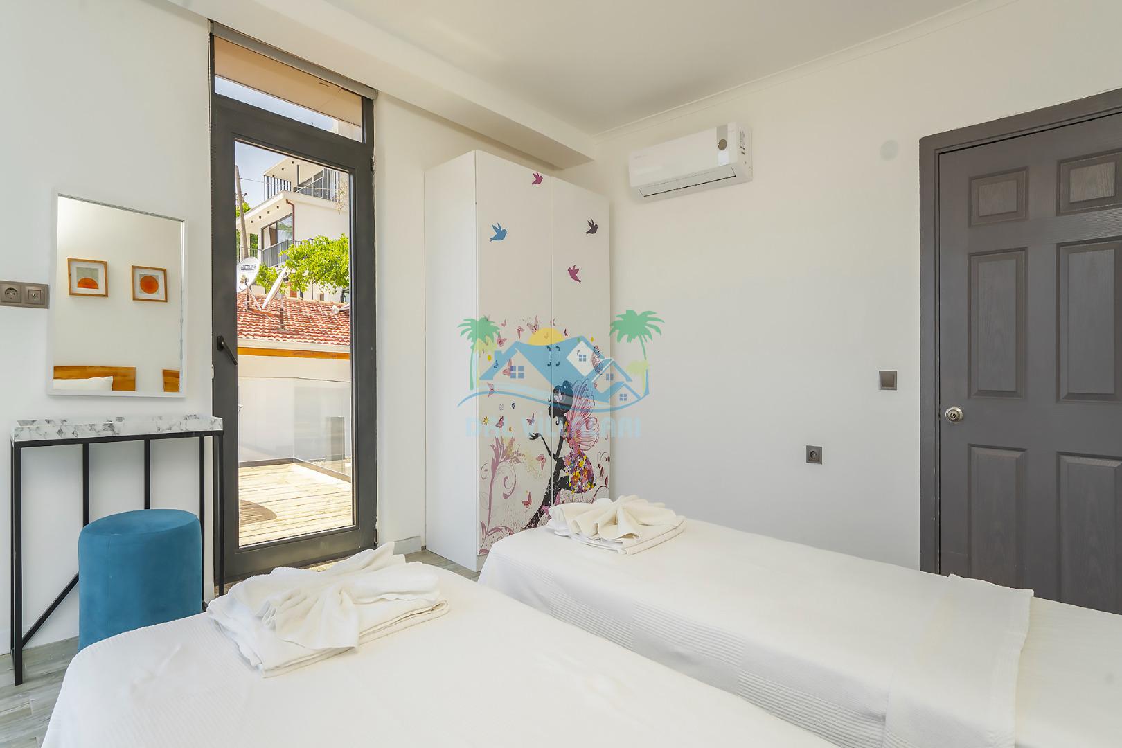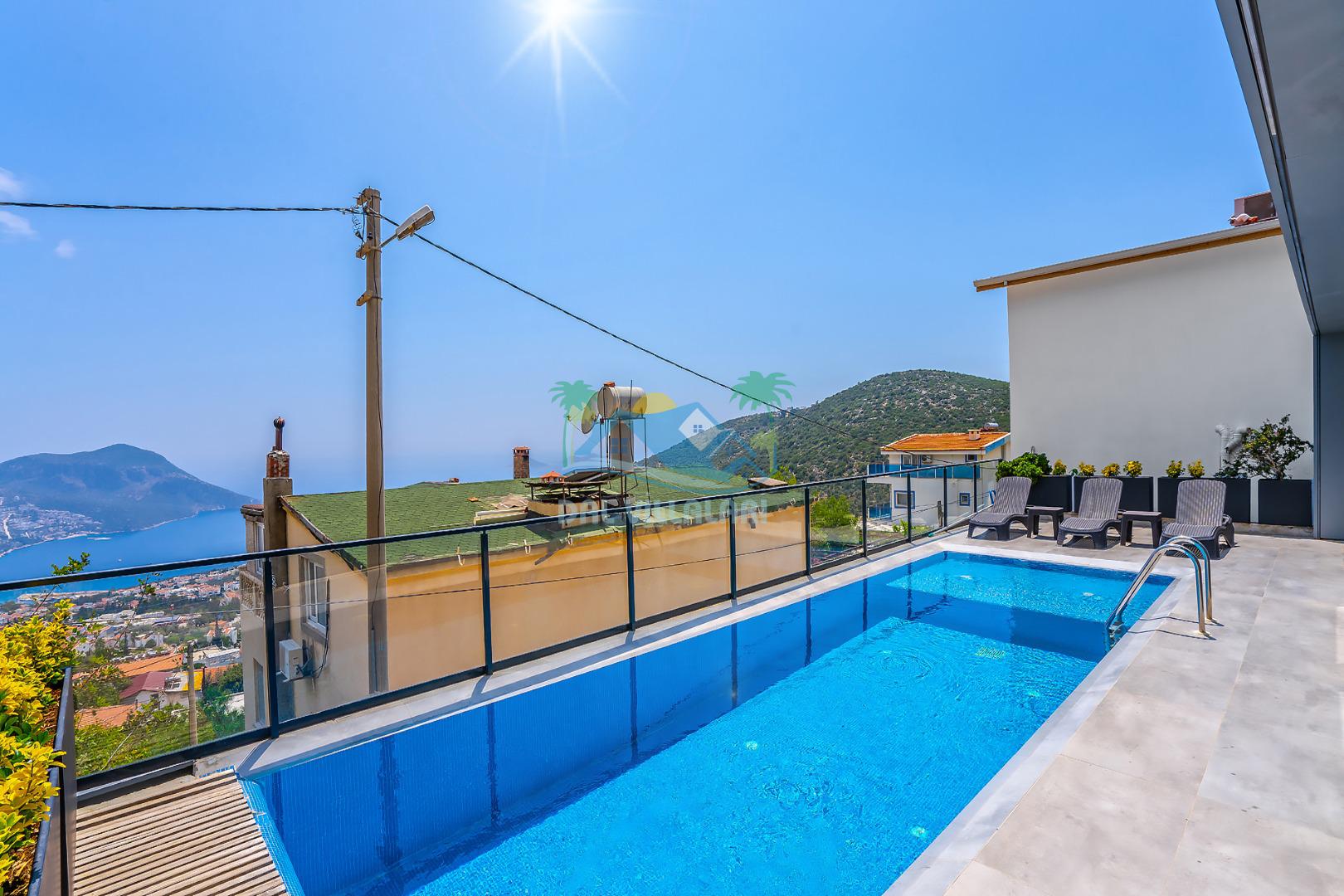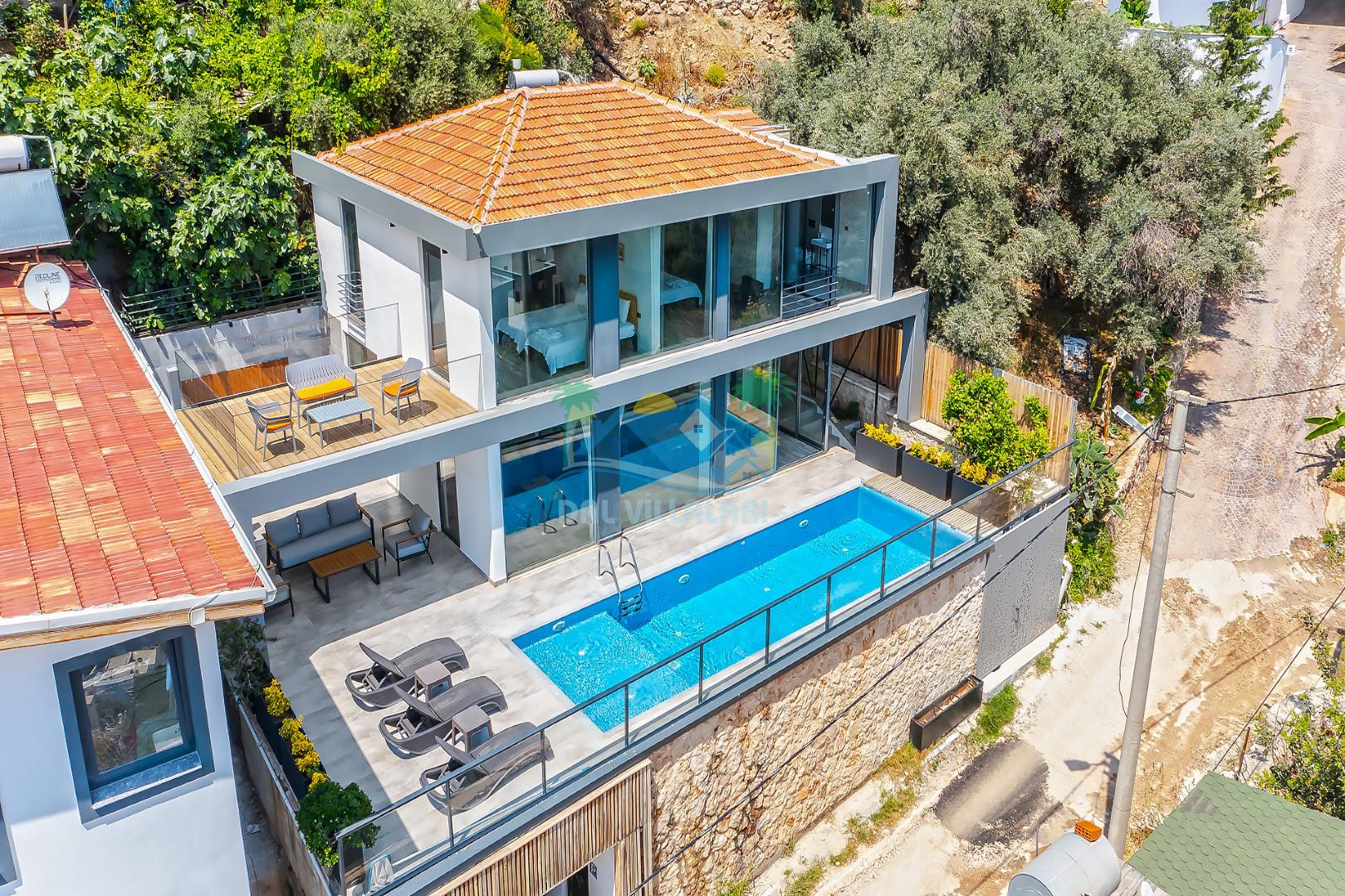Antalya Kaş Kalkan akbel mevkiinde konumlanan Kiralık Tatil Villamız 4 yatak odalı olup 8 kişi konaklama kapasitesine sahiptir. villamız havuz terasından kısmen deniz manzarasına hakimdir ama üst kattaki 2 yatak odasından ise çok net deniz manzarasını görebilirsiniz. Geniş havuzu ve terası ile aileniz ve sevdiklerinizle keyifli dakikalar geçirebilirsiniz. Aynı zamanda korunaklı havuzu ile muhafazakar ailelerimiz içinde ideal bir seçenektir. Villamızın 1. katındaki yatak odasında ebeveyn banyosu bulunmaktadır . Üst katında ise tuvalet banyo ortak kullanımdır bir tanesi de ebeveyn odasında olmakla beraber 3 banyo bulunmaktadır.