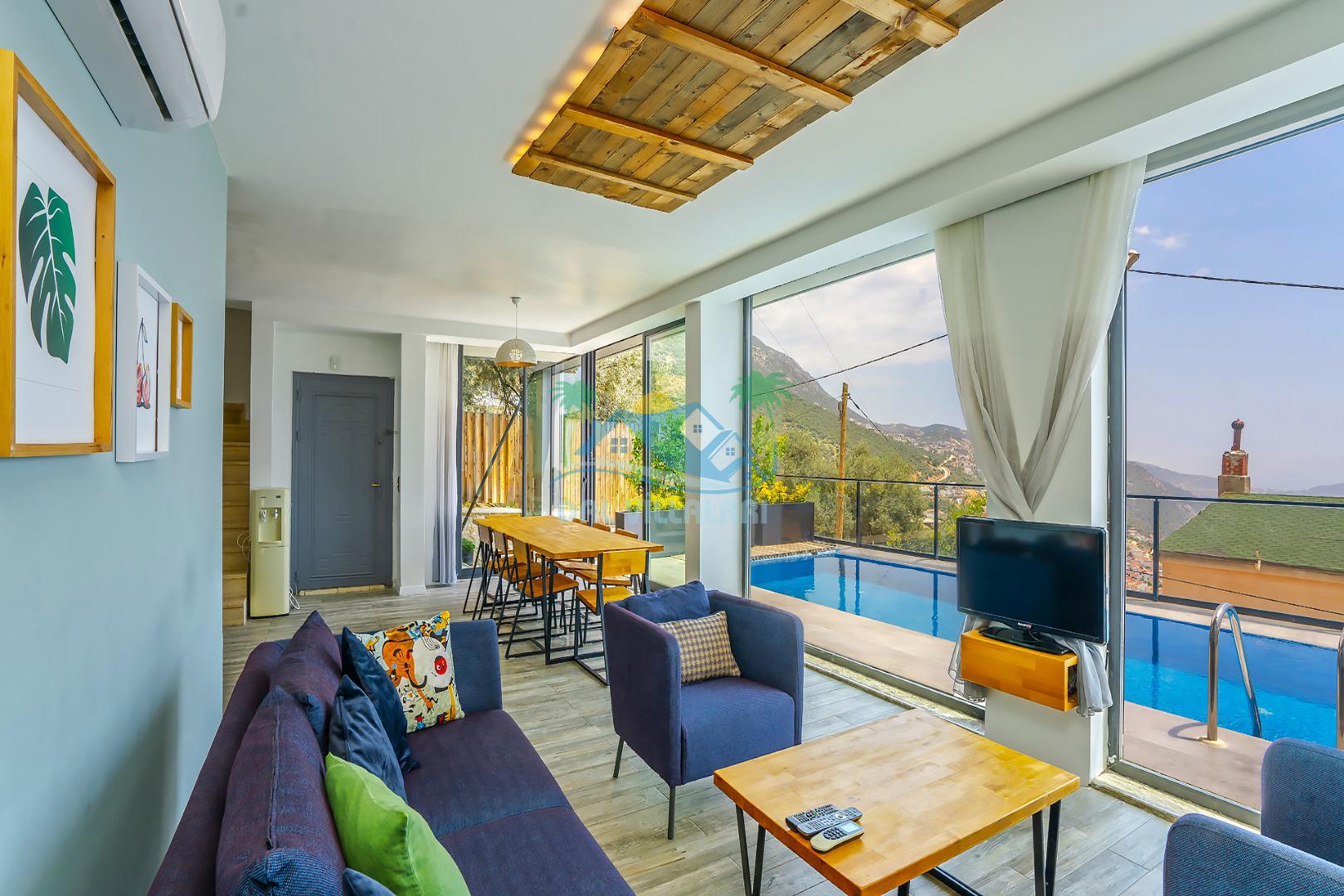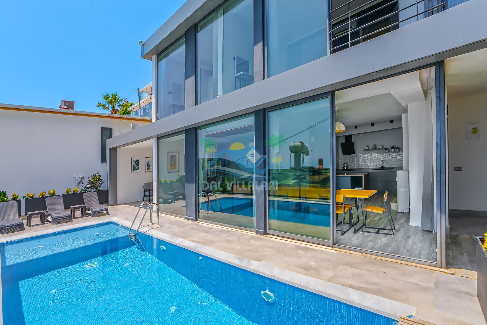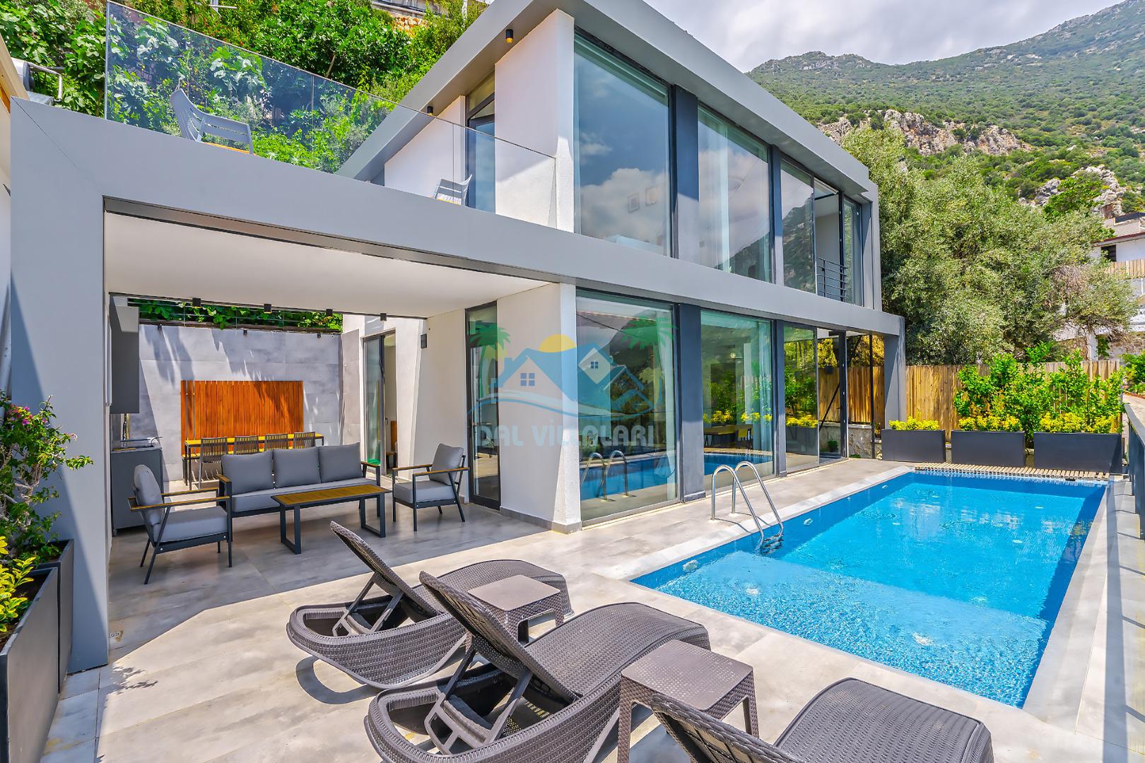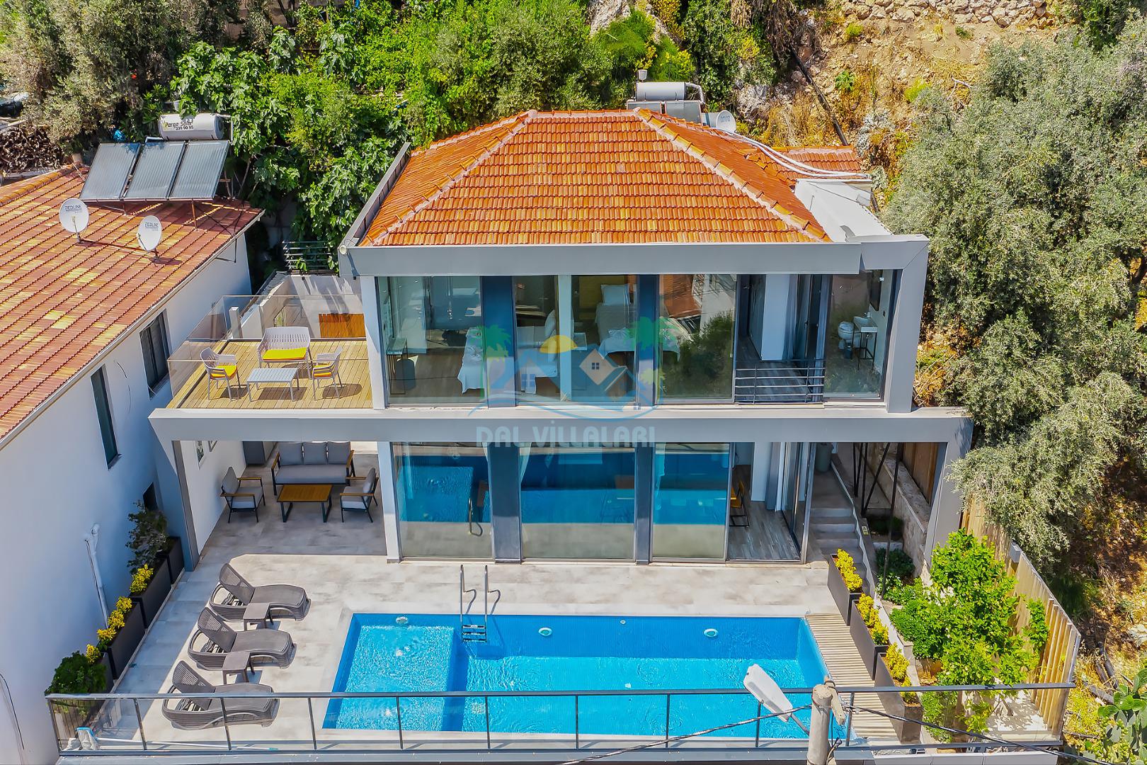 Antalya Kaş Kalkan akbel mevkiinde konumlanan Kiralık Tatil Villamız 4 yatak odalı olup 8 kişi konaklama kapasitesine sahiptir. villamız havuz terasından kısmen deniz manzarasına hakimdir ama üst kattaki 2 yatak odasından ise çok net deniz manzarasını görebilirsiniz. Geniş havuzu ve terası ile aileniz ve sevdiklerinizle keyifli dakikalar geçirebilirsiniz. Aynı zamanda korunaklı havuzu ile muhafazakar ailelerimiz içinde ideal bir seçenektir. Villamızın 1. katındaki yatak odasında ebeveyn banyosu bulunmaktadır . Üst katında ise tuvalet banyo ortak kullanımdır bir tanesi de ebeveyn odasında olmakla beraber 3 banyo bulunmaktadır.