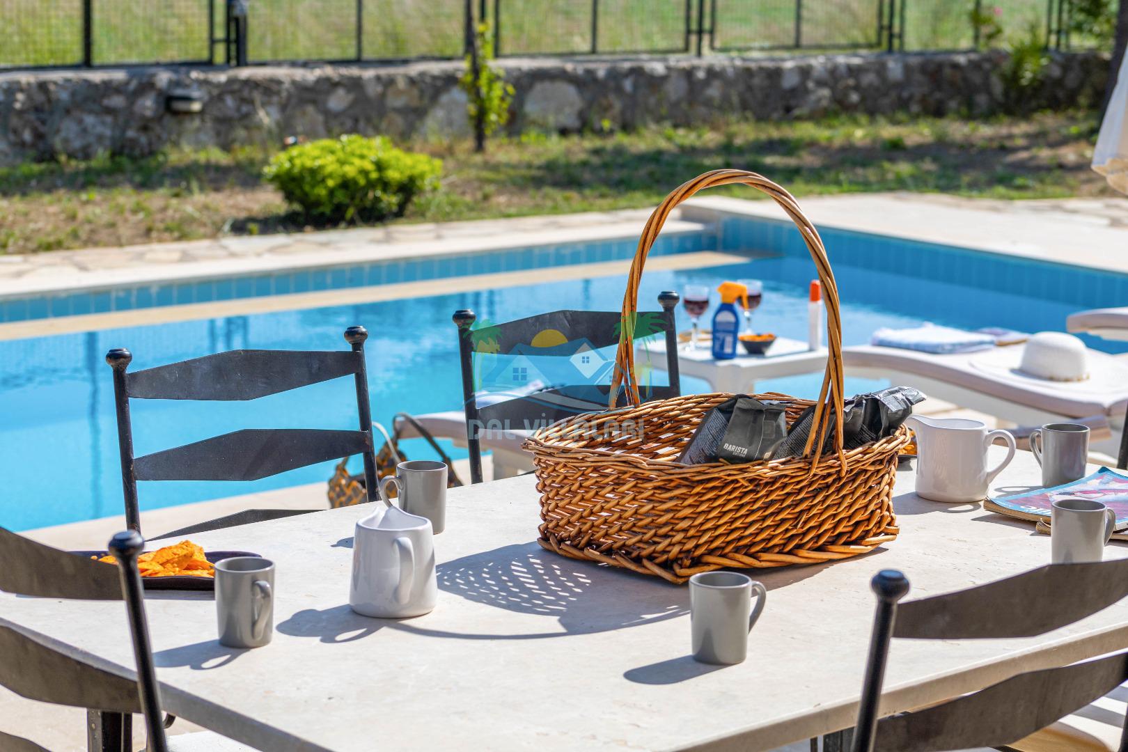 Villamızda misafirlerimizin tatil boyunca rahatça kullanabileceği özel yüzme havuzu bulunmaktadır. Havuz alanı doğa içinde ferah bir kullanım alanı sunar. Bahçe kısmında yer alan barbekü alanı ve yemek masası sayesinde akşamlarınızı açık havada keyifli sohbetler ve mangal eşliğinde değerlendirebilirsiniz.