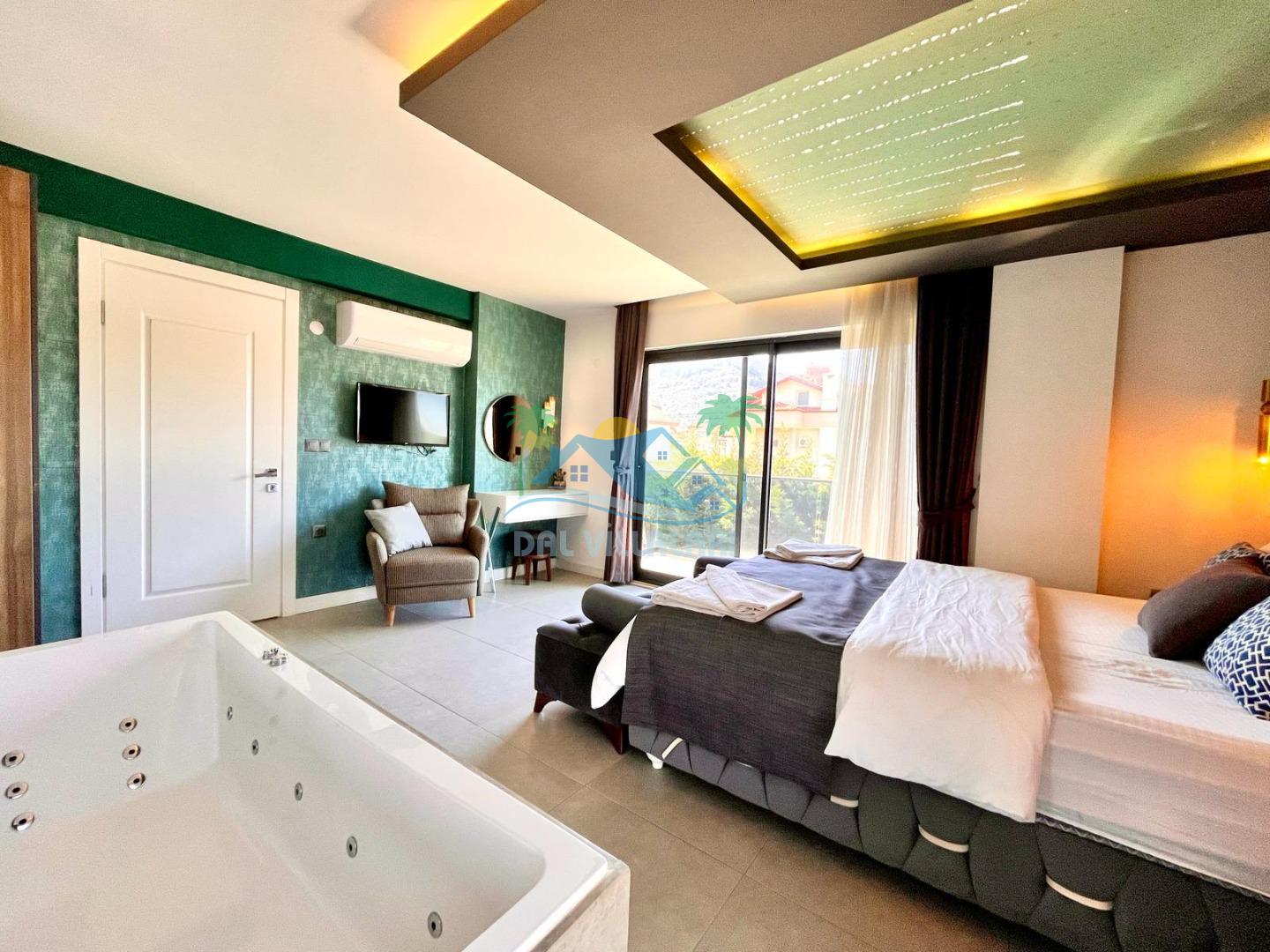 Jakuzili odalar ve her odada bulunan ebeveyn banyosu, rahatlık ve mahremiyeti bir arada sunar. Villa Mayıs, konum ve kalite açısından da fark yaratıyor. Hisarönü eğlence merkezine yürüyüş mesafesinde, 4+1 korunaklı bahçesi ile özel bir tatil deneyimi sunuyor. Bahçede, çocuklarınızın eğlenebileceği bir trambolin de bulunuyor, bu sayede ailenizle keyifli bir tatil yapabilirsiniz.