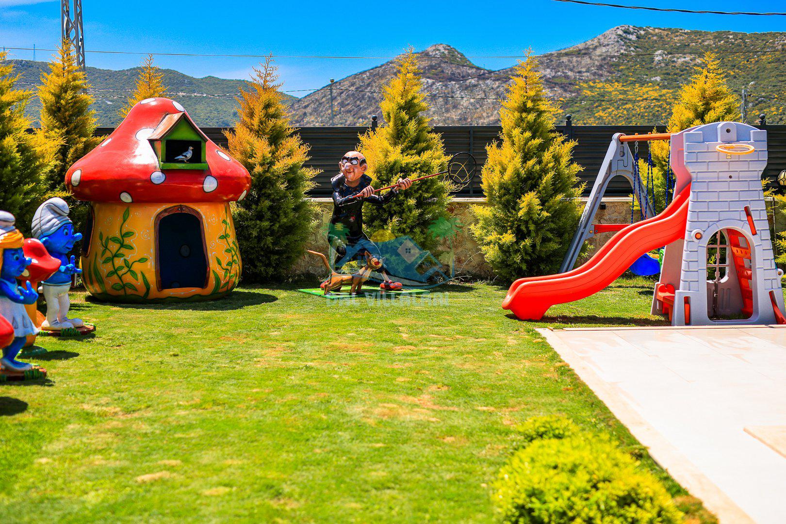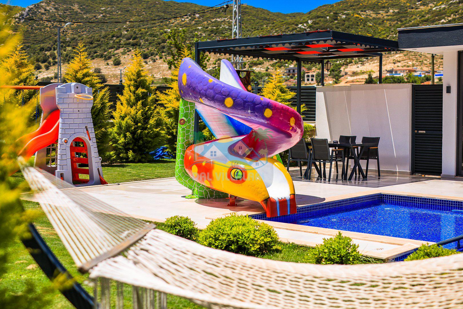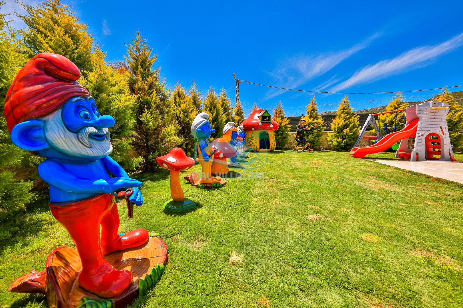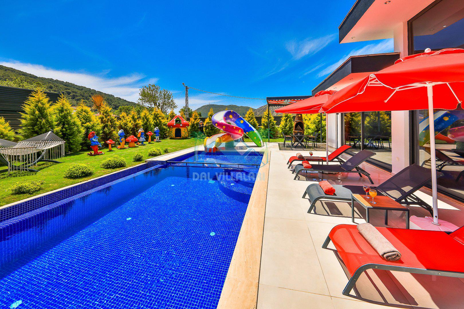 Muhafazakar mimarisi, tamamen korunaklı özel havuzu 🏊♂️ ve doğa manzaralı keyifli bahçesiyle, gözlerden uzak bir tatil arayanlara ilaç gibi gelecek. Villanın dikkat çeken detayları arasında jakuzi, çocuk parkı 🎠, hamak, salıncak ve şık oturma alanları bulunuyor.