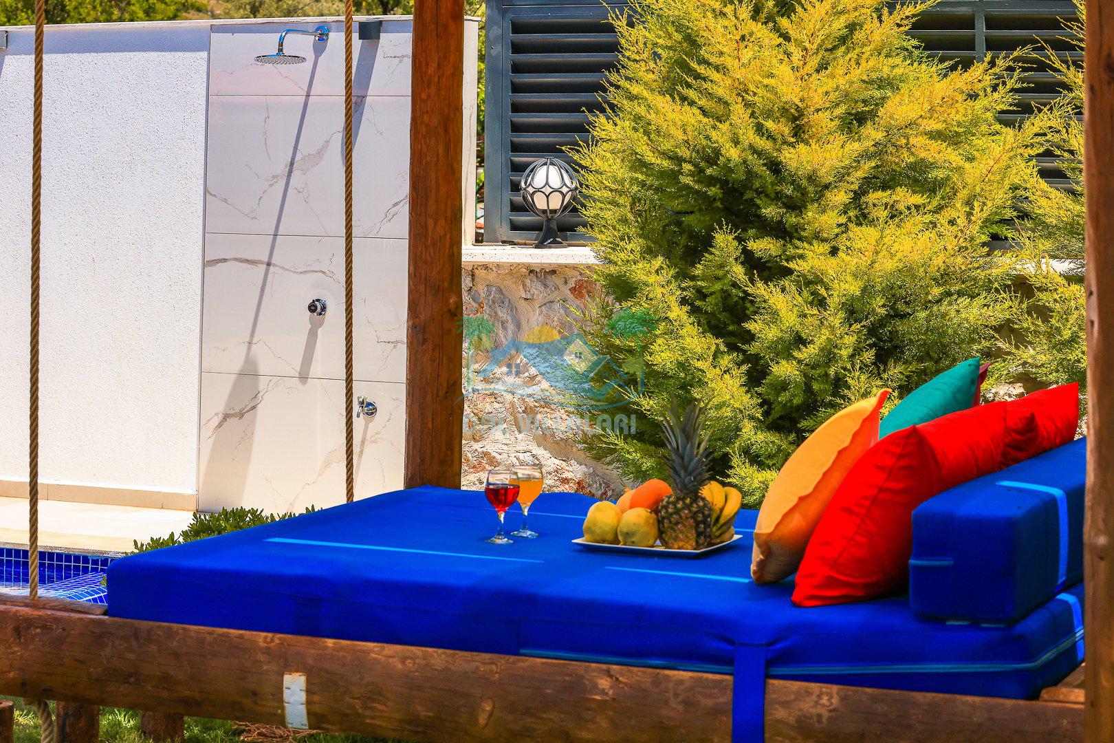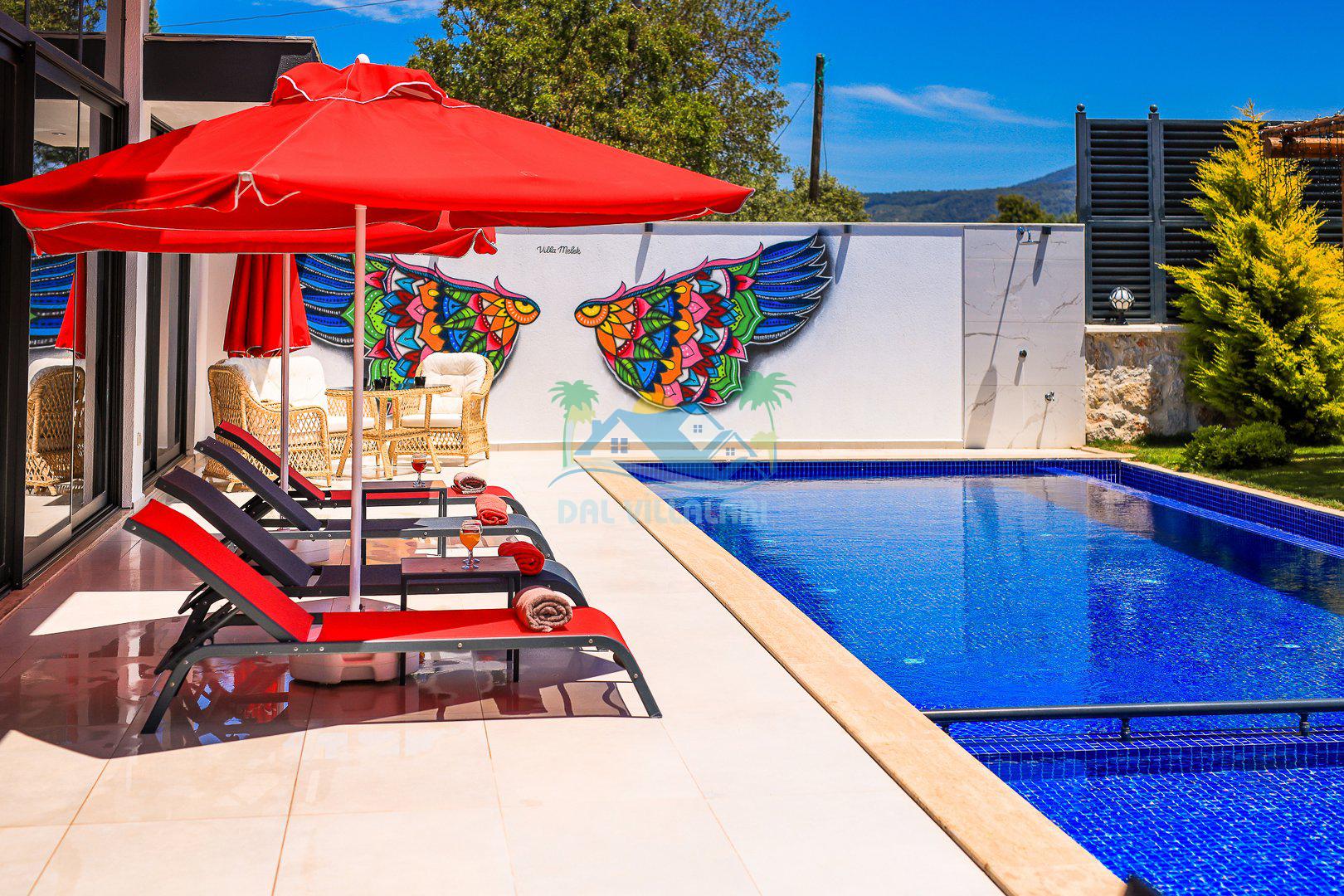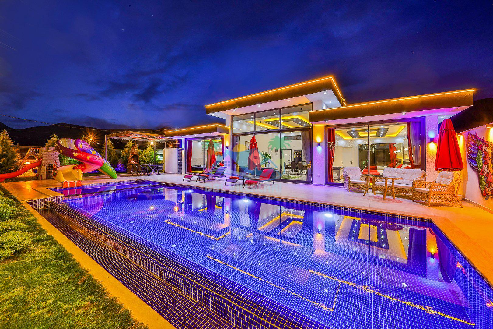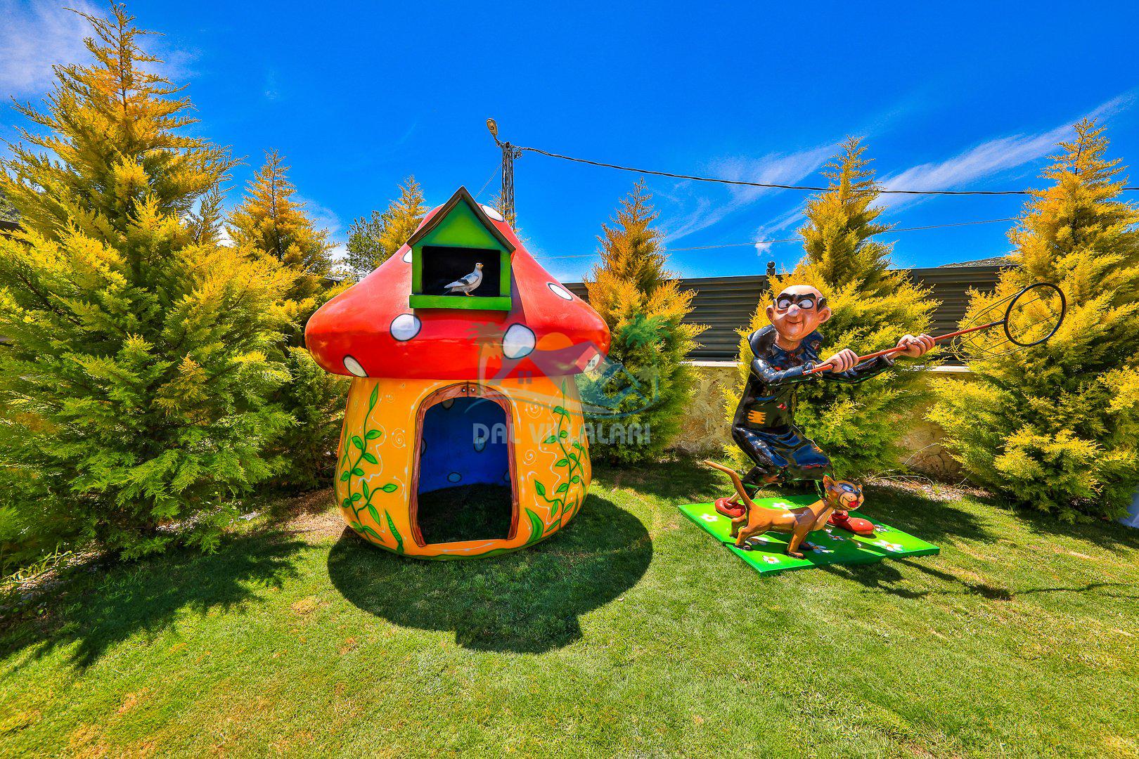 Muhafazakar mimarisi, tamamen korunaklı özel havuzu 🏊♂️ ve doğa manzaralı keyifli bahçesiyle, gözlerden uzak bir tatil arayanlara ilaç gibi gelecek. Villanın dikkat çeken detayları arasında jakuzi, çocuk parkı 🎠, hamak, salıncak ve şık oturma alanları bulunuyor.