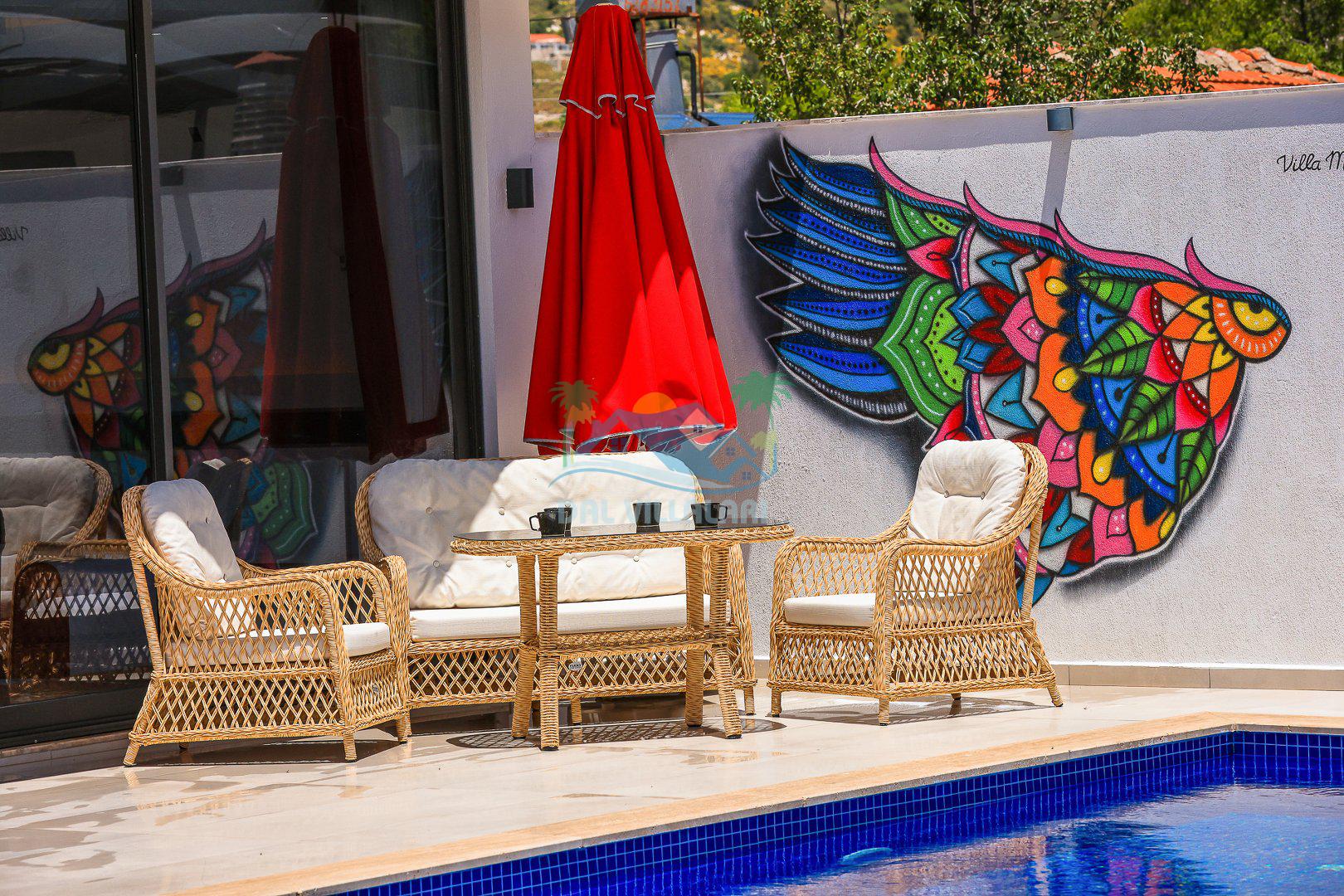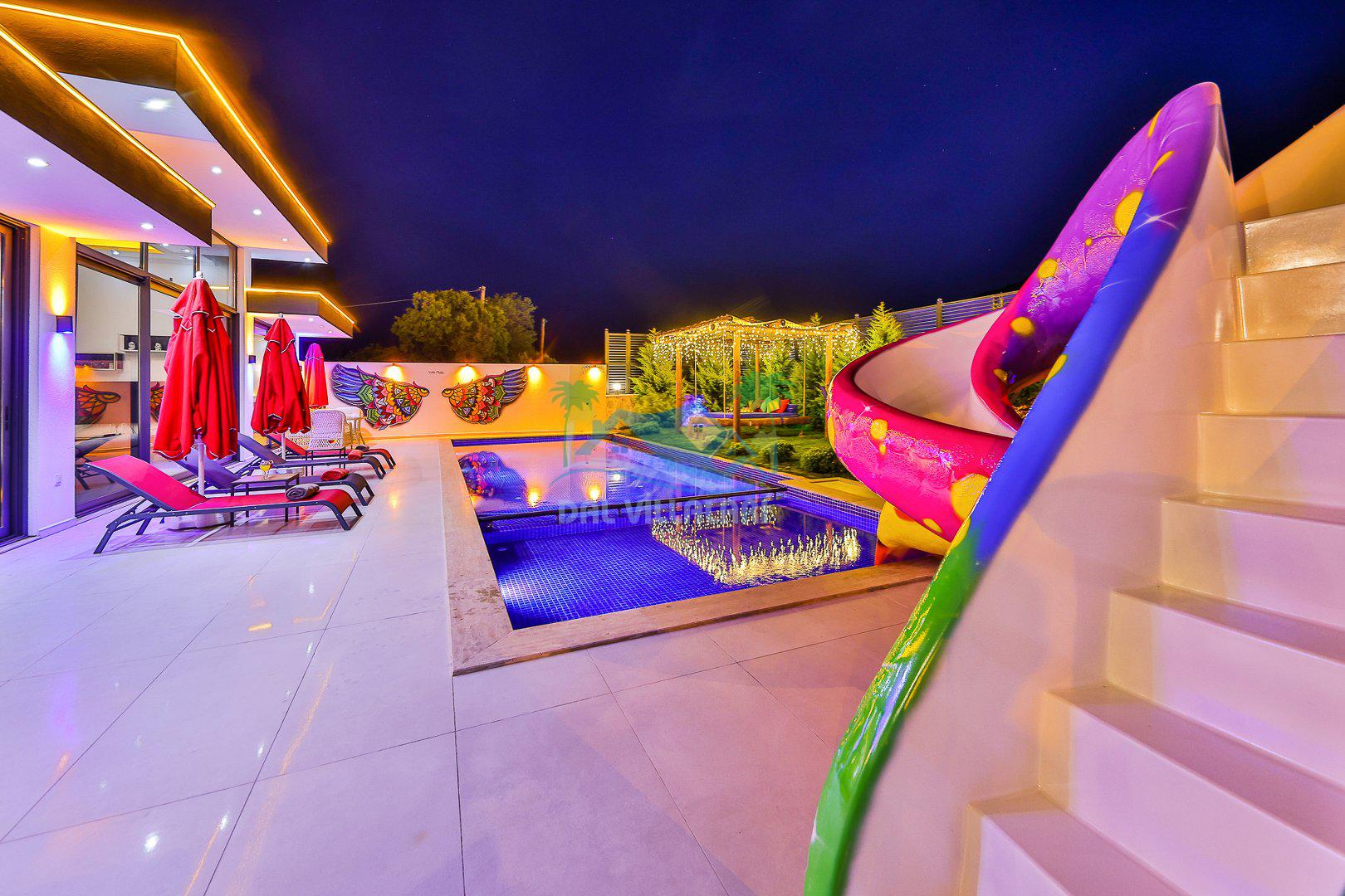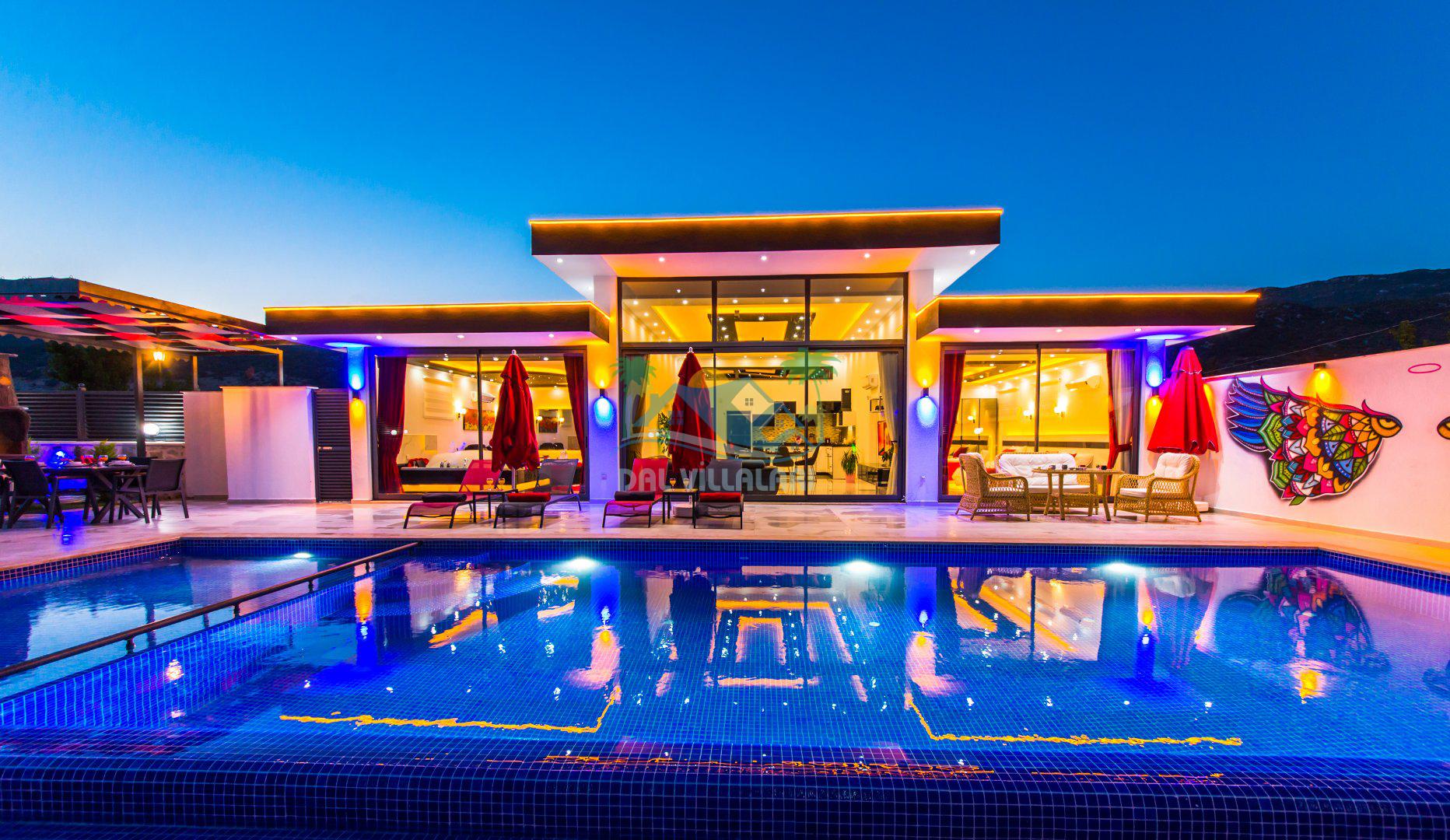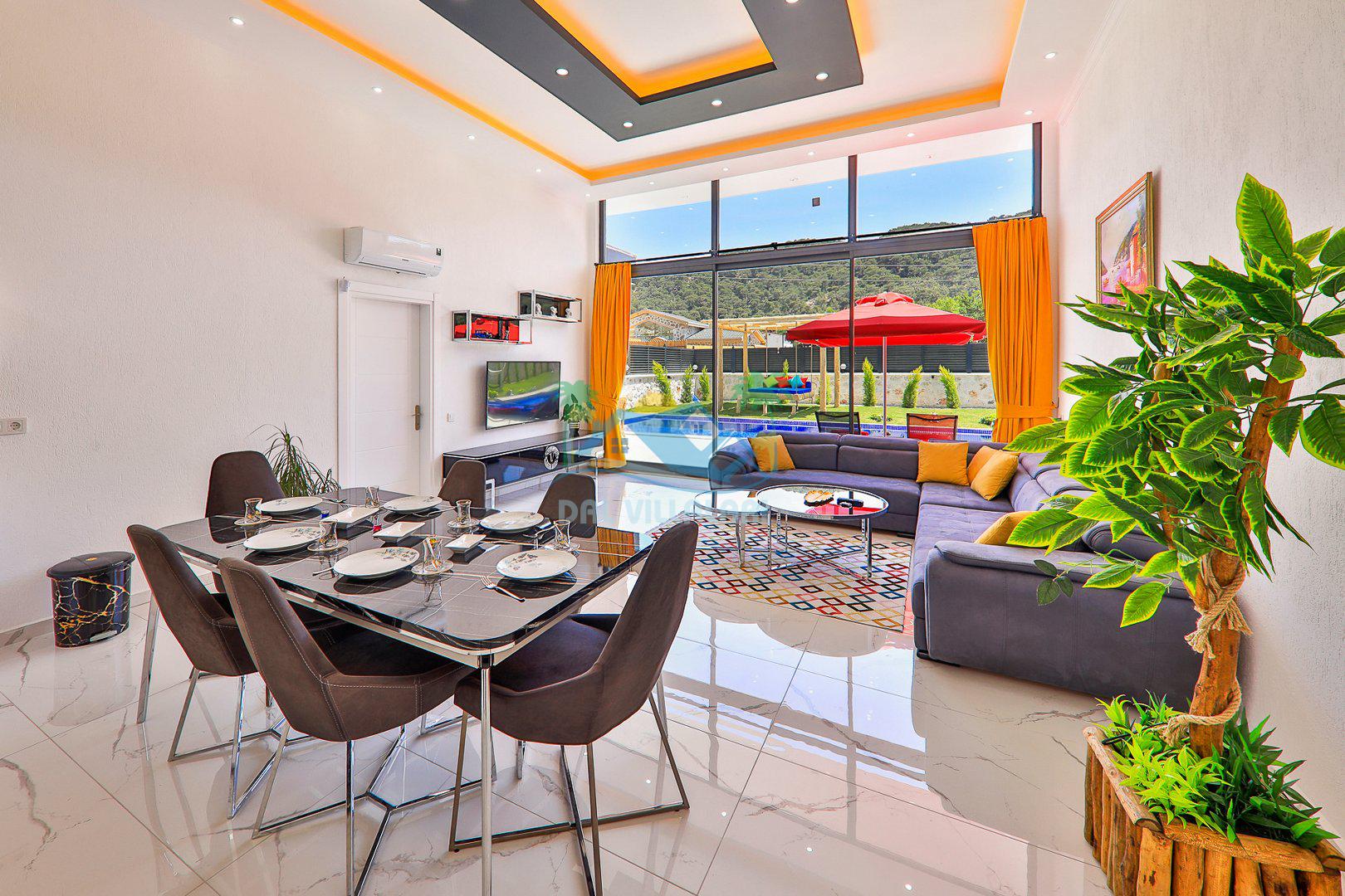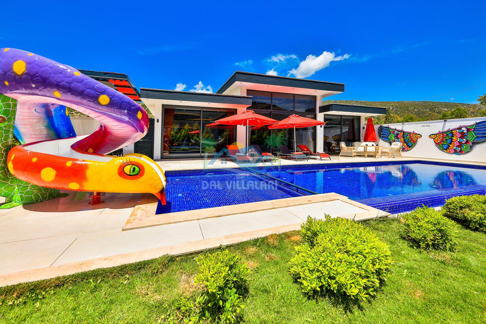 Muhafazakar mimarisi, tamamen korunaklı özel havuzu 🏊♂️ ve doğa manzaralı keyifli bahçesiyle, gözlerden uzak bir tatil arayanlara ilaç gibi gelecek. Villanın dikkat çeken detayları arasında jakuzi, çocuk parkı 🎠, hamak, salıncak ve şık oturma alanları bulunuyor.