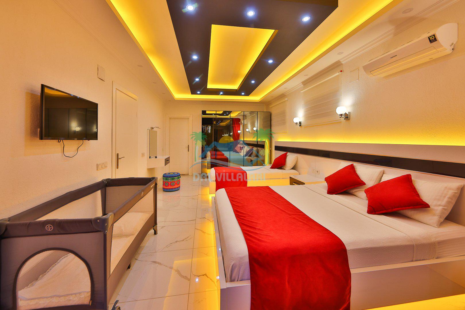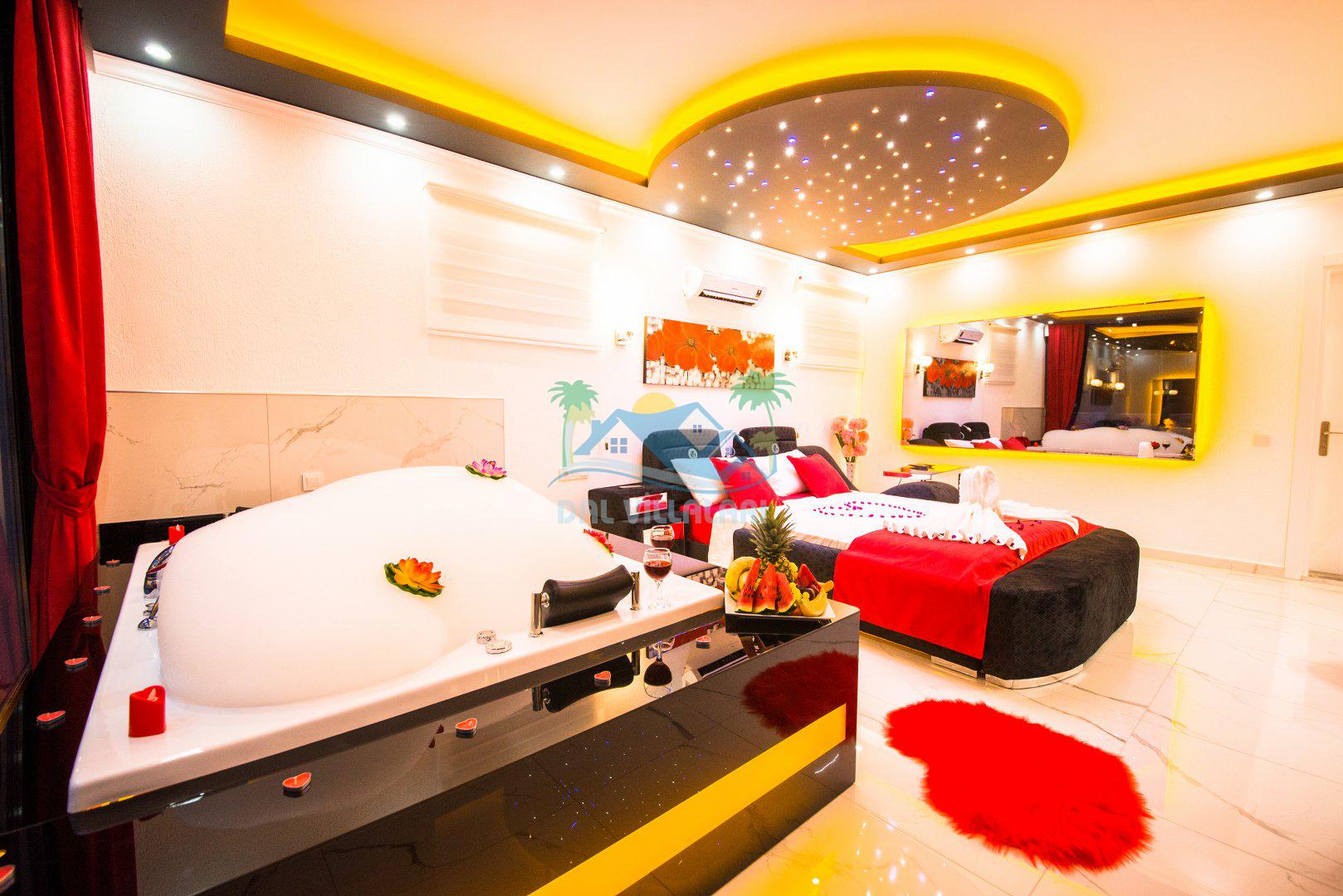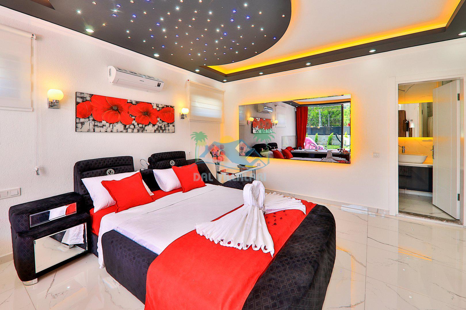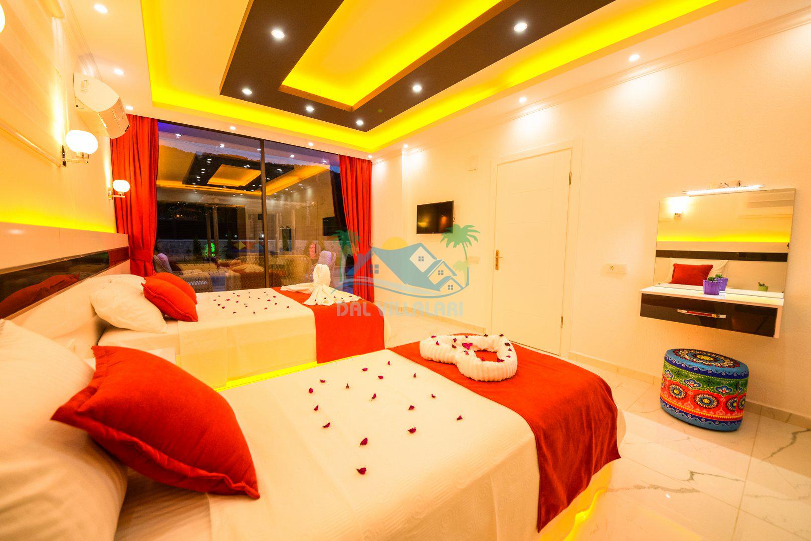 Yatak Odası 1: Çift kişilik yatak, klima, jakuzi, ebeveyn banyosu