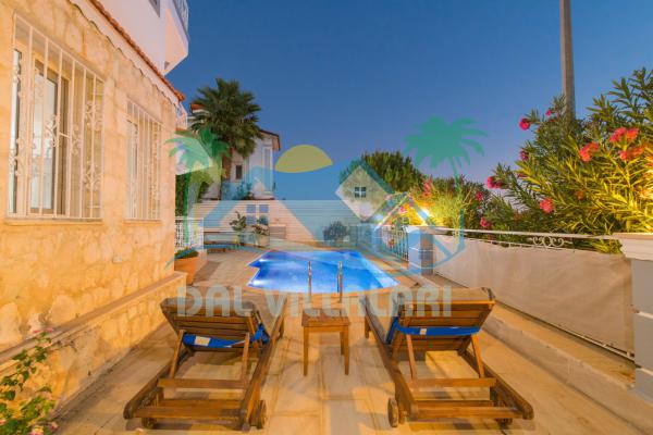 Kalkan Kızıltaş mevkiinde bulunan villa, 2 yatak odasıyla 4 kişilik konaklama kapasitesi sunmaktadır. Çekirdek aile ve balayı çiftleri için uygun seçenekler arasındadır.