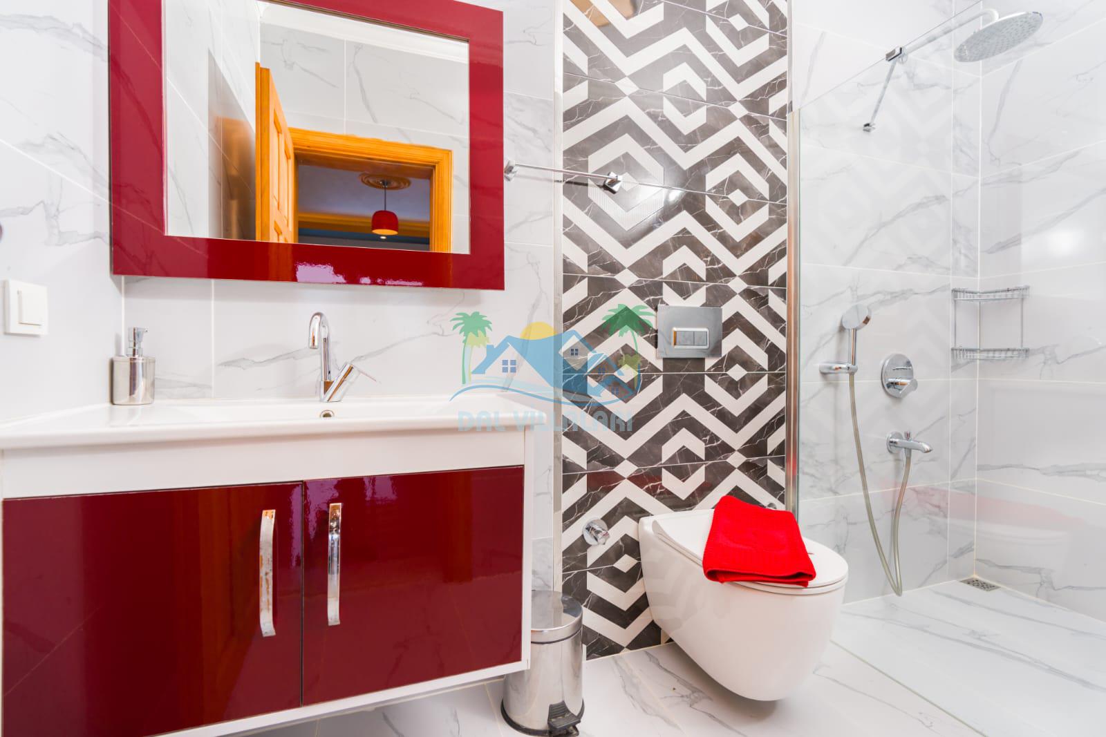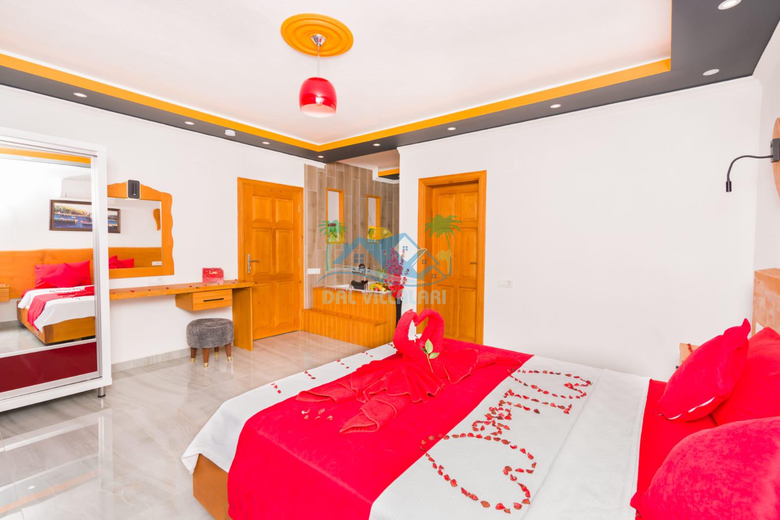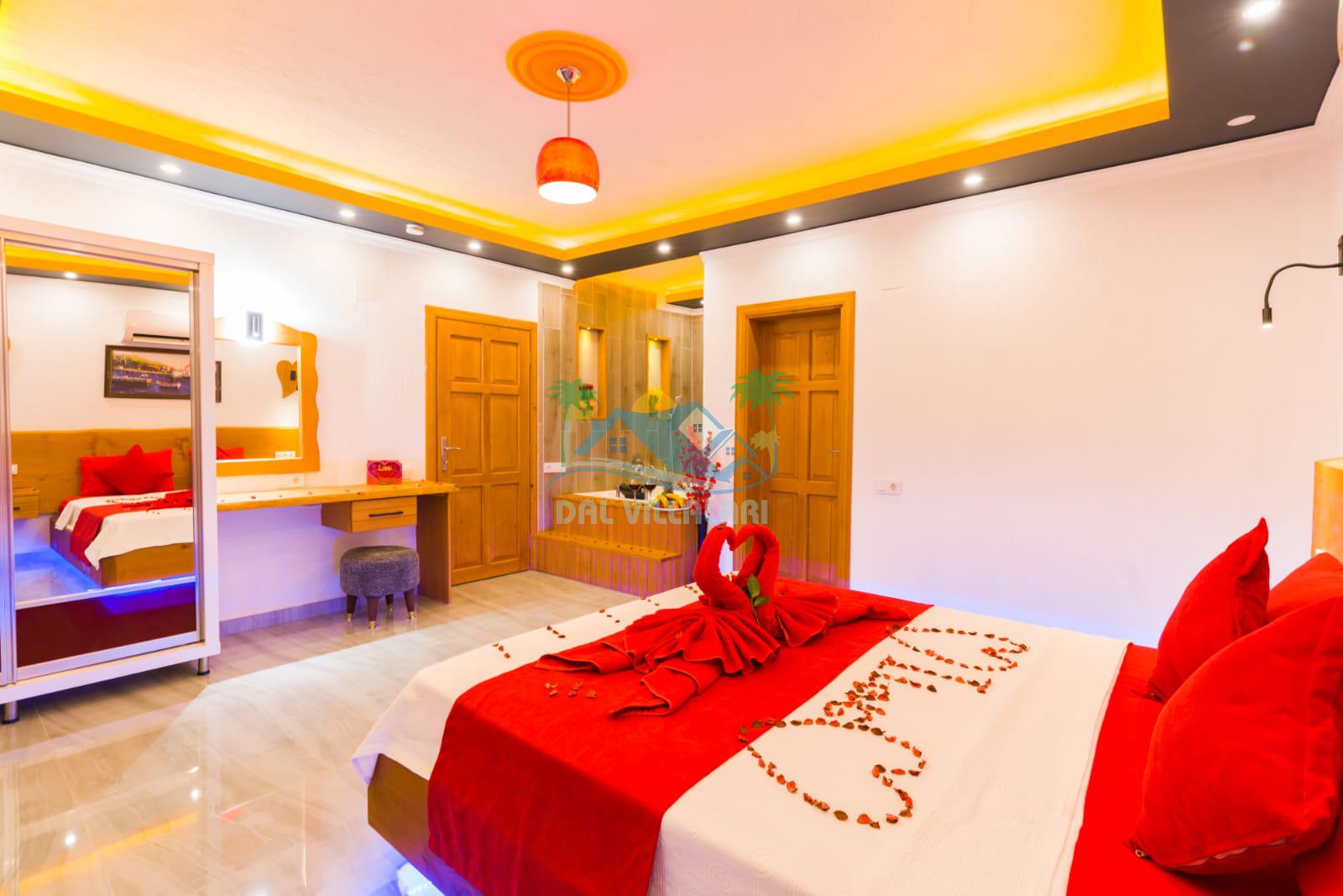 1. Yatak Odası 1 Çift Kişilik Yatak + Komodin + Elbise Dolabı + Makyaj Masası + Klima + Ebeveyn Banyo + Jakuzi