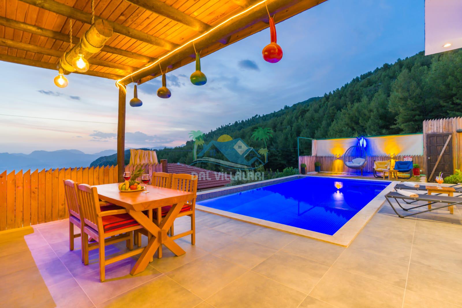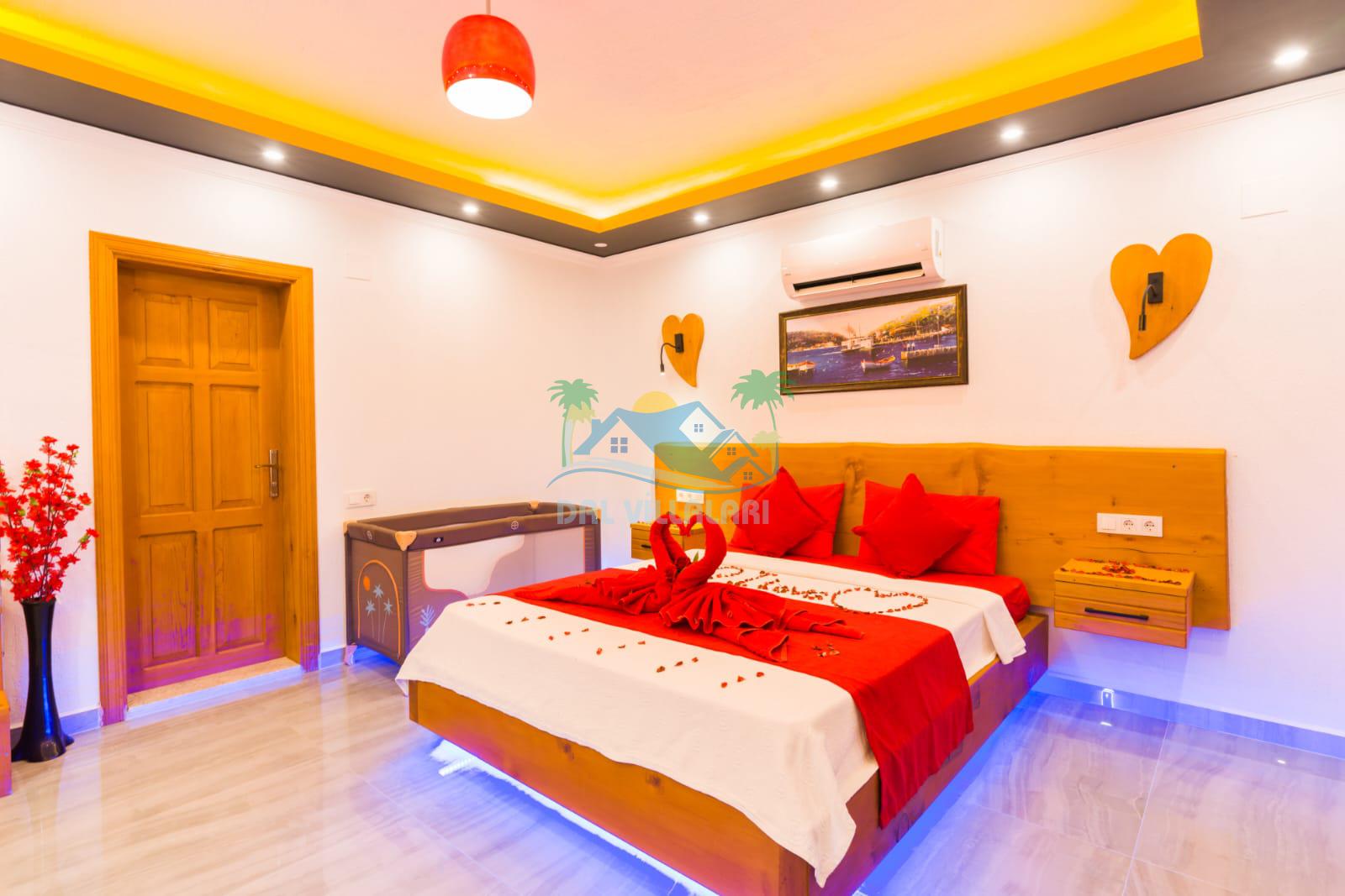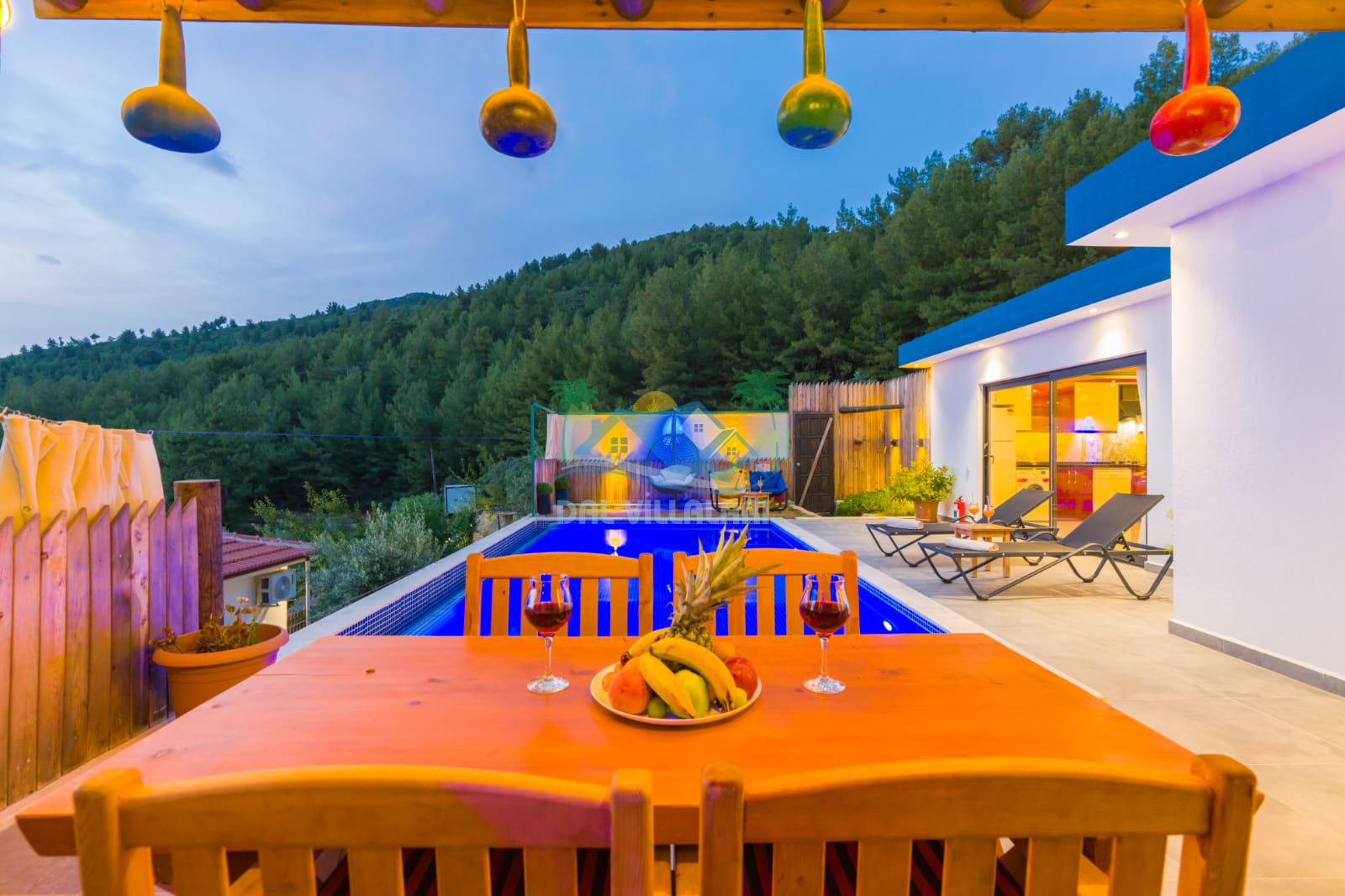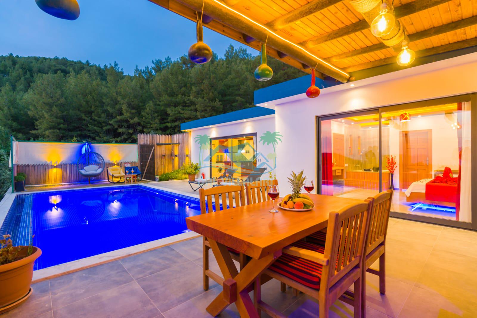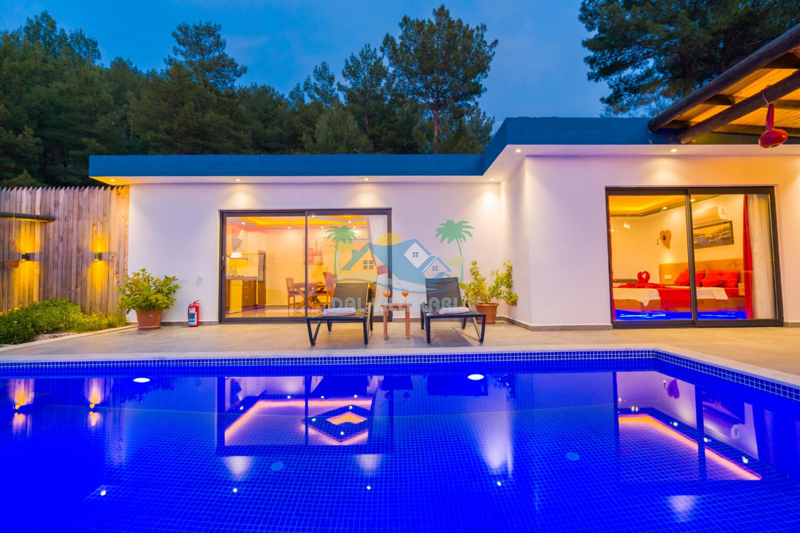 Kalkan İslamlarda benzersiz doğa işlemlerine sahiptir. 1 yatak odalı 2 kişi konaklama imkanıdır. İç ve bahçe tasarımıyla oldukça konforludur. Korunaklı havuz terası ile muhafazakar balayı çiftleri için oldukça geniş seçenekler. Yatak odasında jakuzi yer almaktadır. Balayı çiftleri için muhafazakar jakuzili kiralık balayı villasıdır.