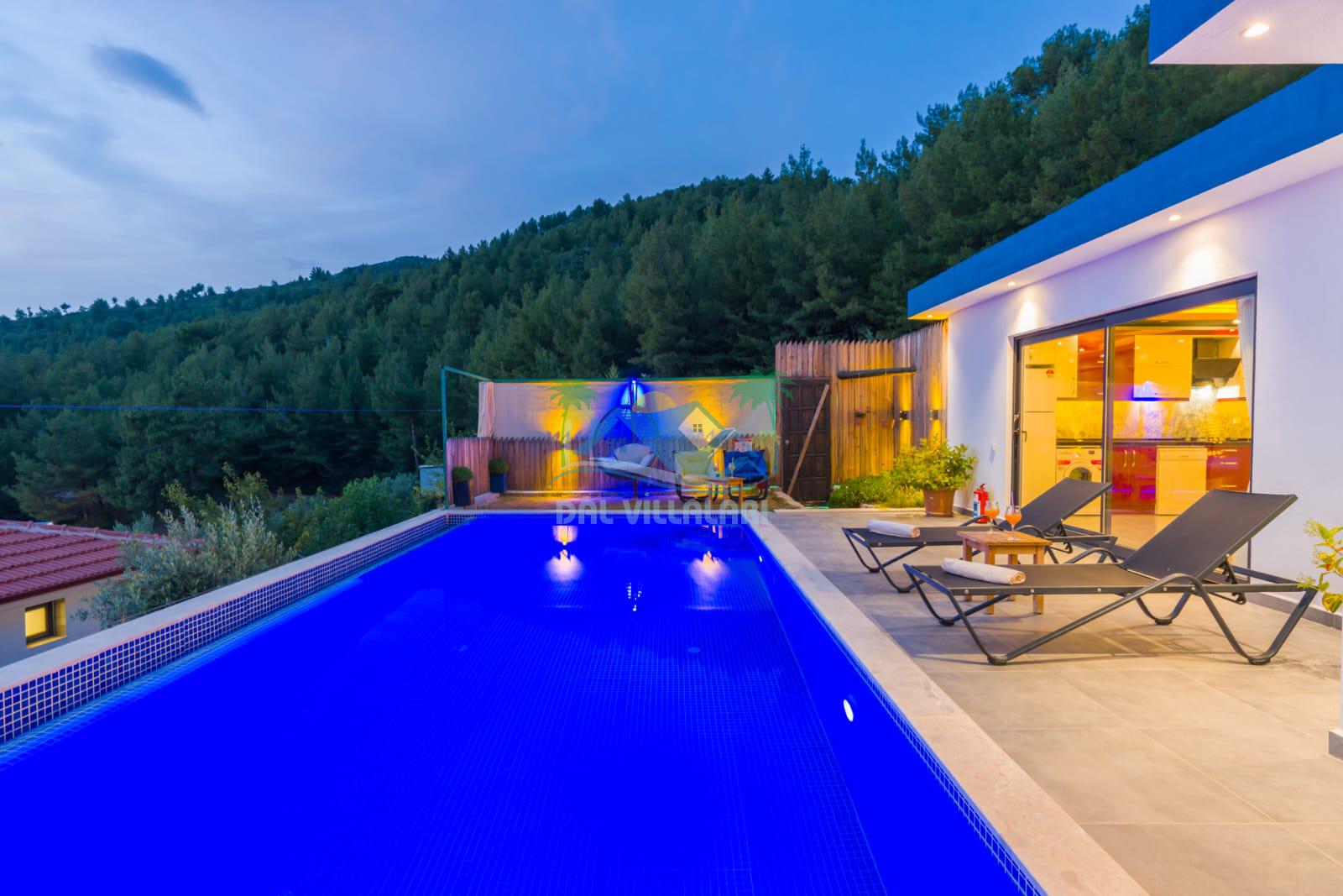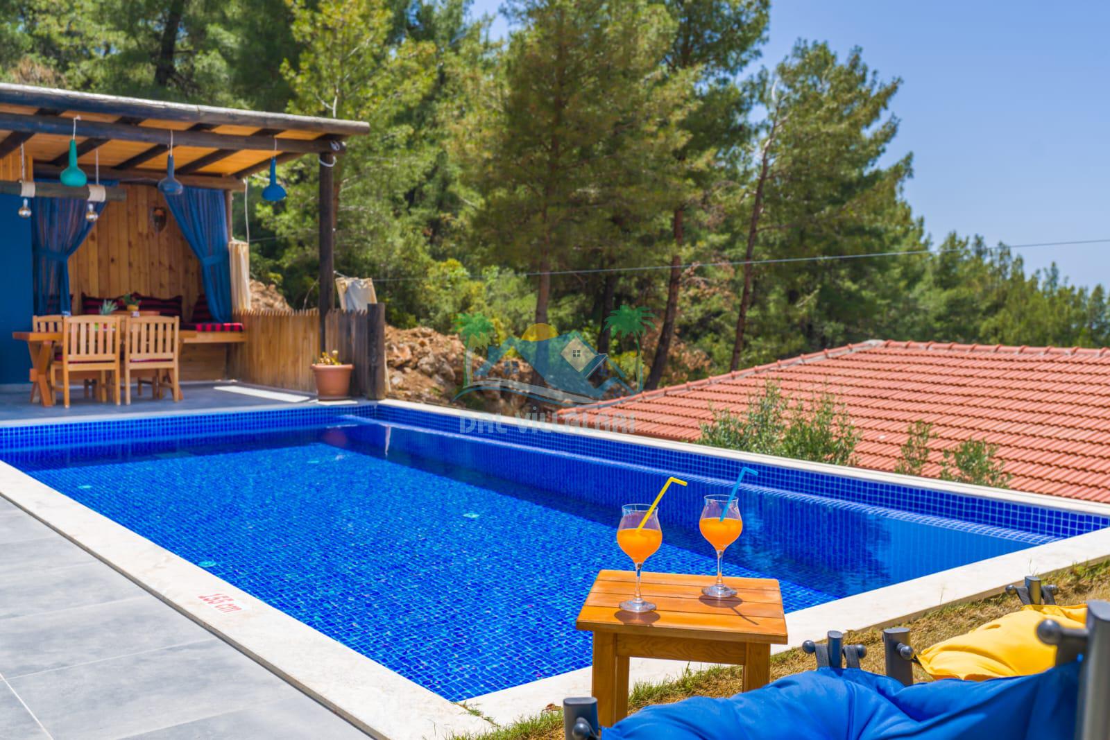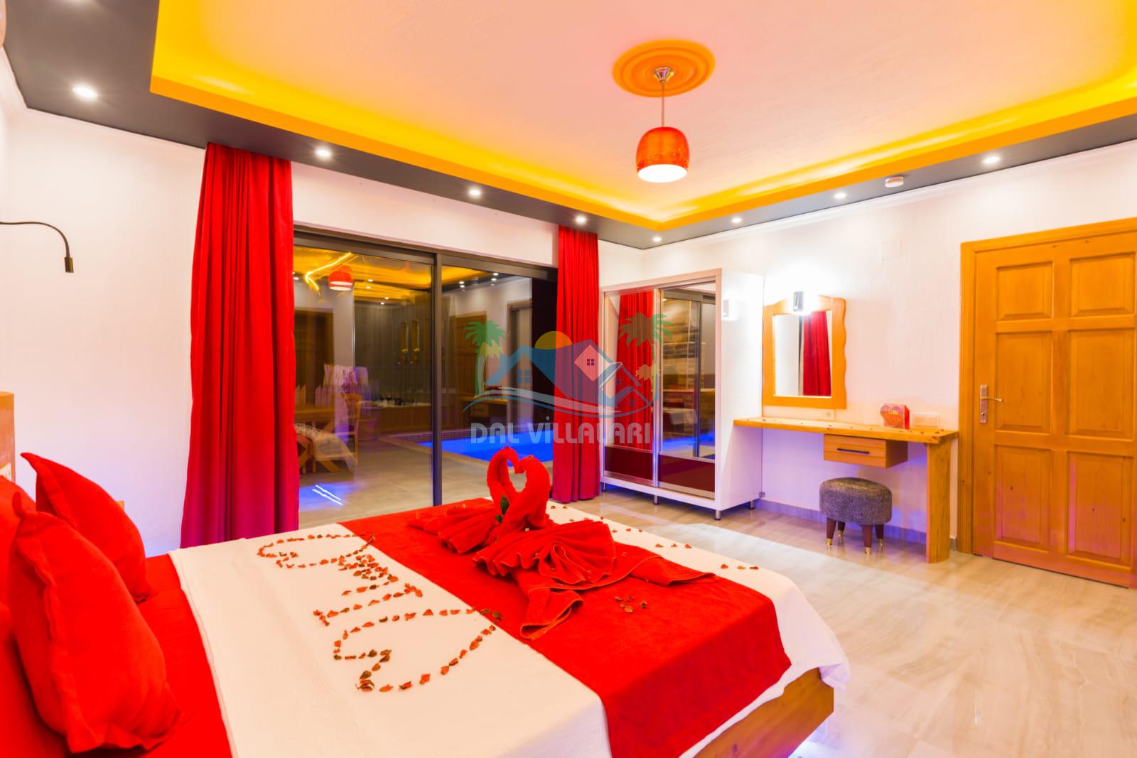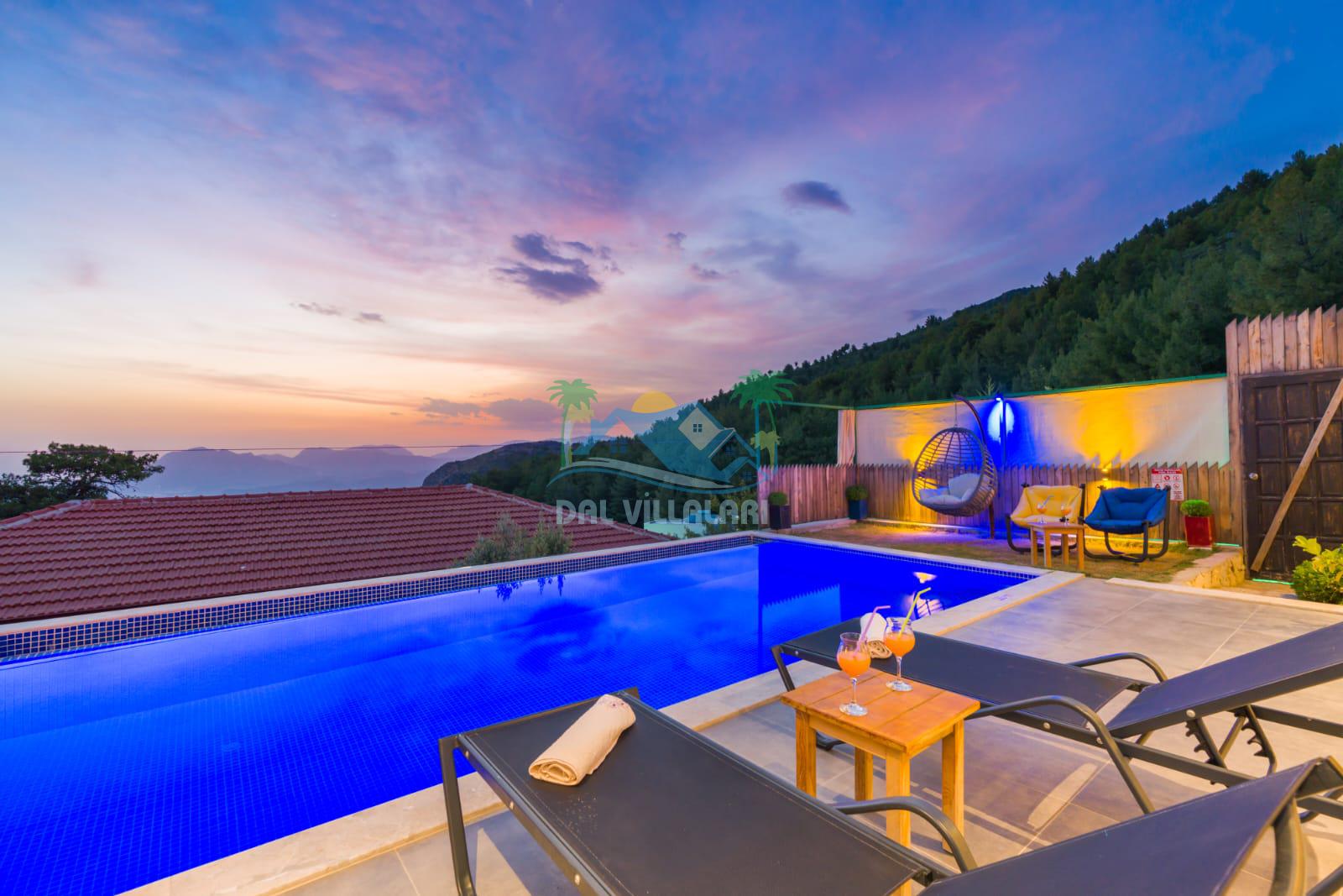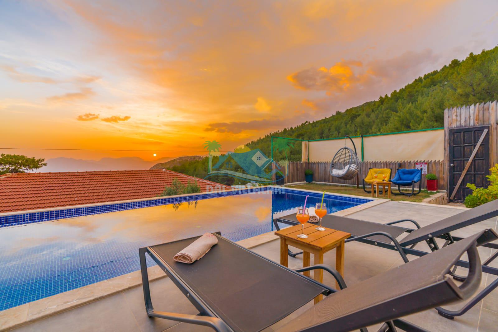 Kalkan İslamlarda benzersiz doğa işlemlerine sahiptir. 1 yatak odalı 2 kişi konaklama imkanıdır. İç ve bahçe tasarımıyla oldukça konforludur. Korunaklı havuz terası ile muhafazakar balayı çiftleri için oldukça geniş seçenekler. Yatak odasında jakuzi yer almaktadır. Balayı çiftleri için muhafazakar jakuzili kiralık balayı villasıdır.