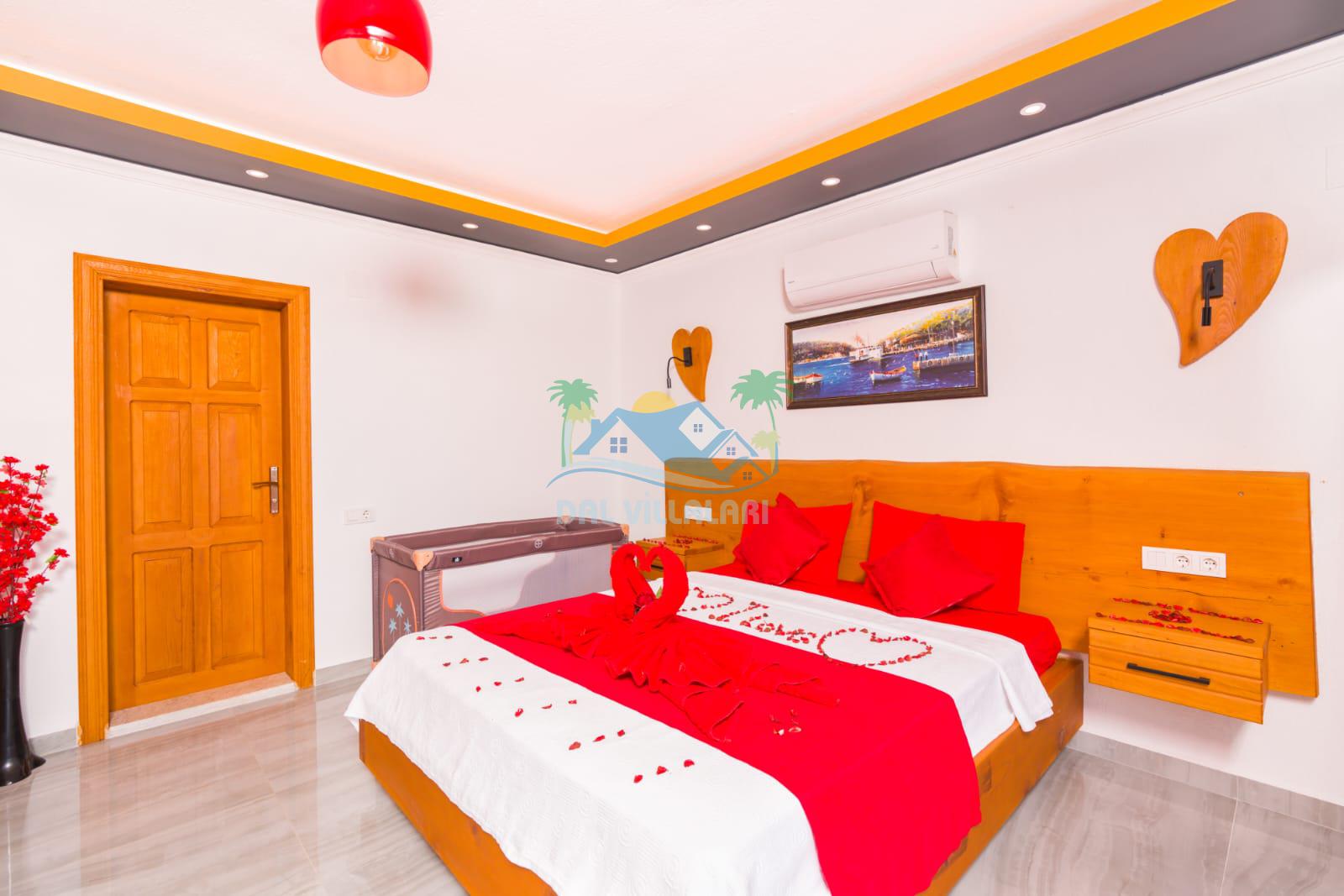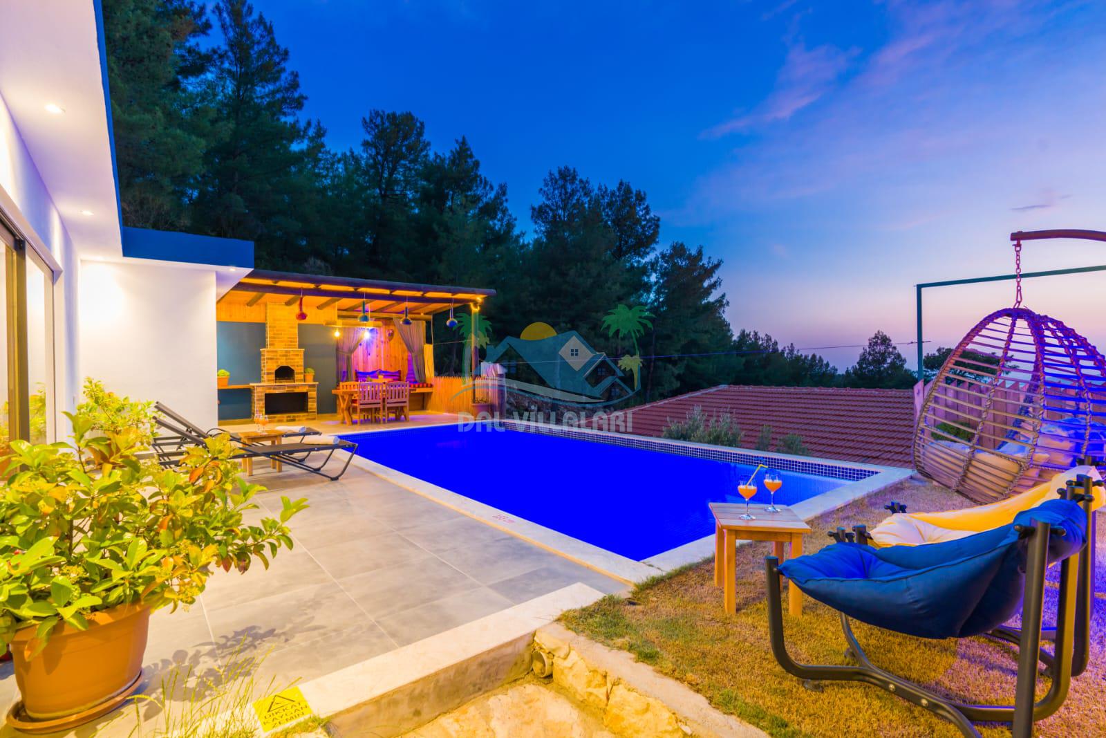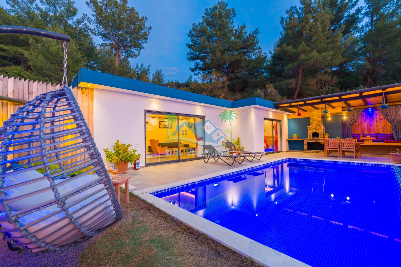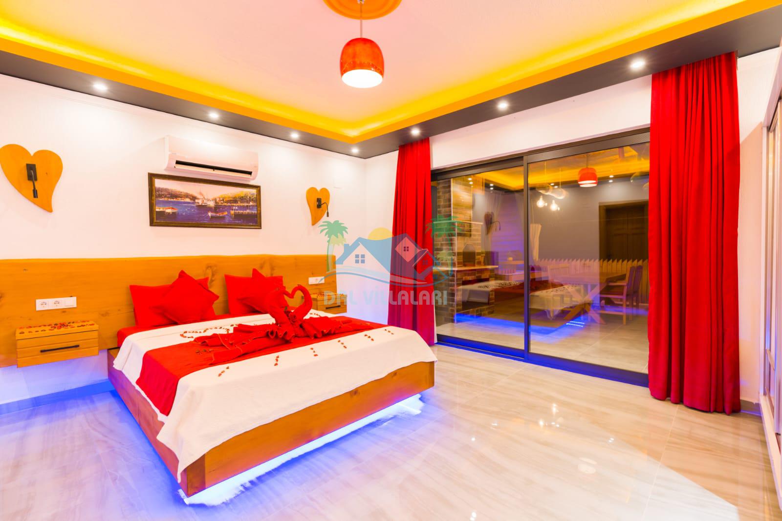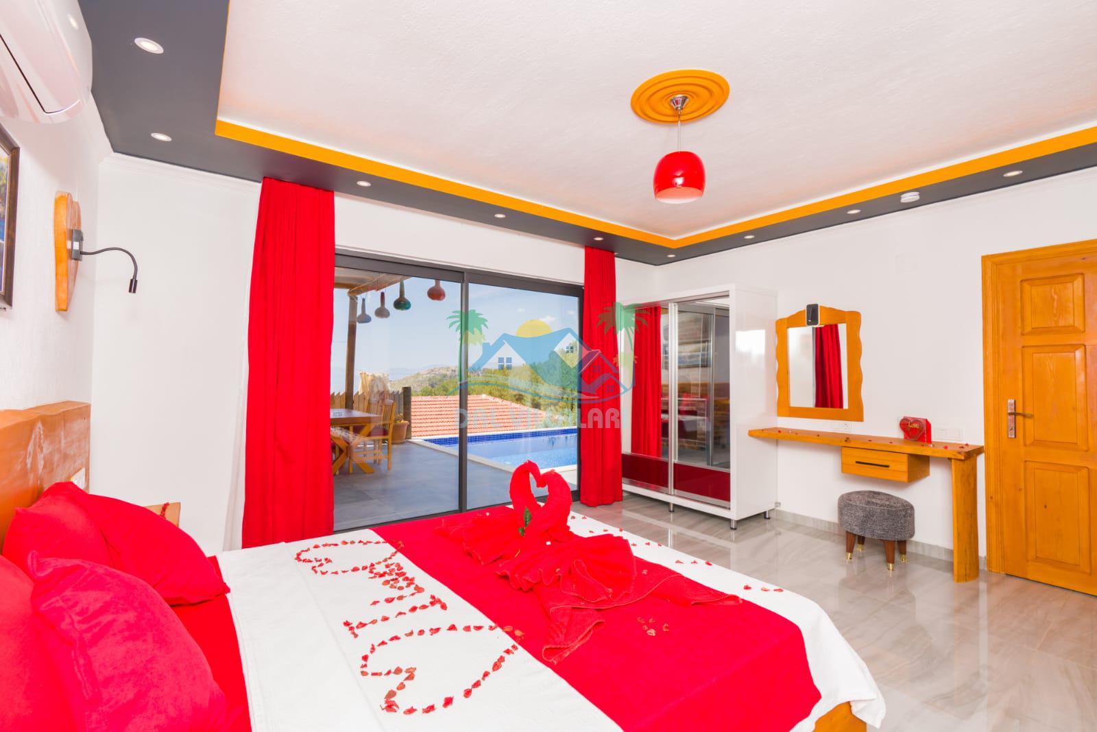Kalkan İslamlarda benzersiz doğa işlemlerine sahiptir. 1 yatak odalı 2 kişi konaklama imkanıdır. İç ve bahçe tasarımıyla oldukça konforludur. Korunaklı havuz terası ile muhafazakar balayı çiftleri için oldukça geniş seçenekler. Yatak odasında jakuzi yer almaktadır. Balayı çiftleri için muhafazakar jakuzili kiralık balayı villasıdır.