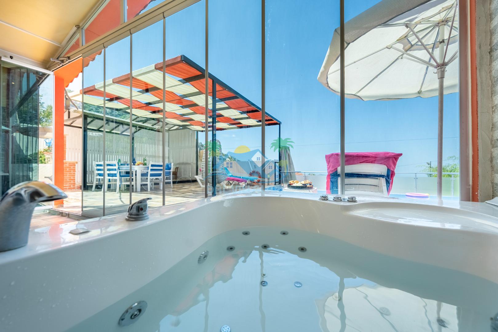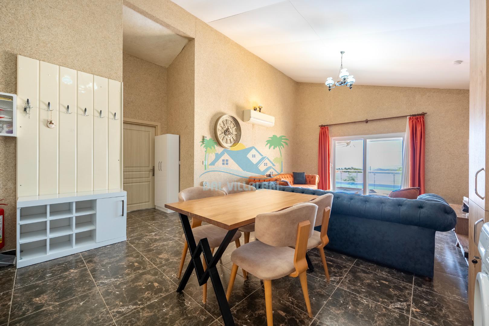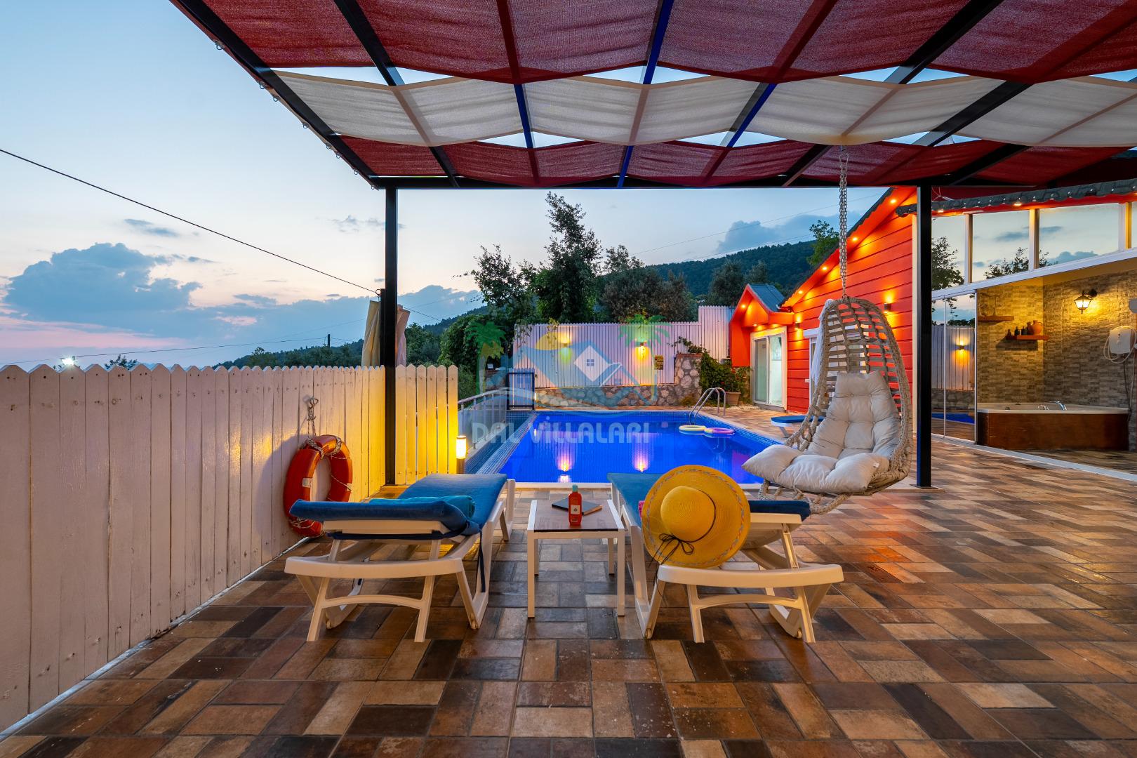 Villamızın içerisinde bir adet yatak odası ve iki adet banyo bulunmaktadır. Yatak odası içerisinde çift kişilik yatak, klima, televizyon ve banyo yer almaktadır. Salon içerisinde mutfak, oturma grubu, banyo, klima ve televizyon bulunmaktadır. Ayrıca jakuzi odası mevcut olup Jakuzi suyu ani su ısıtıcısı ve Gün ısı aracılığı ile ısıtılabilmektedir.