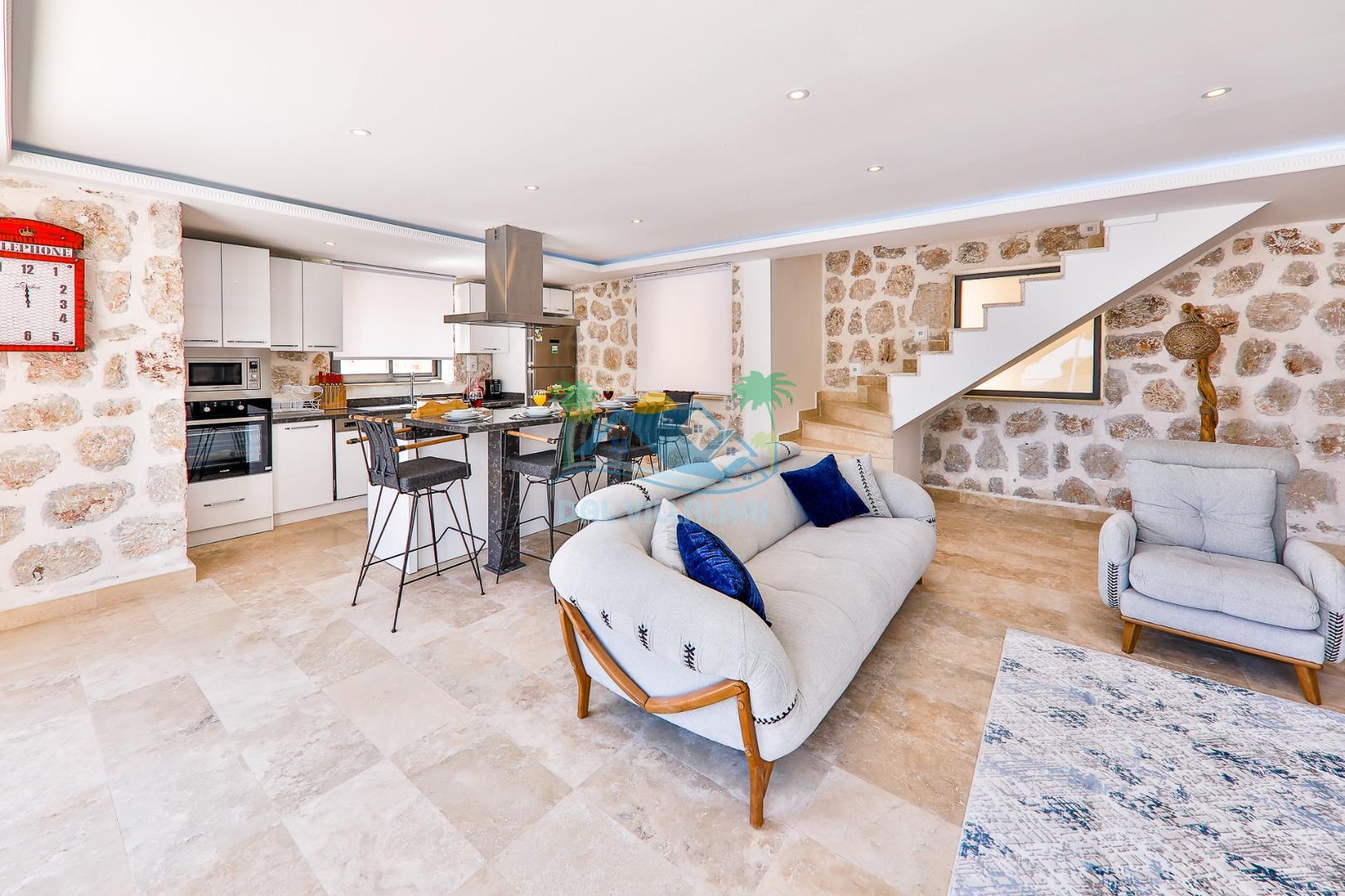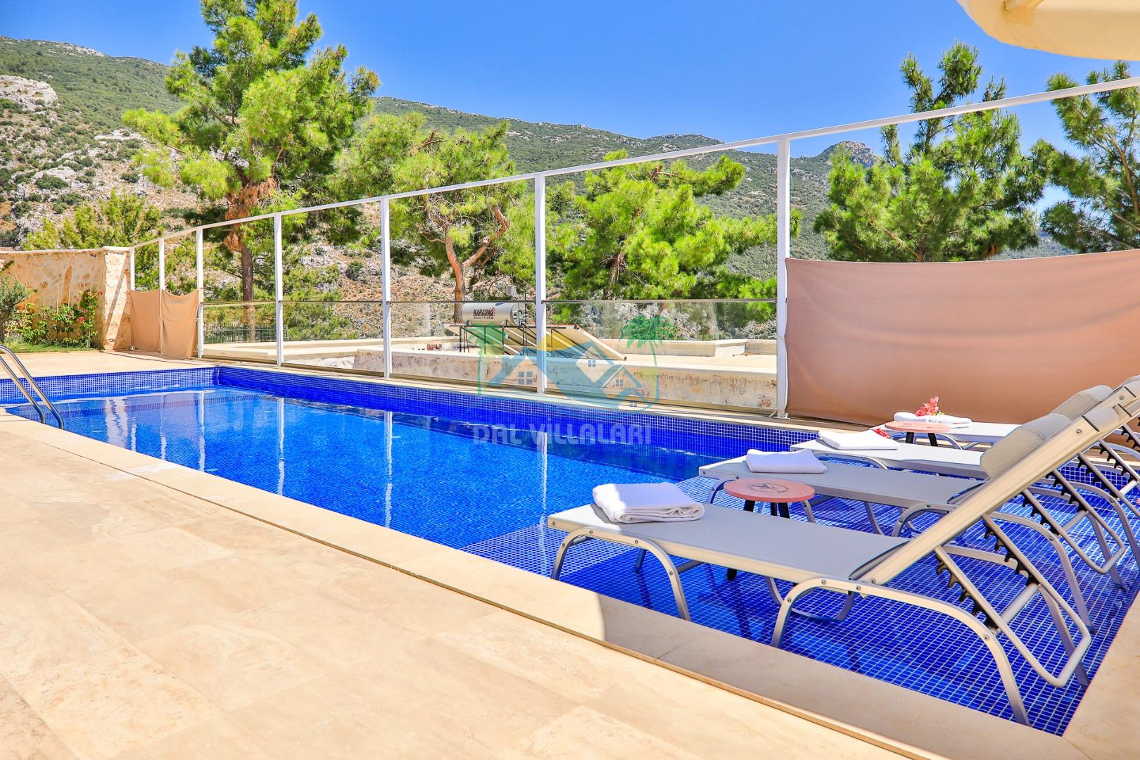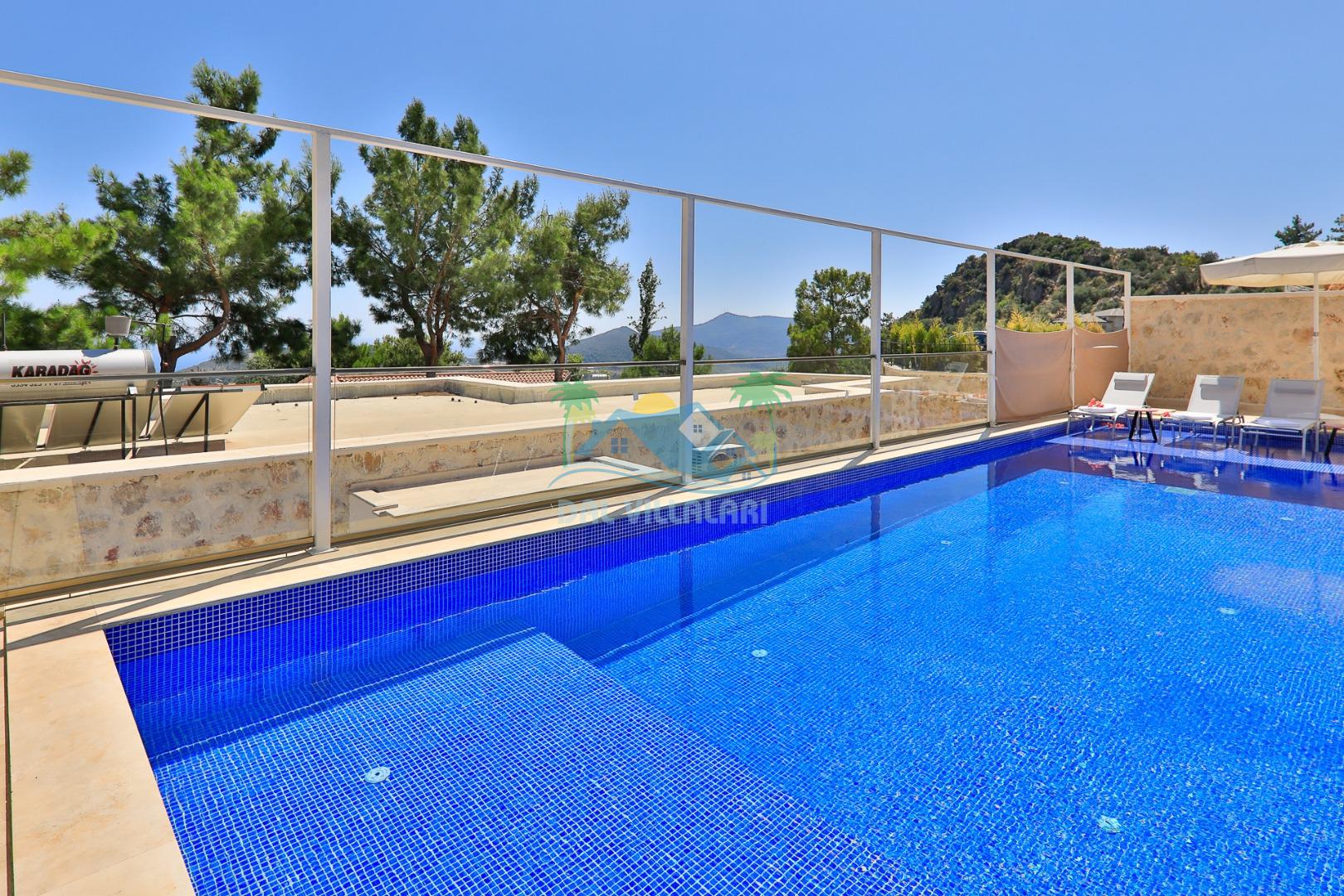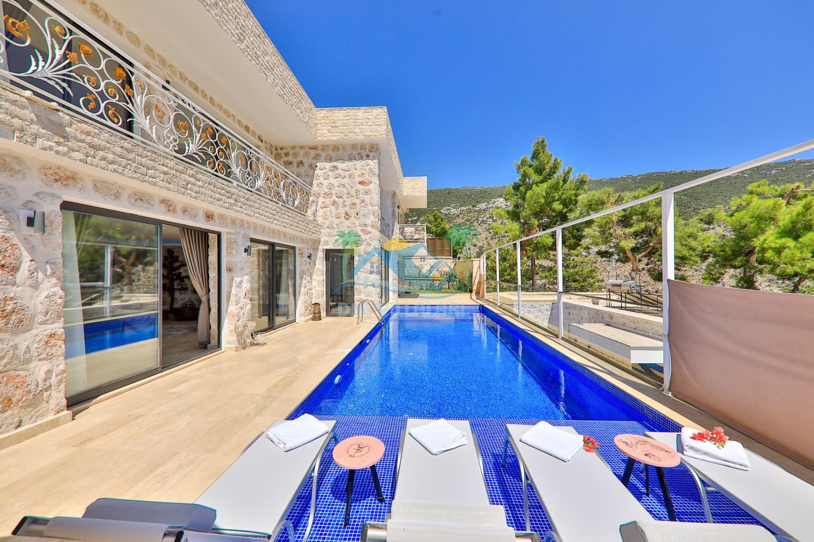 Antalya'nın en gözde tatil yerlerinden biri Kalkan beldesinin İslamlar bölgesinde bulunmaktadır. Mimari taş yapısı özel olarak tasarlanmış 10 binadan oluşan site içerisindedir. Bahçesi özel olarak tasarlanmış villamızda doğanın huzurunda tadını çıkaracaksınız. Muhteşem manzarası sizlere unutulmaz tatil yaşatacaktır. Jakuzisi bulunmaktadır. Havuzları özel tasarlanan villamızda 2 adet havuz bulunmaktadır. Kapalı ısıtmalı havuzu bulunmaktadır. Isıtmalı havuzlu villalarımızda kış aylarında havuza girebilirsiniz. Yaz kış size eksiksiz tatil imkanı sunmaktadır. Kendine ait özel havuzu bulunan villamız havuzu dışarıdan görünmemektedir. Havuzlu villalarımızda kesinlikle dışardan hiçbir görünmememe garantisi vermemekteyiz bu villalarımızda her zaman minimum sakınma payı mevcuttur. Sitede içerisinde çocuk parkı, otopark vs. bulunmaktadır.