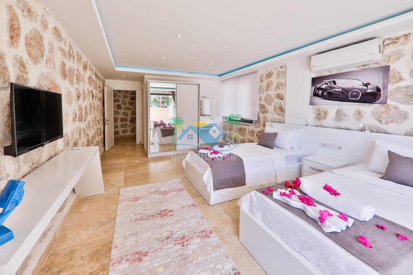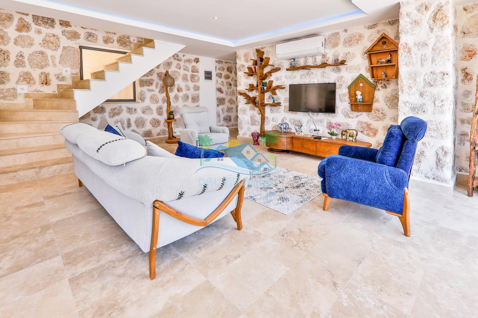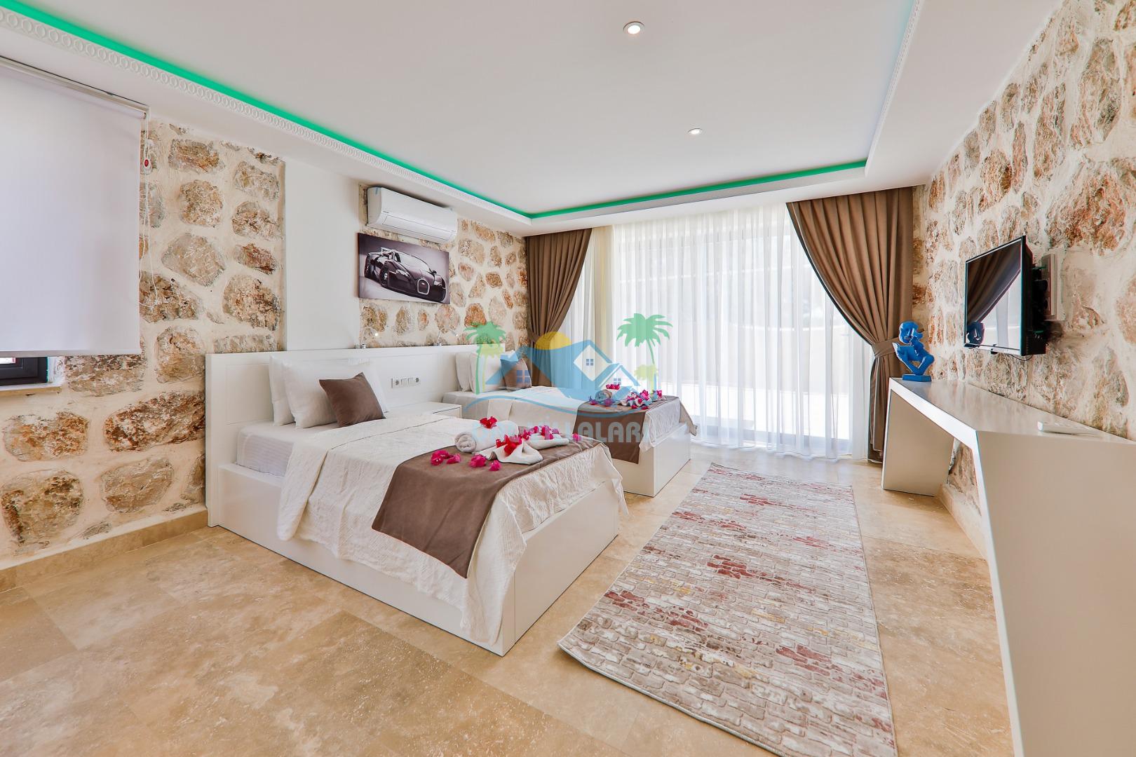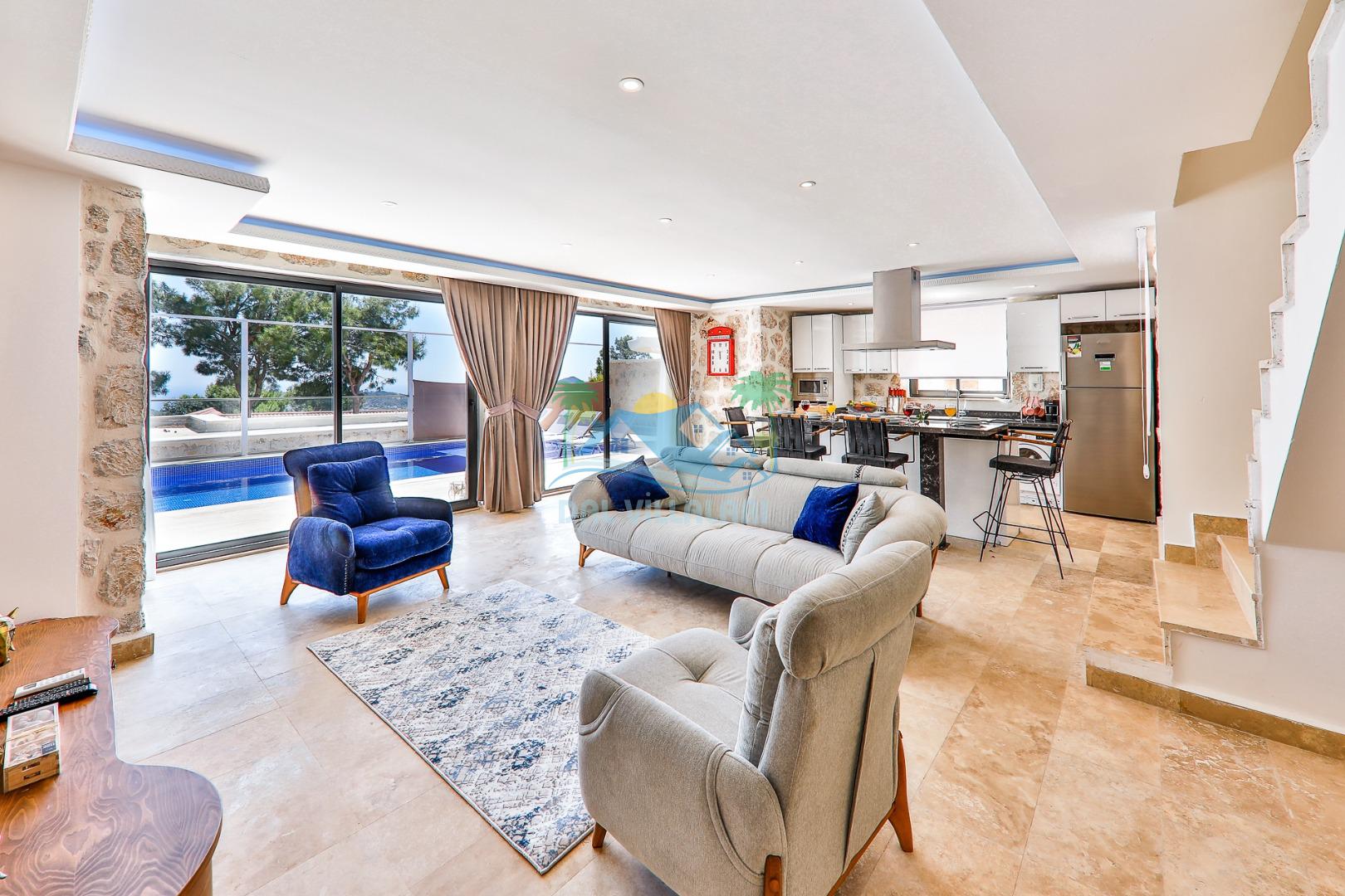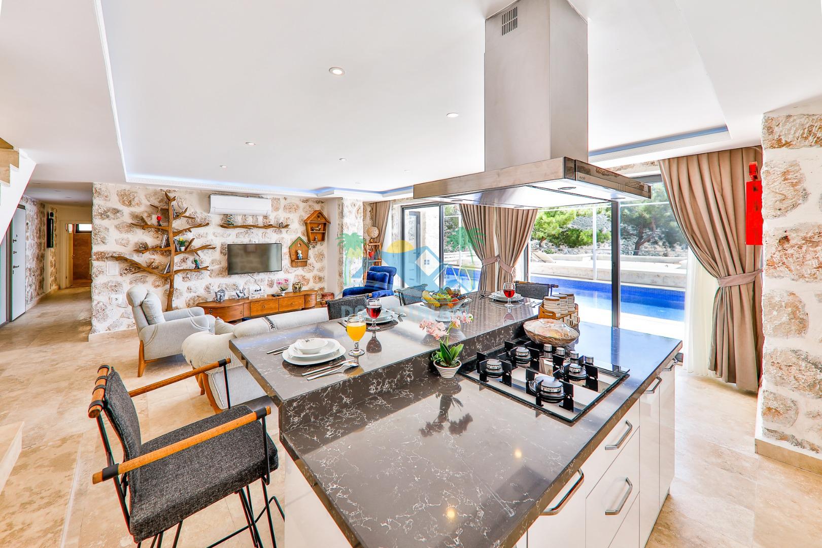 Antalya'nın en gözde tatil yerlerinden biri Kalkan beldesinin İslamlar bölgesinde bulunmaktadır. Mimari taş yapısı özel olarak tasarlanmış 10 binadan oluşan site içerisindedir. Bahçesi özel olarak tasarlanmış villamızda doğanın huzurunda tadını çıkaracaksınız. Muhteşem manzarası sizlere unutulmaz tatil yaşatacaktır. Jakuzisi bulunmaktadır. Havuzları özel tasarlanan villamızda 2 adet havuz bulunmaktadır. Kapalı ısıtmalı havuzu bulunmaktadır. Isıtmalı havuzlu villalarımızda kış aylarında havuza girebilirsiniz. Yaz kış size eksiksiz tatil imkanı sunmaktadır. Kendine ait özel havuzu bulunan villamız havuzu dışarıdan görünmemektedir. Havuzlu villalarımızda kesinlikle dışardan hiçbir görünmememe garantisi vermemekteyiz bu villalarımızda her zaman minimum sakınma payı mevcuttur. Sitede içerisinde çocuk parkı, otopark vs. bulunmaktadır.
