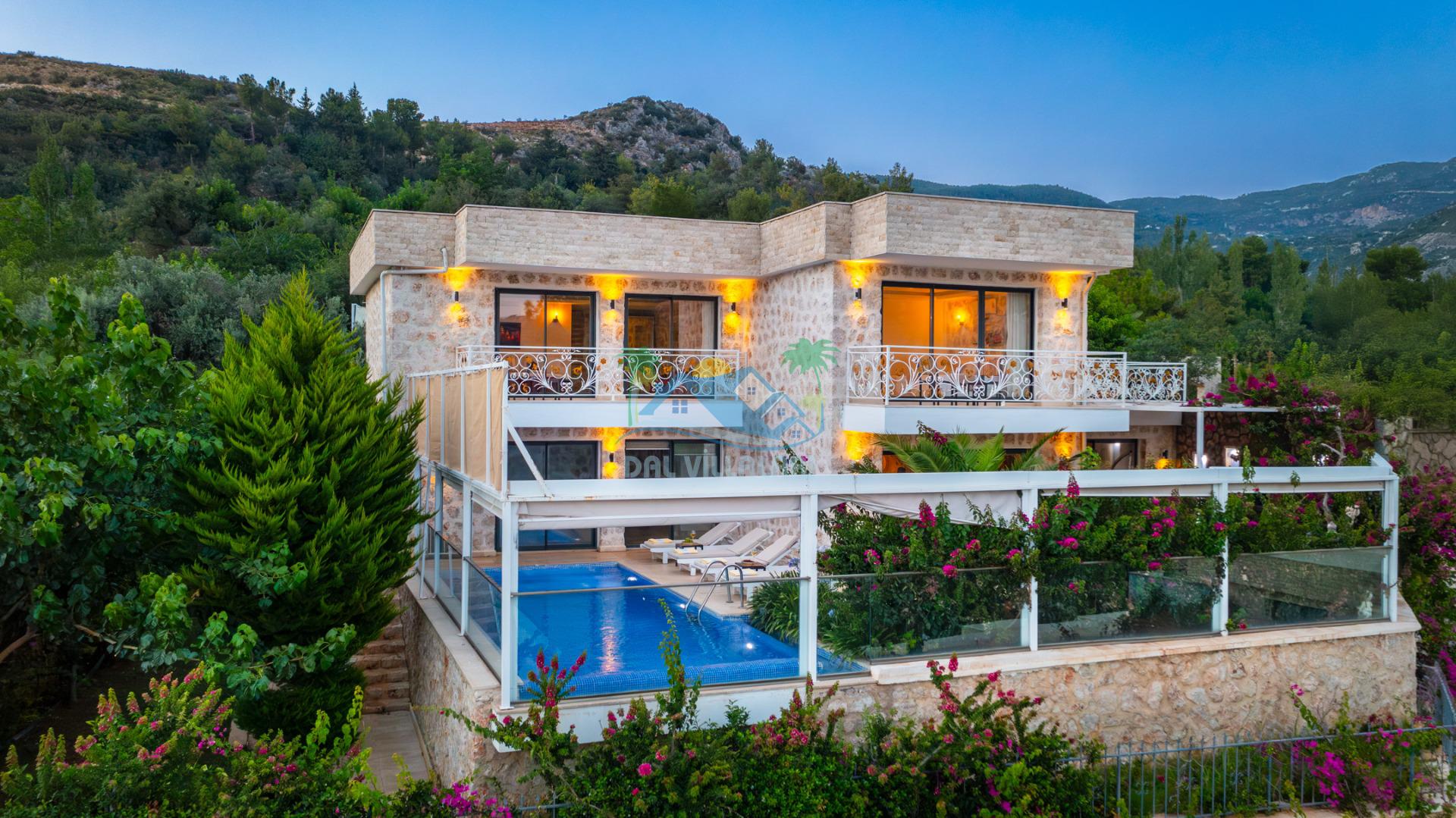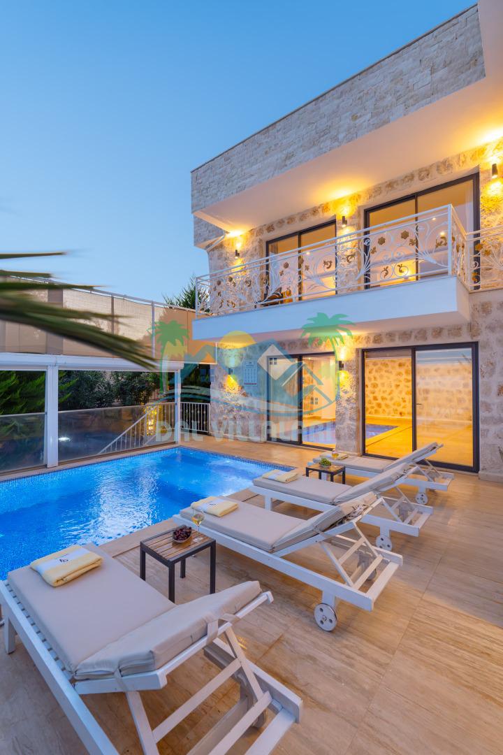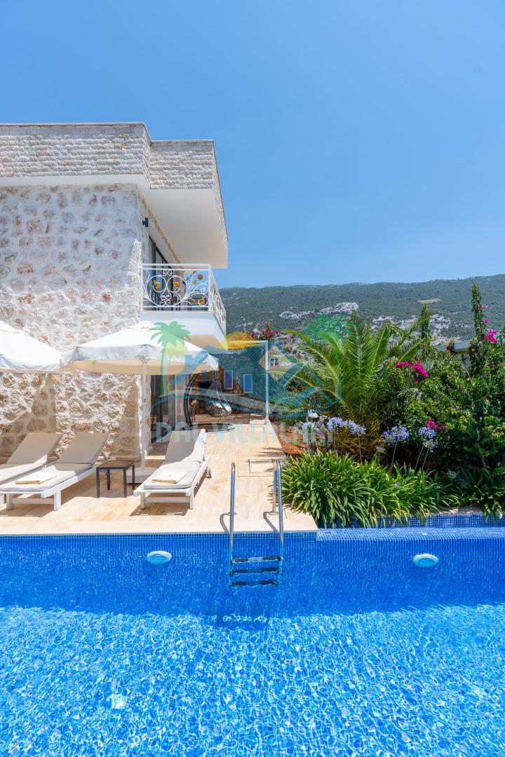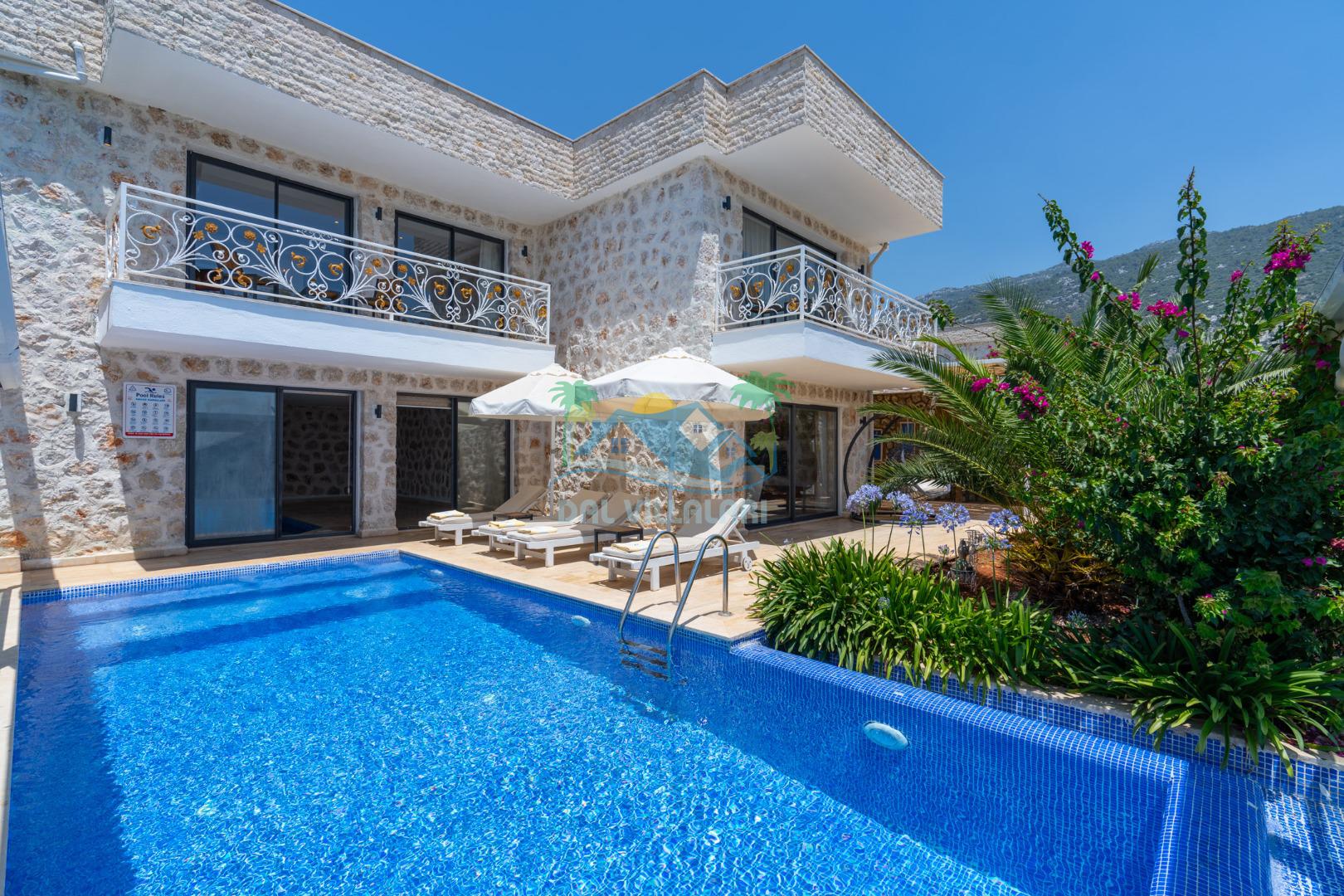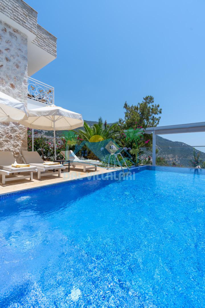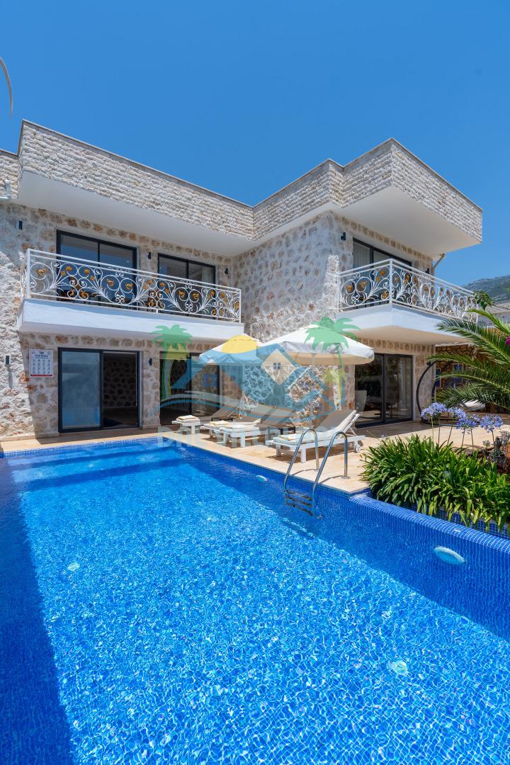 Antalya'nın en gözde tatil yerlerinden biri Kalkan beldesinin İslamlar bölgesinde bulunmaktadır. Mimari taş yapısı özel olarak tasarlanmış 10 binadan oluşan site içerisindedir. Bahçesi özel olarak tasarlanmış villamızda doğanın huzurunda tadını çıkaracaksınız. Muhteşem manzarası sizlere unutulmaz tatil yaşatacaktır. Havuzları özel tasarlanan villamızda 2 adet havuz bulunmaktadır. Kapalı ısıtmalı havuzu bulunmaktadır. Isıtmalı havuzlu villalarımızda kış aylarında havuza girebilirsiniz. Yaz kış size eksiksiz tatil imkanı sunmaktadır. Kendine ait özel havuzu bulunan villamız havuzu dışarıdan görünmemektedir. Uyandığınızda muhteşem bir manzaraya gözlerinizi açacaksınız. Huzurun adresi diyebileceğiniz villa seçeneği. Havuzlu villalarımızda kesinlikle dışardan hiçbir görünmememe garantisi vermemekteyiz bu villalarımızda her zaman minimum sakınma payı mevcuttur. Sitede , çocuk parkı, otopark vs. bulunmaktadır.
