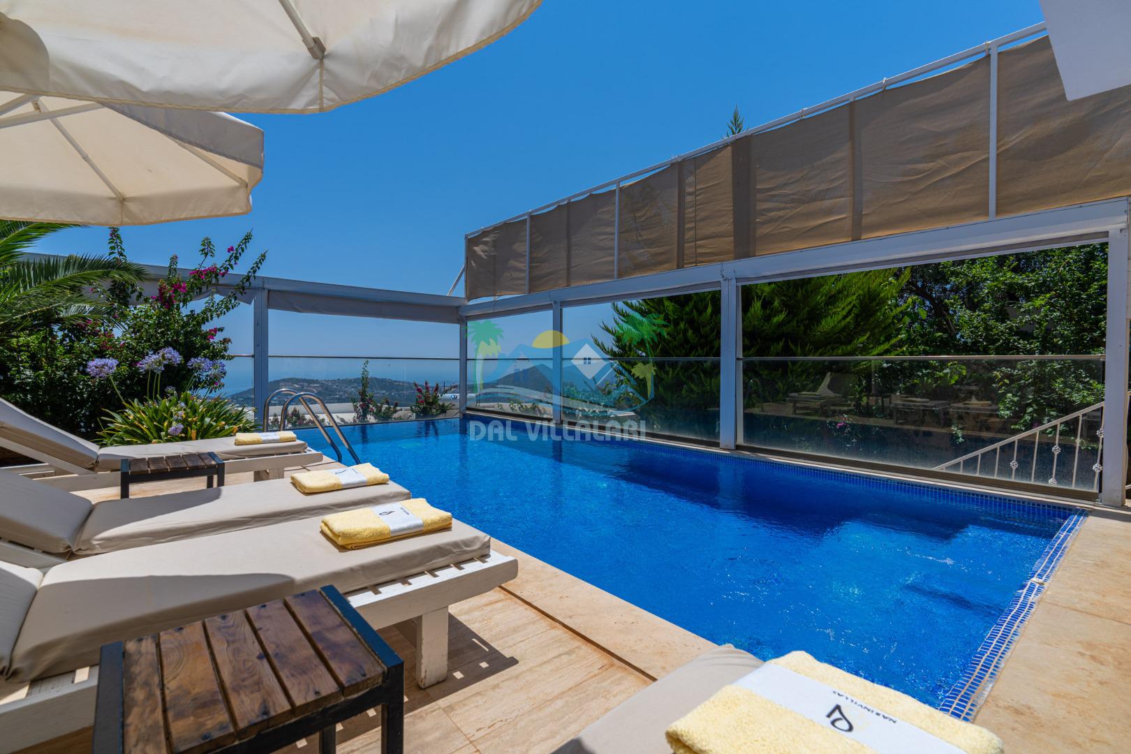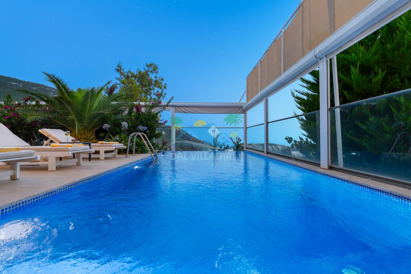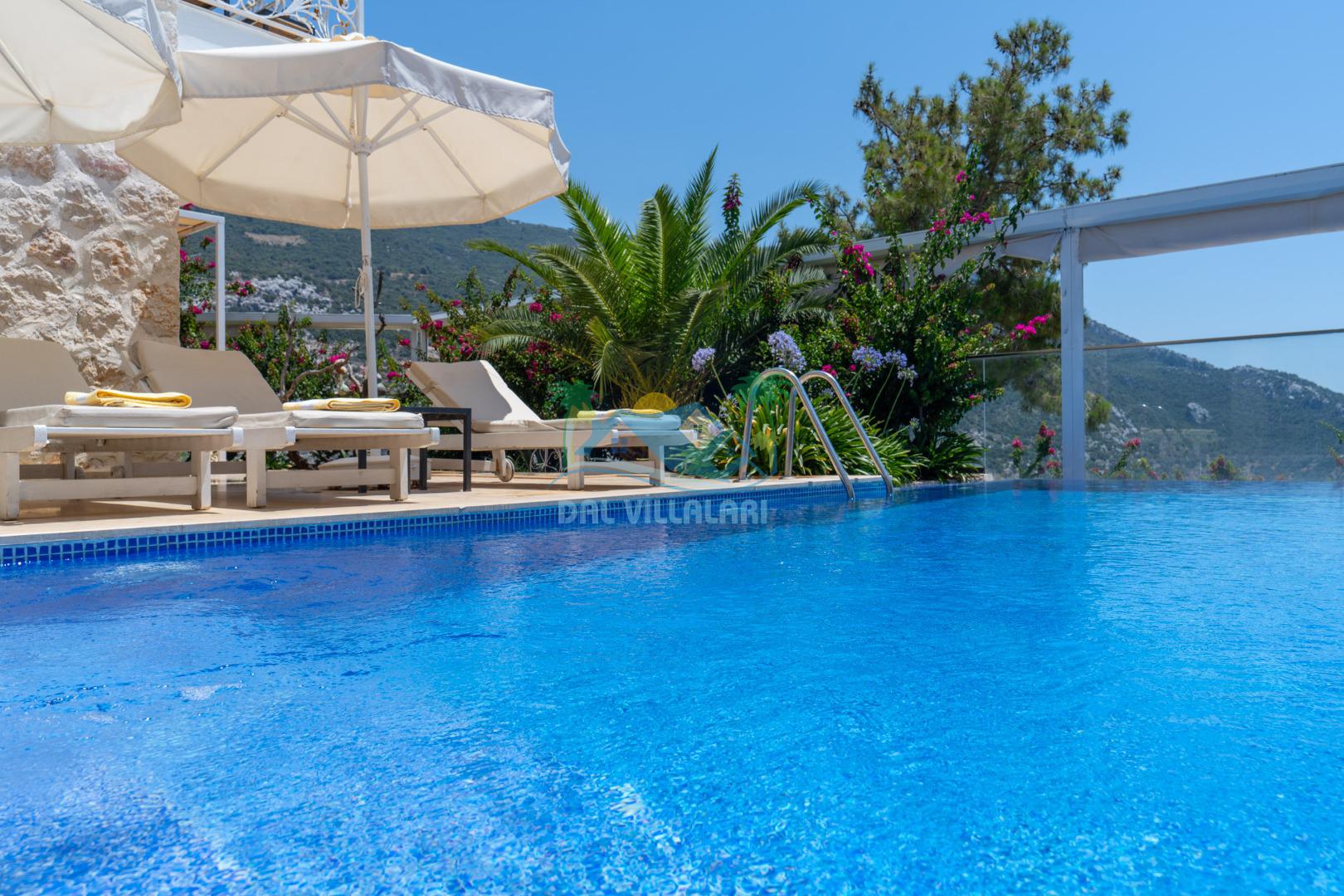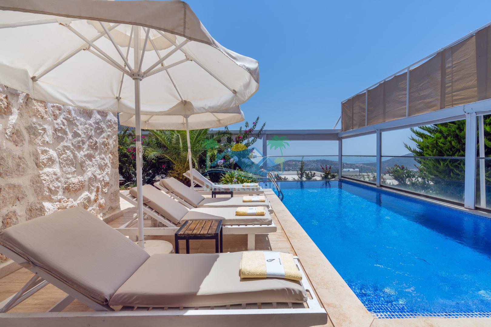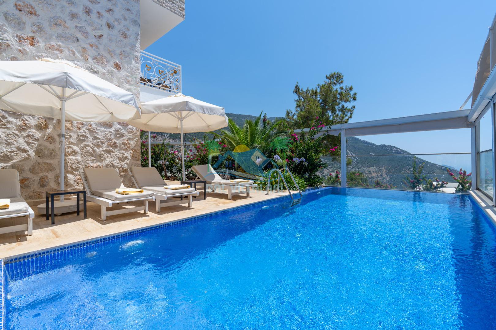 Antalya'nın en gözde tatil yerlerinden biri Kalkan beldesinin İslamlar bölgesinde bulunmaktadır. Mimari taş yapısı özel olarak tasarlanmış 10 binadan oluşan site içerisindedir. Bahçesi özel olarak tasarlanmış villamızda doğanın huzurunda tadını çıkaracaksınız. Muhteşem manzarası sizlere unutulmaz tatil yaşatacaktır. Havuzları özel tasarlanan villamızda 2 adet havuz bulunmaktadır. Kapalı ısıtmalı havuzu bulunmaktadır. Isıtmalı havuzlu villalarımızda kış aylarında havuza girebilirsiniz. Yaz kış size eksiksiz tatil imkanı sunmaktadır. Kendine ait özel havuzu bulunan villamız havuzu dışarıdan görünmemektedir. Uyandığınızda muhteşem bir manzaraya gözlerinizi açacaksınız. Huzurun adresi diyebileceğiniz villa seçeneği. Havuzlu villalarımızda kesinlikle dışardan hiçbir görünmememe garantisi vermemekteyiz bu villalarımızda her zaman minimum sakınma payı mevcuttur. Sitede , çocuk parkı, otopark vs. bulunmaktadır.