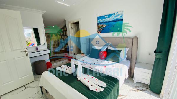 Villamız, şık ve modern şekilde dekore edilmiş iki yatak odasına ve iki banyoya sahiptir. Birinci yatak odasında çift kişilik yatak, jakuzi, banyo ve klima; ikinci yatak odasında ise iki tek kişilik yatak, banyo ve klima bulunmaktadır. Geniş salon alanında oturma grubu, tam donanımlı mutfak, klima ve televizyon yer almaktadır. Ayrıca, villada bulunan langırt masası, çocuk oyun alanı ve salıncak sayesinde eğlenceli vakit geçirebilirsiniz.