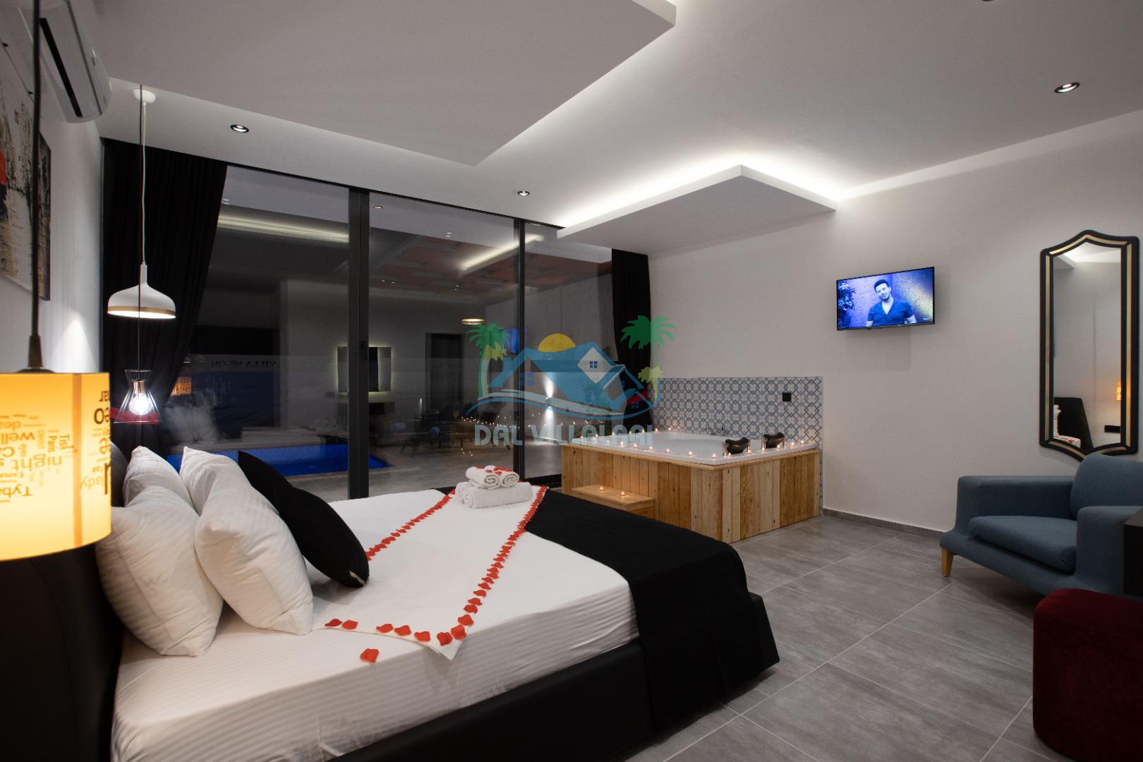 Bu villamızda, 4 kişiye kadar konaklayabilecek bir yaşam alanı bulunmaktadır. 2 yatak odası ve 2 banyo sayısı ile misafirlerine yeterli alan sağlayarak, kendinizi evinizde hissetmenizi sağlar. Ayrıca, villanın modern ve şık dekorasyonu, tatilinizi daha keyifli ve rahat bir hale getirecektir.