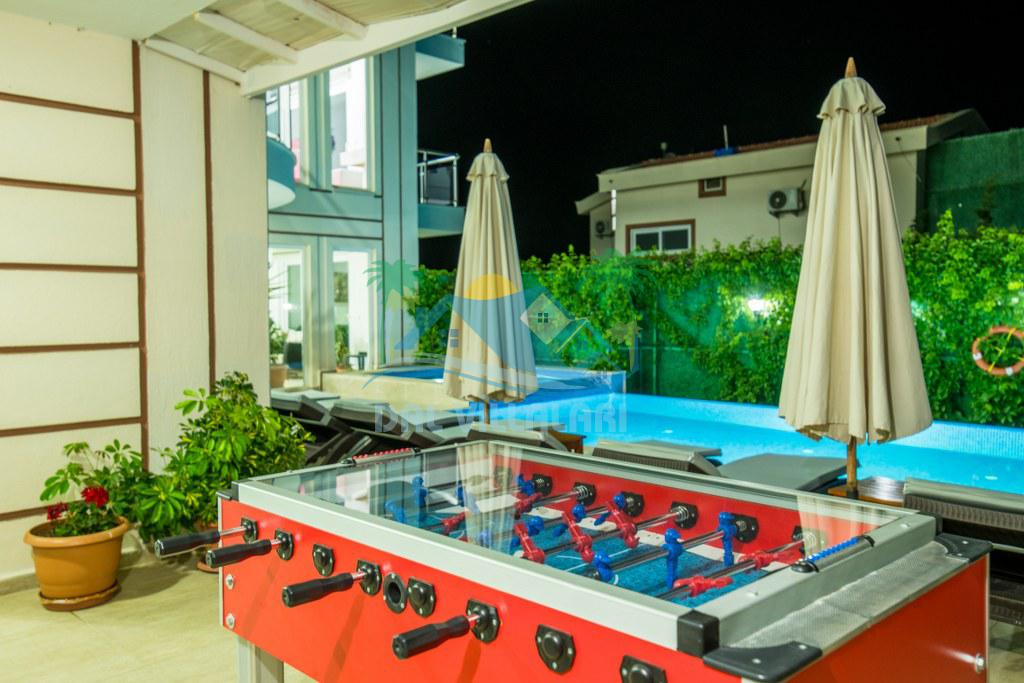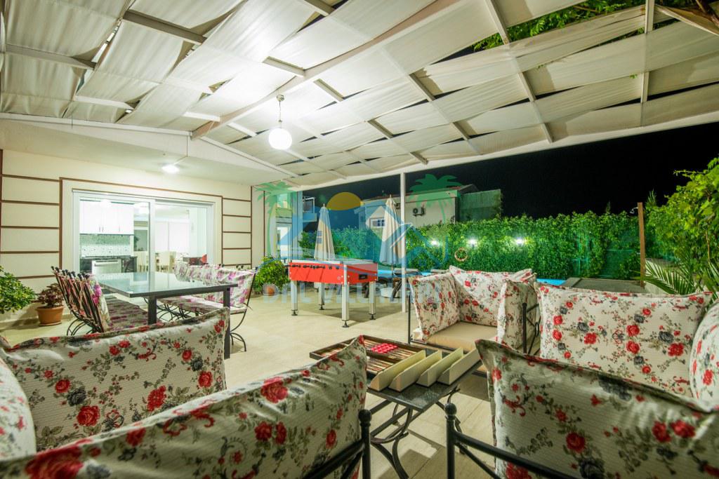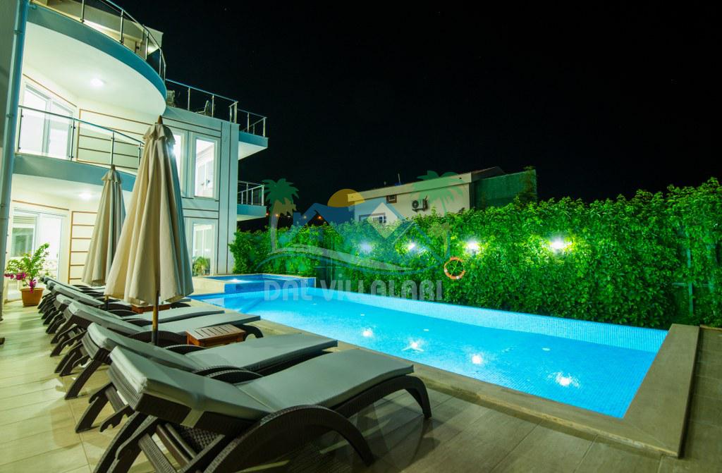 Villamızın havuz alanı tamamen korunaklıdır ve mahremiyete önem veren muhafazakâr ailelerin gönül rahatlığıyla tatil yapabilmesi için uygundur. Yeşil bahçesi ve dış alan düzeni, çocuklu aileler için keyifli vakit geçirme imkânı sağlar.