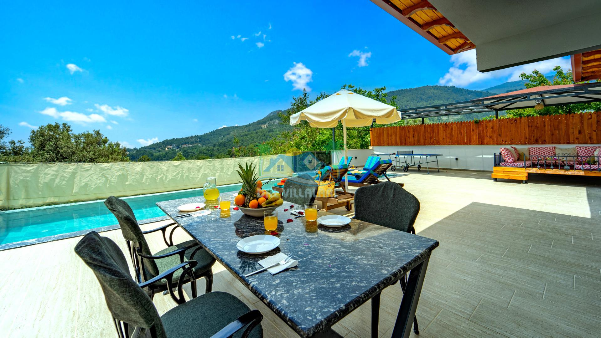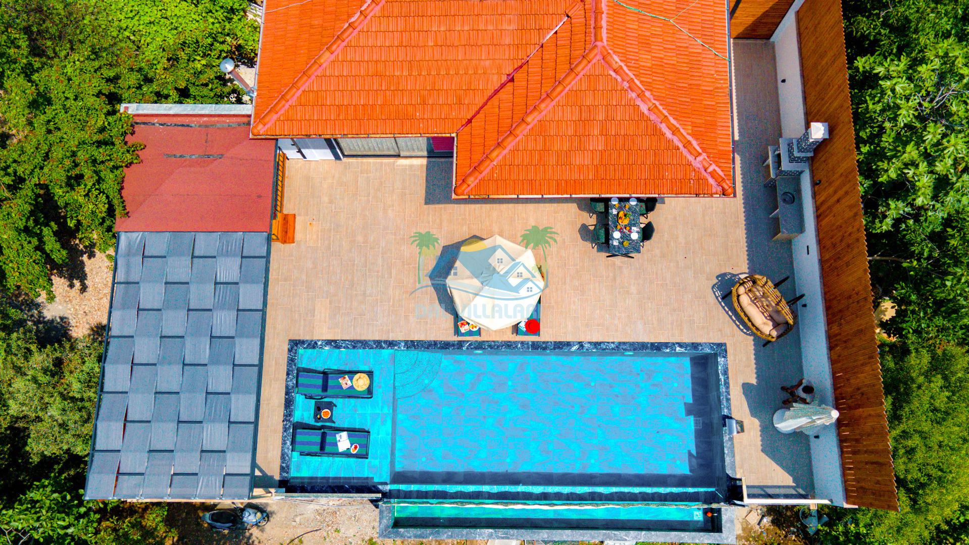 Bu özel villa, misafirlerimizin doğayla baş başa kalabilme isteklerini karşılamak için ideal bir konumda yer almaktadır. Villanın etrafını saran yeşillikler, misafirlerimize huzurlu bir ortam sunarak stres ve yoğunluğunuzdan uzaklaşmanızı sağlar. Sabahları kuş sesleriyle uyanmak, serin bir havada kahvaltınızı bahçede yapmak ve gün boyunca güneşlenirken temiz havanın tadını çıkarmak için mükemmel bir fırsat sunmaktadır.