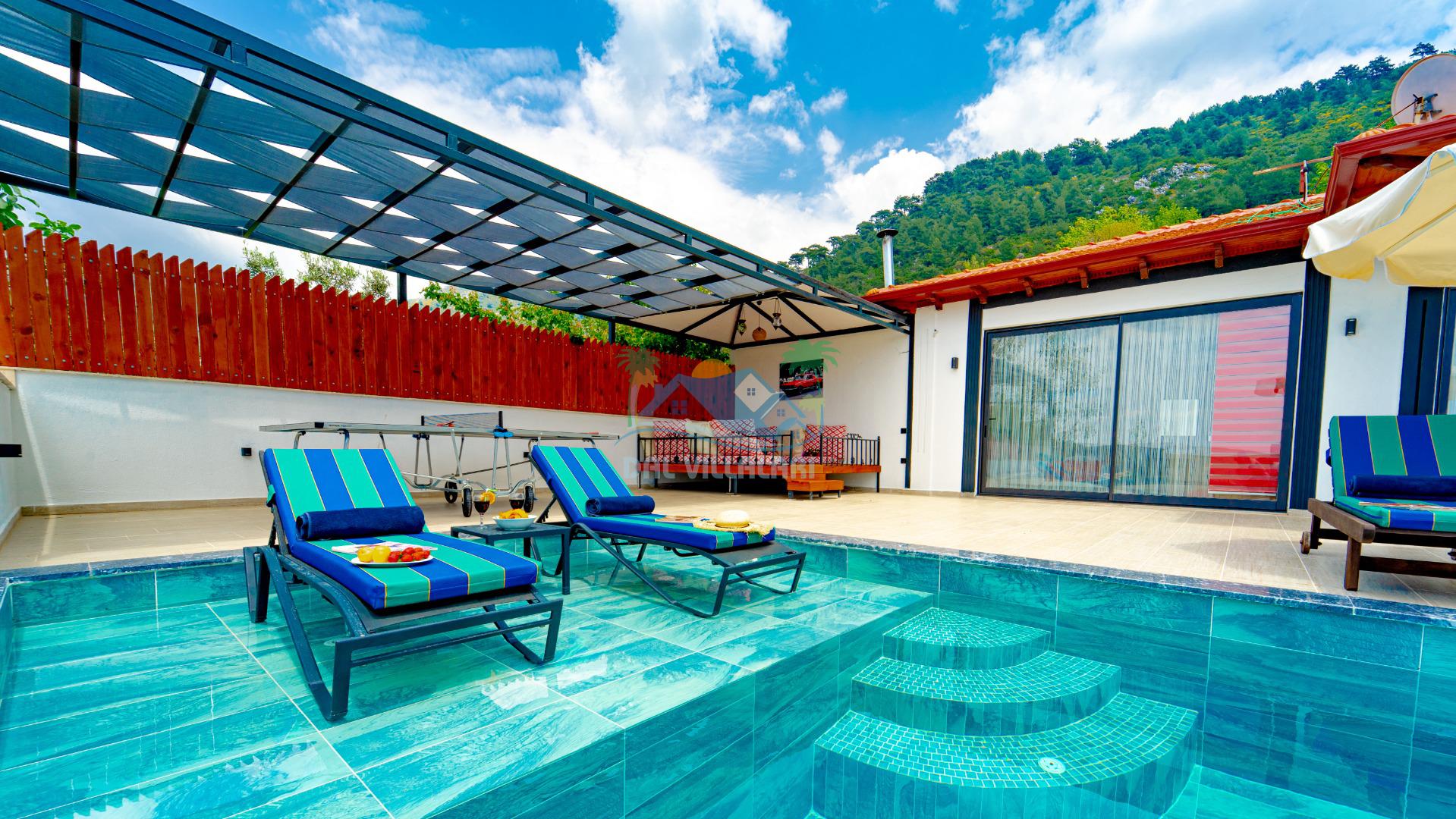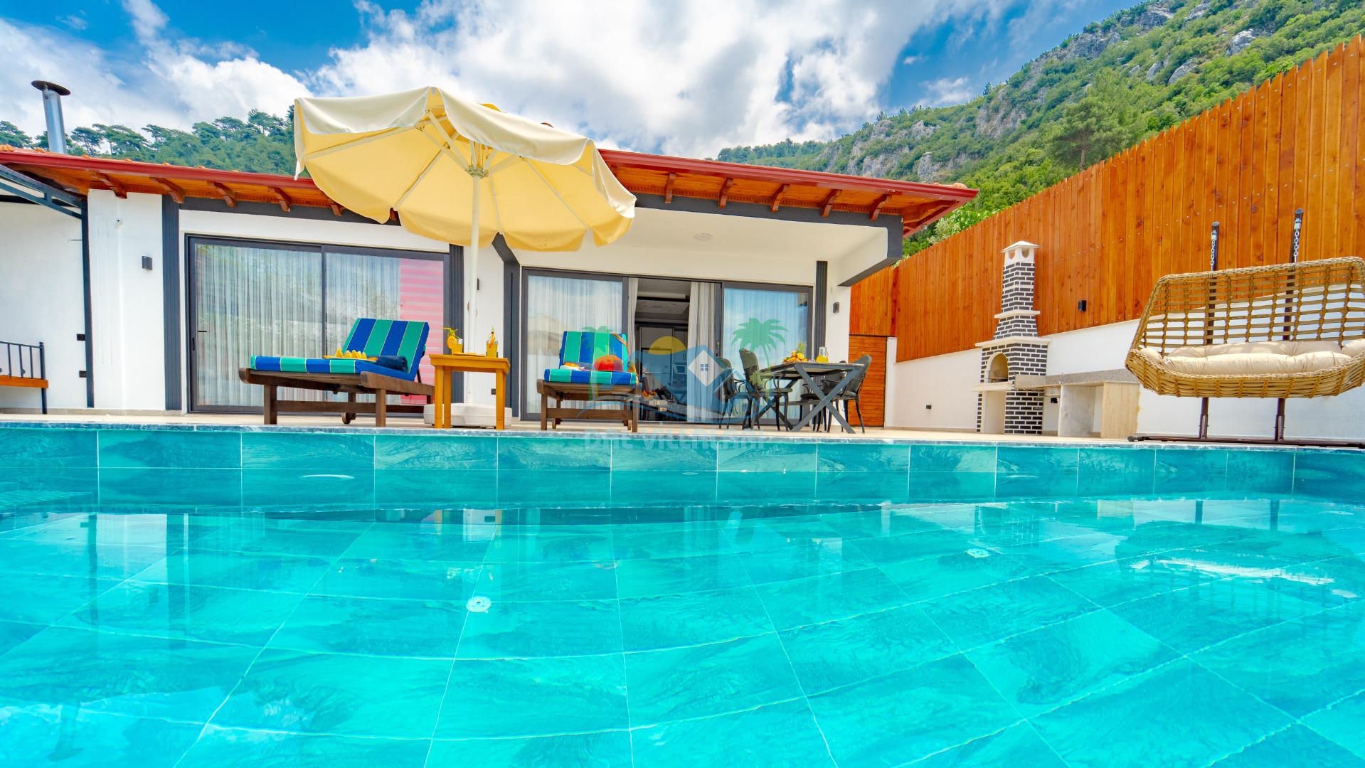 Kalkan İslamlar mevkiinde bulunan villamız, doğayla iç içe, huzur dolu bir tatil için mükemmel bir seçenektir. İki yatak odasıyla dört kişilik konaklama kapasitesine sahip olan bu villa, muhafazakar aileler için ideal bir seçimdir. Villamızın bahçesi korunaklı ve özel olup, sizlere gizlilik ve rahatlık sunmaktadır.