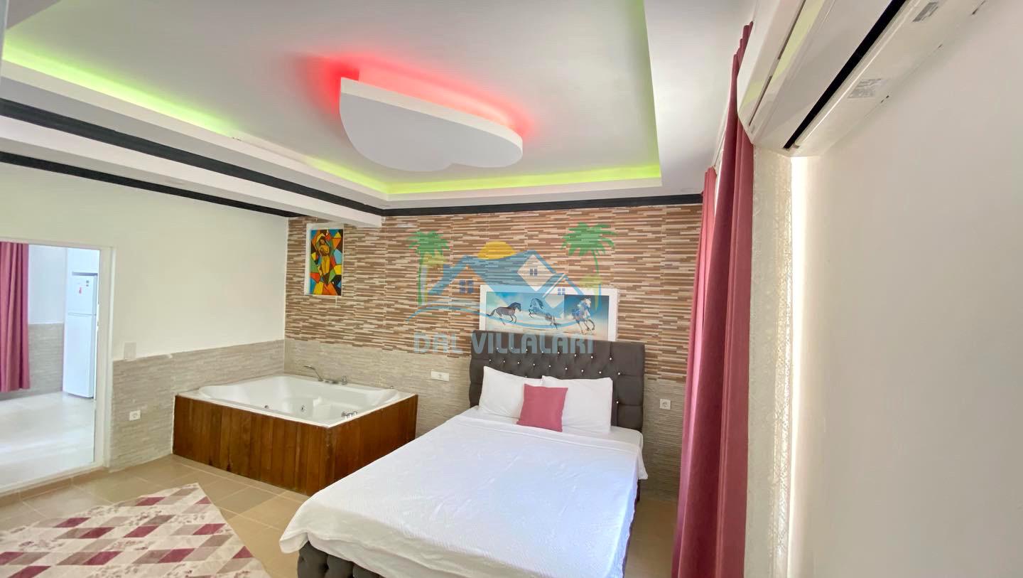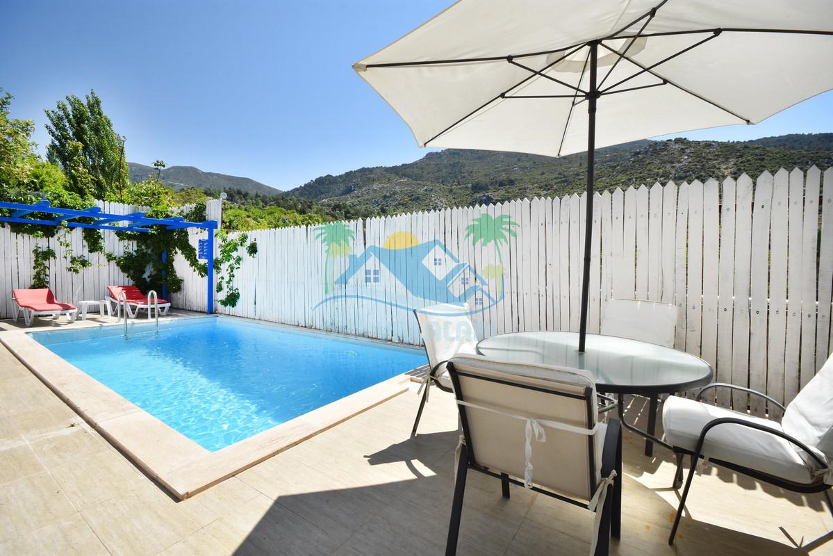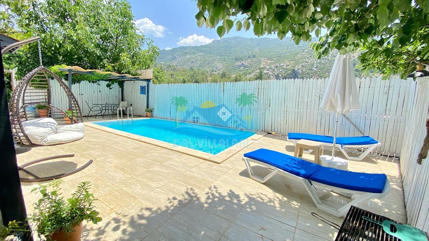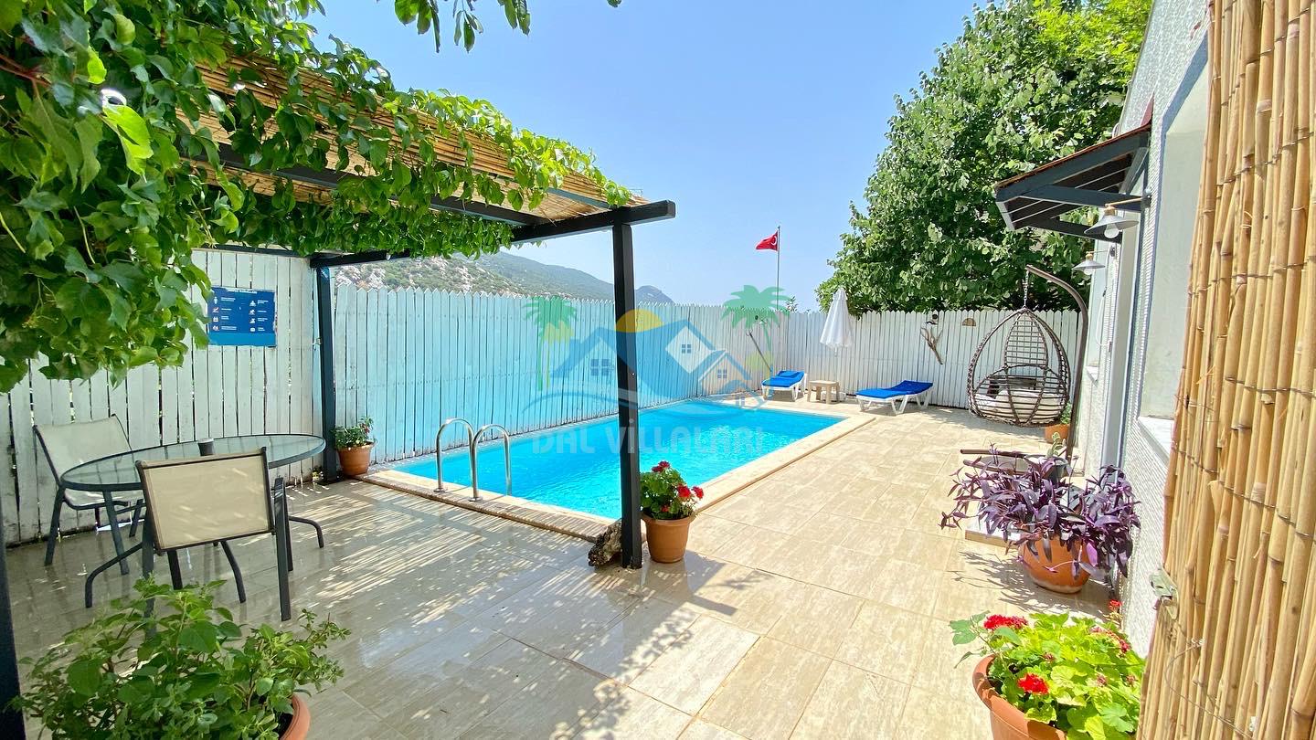 Antalya Kaş Kalkan İslamlar mahallesinde konumlu havuz alanı korunaklı Villa pane 1, tek yatak odalı jakuzili ekonomik balayı villalarımızdan birisidir.