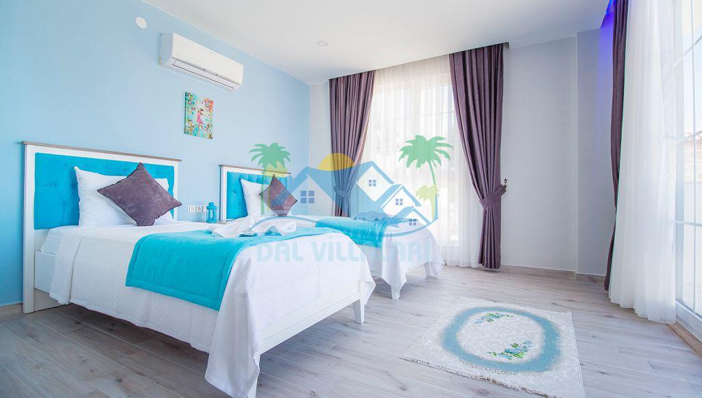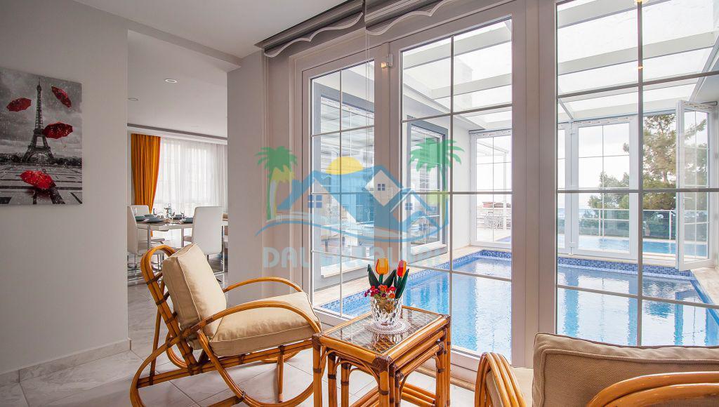 3 suit yatak odalı, 6 kişilik villamızda kapalı ve ısıtmalı yüzme havuzu ve spor salonu da bulunmakta olup özellikle balayı çiftleri ve muhafazakar aileler olmak üzere kış tatili ve balayı tatiline de uygun bir tatil villlasıdır.