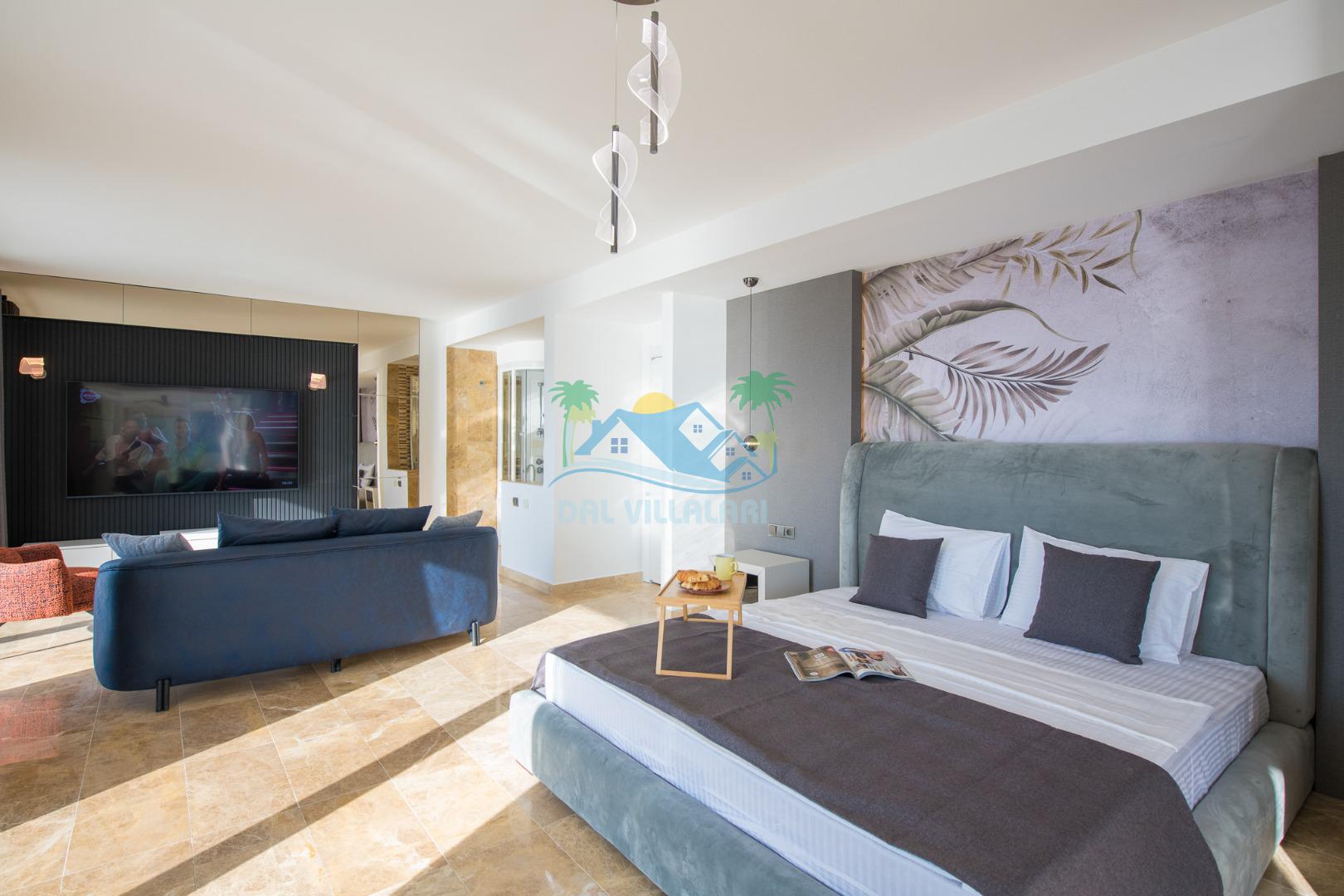 Bodrum'un sıradışı güzelliklerine tanıklık etmeye hazır olun. Size hayalini kurduğunuz yaşam tarzını sunacak eşsiz bir villadır. Deniz manzaralı, bahçe jakuzili ve geniş yeşil alanlı bu 6+1 villa, Bodrum'un en gözde bölgesinde sizleri ağırlamak için sabırsızlanıyor. Modern mimari ve özenle tasarlanmış detaylarla bezenen bu villamız, sadece bir konut değil, aynı zamanda hayatınızı şekillendirecek bir yaşam alanı sunuyor. Zamanın durduğu gibi hissedeceğiniz, huzur ve konforun doruklarda olduğu bu ev, tüm beklentilerinizi aşacak. Muhteşem deniz manzarasının keyfini, villanın geniş teraslarından ve açık alanlarında doyasıya çıkarabilirsiniz. Günün her saatinde doğanın güzelliklerini keşfetmek, Akdeniz'in serin sularına dalış yapmak ve güneşin tadını çıkarmak için bahçe alanınızda özel bir jakuzi sizi bekliyor. Kendinizi yıldızların altında bırakarak, denizin huzur veren sesini dinlerken, hayatın en güzel anlarına tanıklık edeceksiniz.Villamızın iç tasarımı, ferah ve şık bir atmosfer sunmak üzere özenle düşünülmüştür. Geniş cam pencereler sayesinde doğal ışık, iç mekanları aydınlatırken, modern mobilyalar ve lüks dokunuşlar, evinizin sıcak bir yuvaya dönüşmesini sağlamıştır. Her detayın en ince ayrıntısına kadar düşünüldüğü bu villa, sizin ve sevdiklerinizin ihtiyaçlarına tam anlamıyla cevap veriyor. Yeşil alanlı bahçemiz, çevreyle bütünleşmiş bir yaşam sunmakta, Burada, doğanın güzelliklerini doyasıya yaşayacak, çocuklarınızın güven içinde oyunlarını oynayacağı bir ortam bulacaksınız. Aynı zamanda, misafirlerinizi ağırlayabileceğiniz keyifli bir barbekü alanı da mevcuttur. Bodrum'un eşsiz atmosferini, denizin mavisiyle yeşilin uyumunda buluşturan bu özel villamız, hayatınızı yeniden tanımlayacak. Kendi cennet köşenizde, her anın tadını çıkarırken, ailenizle ve sevdiklerinizle geçireceğiniz anıların biriktirebilirsiniz.