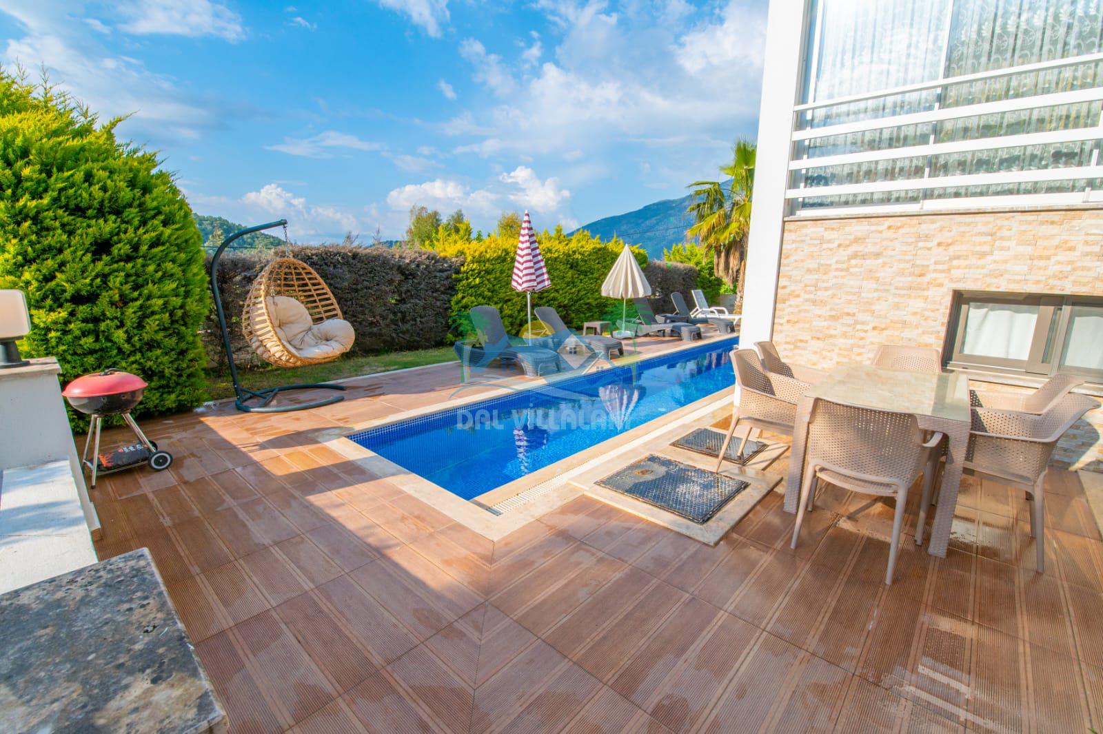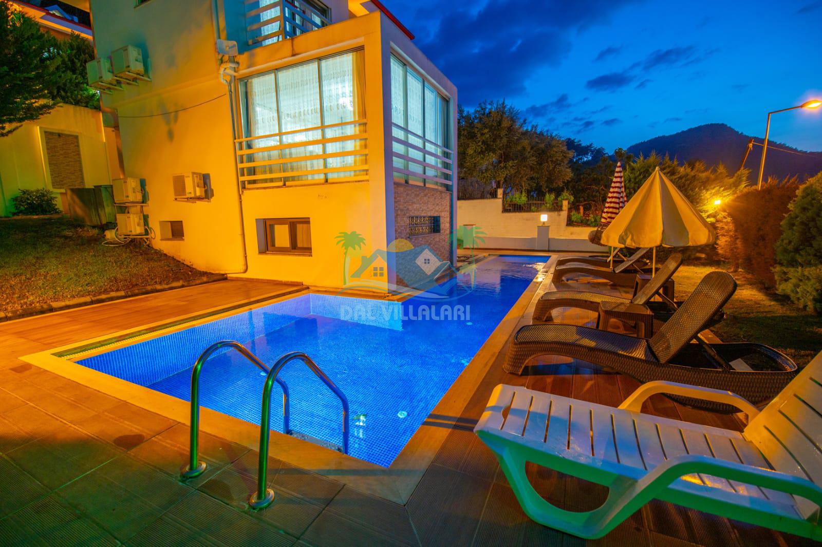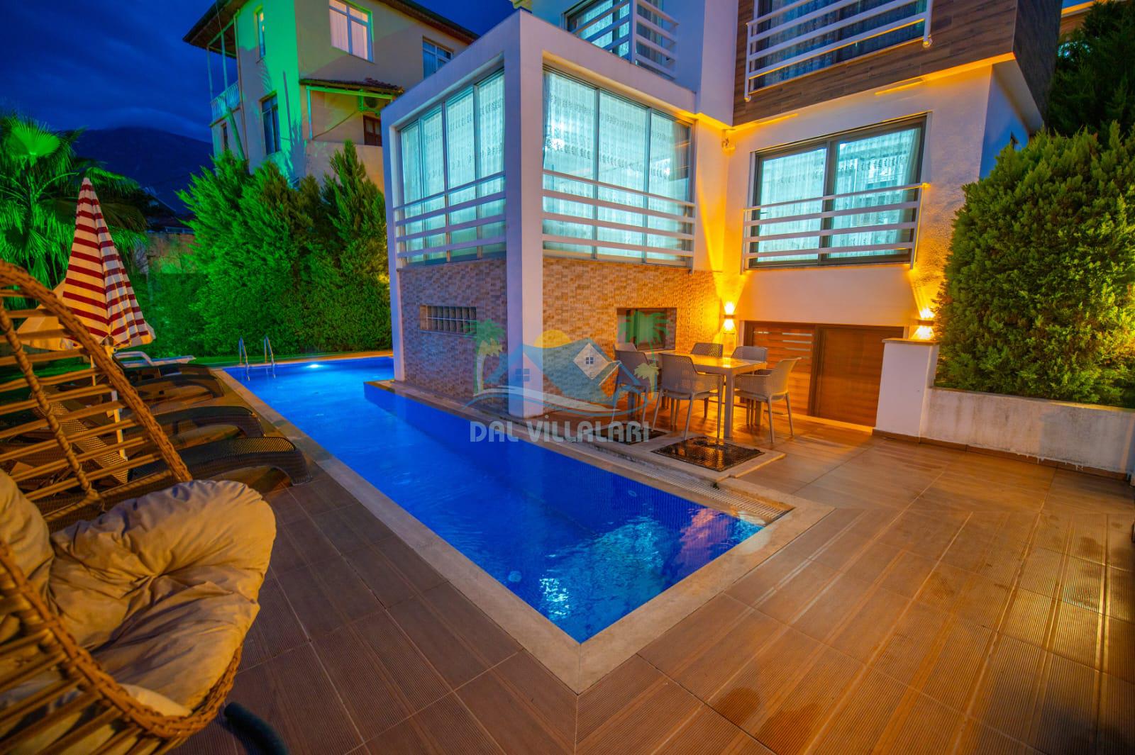 Fethiye / Hisarönü’nde bulunan lüks bir kiralık tatil villasıdır. Bu eşsiz villa, unutulmaz bir tatil deneyimi sunmak için özenle tasarlanmıştır. Korunaklı bir havuza sahip olması, size ve sevdiklerinize özel bir ortam sağlarken, gizlilik ve rahatlık sunar.