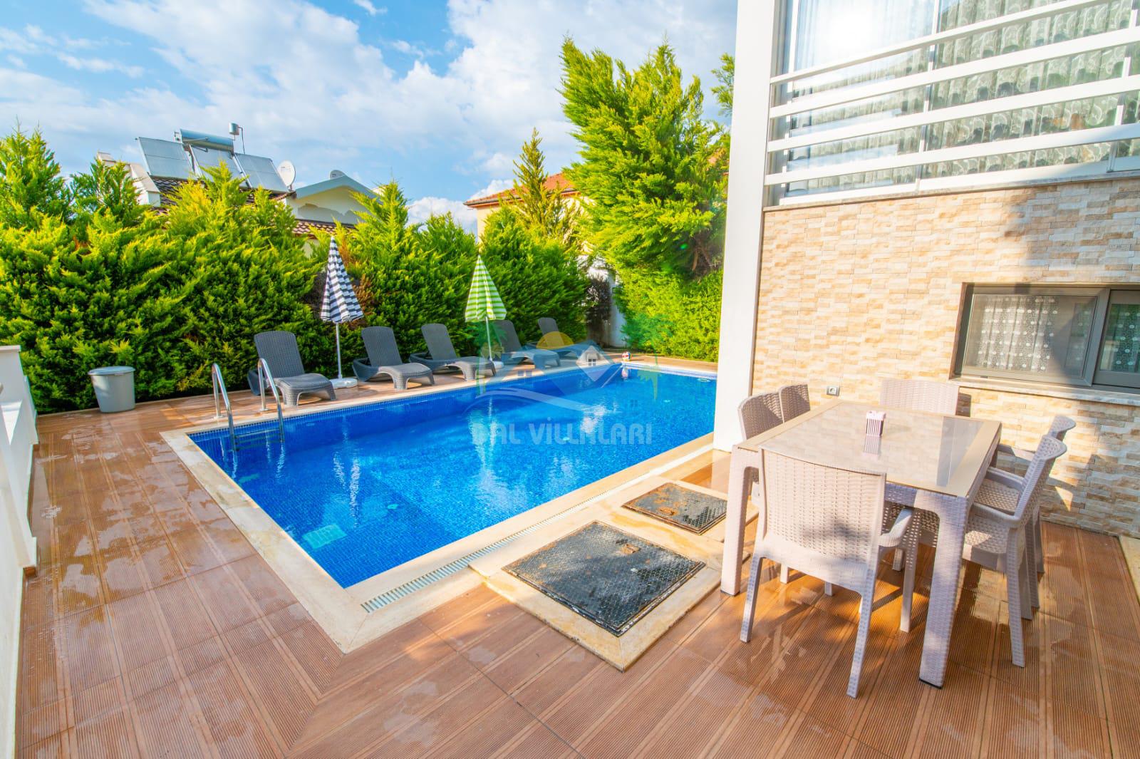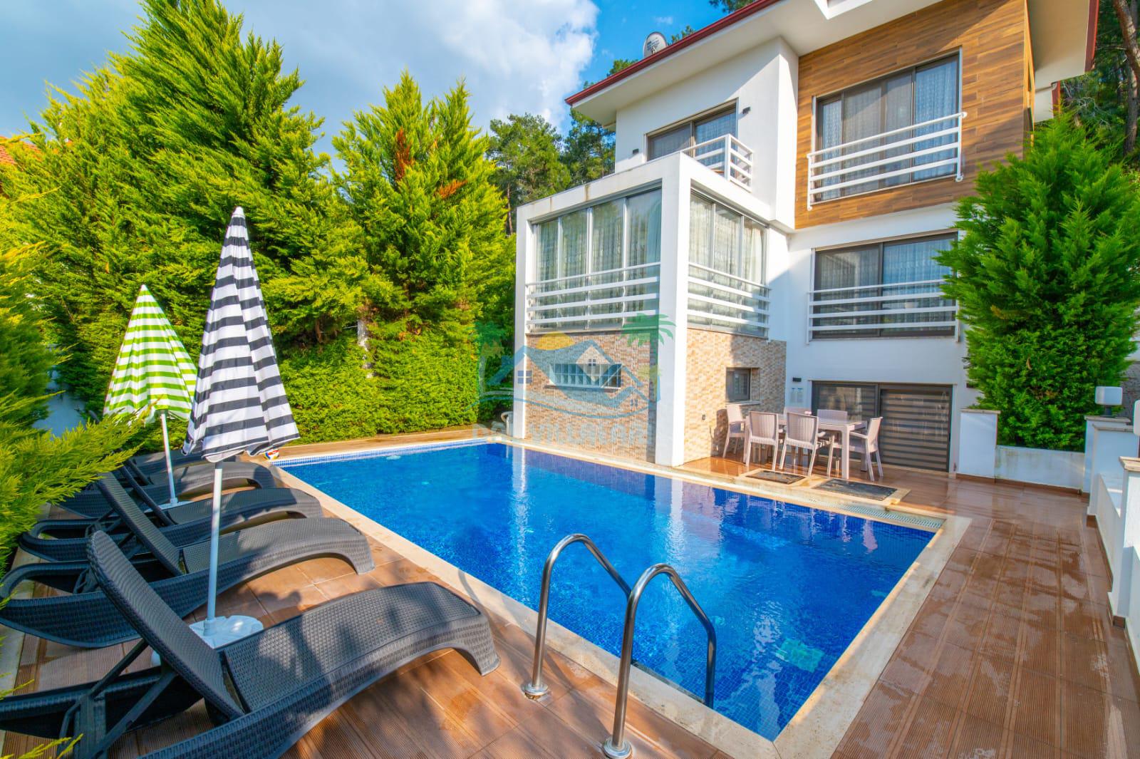 Hisarönü’nde bulunan lüks bir kiralık tatil villasıdır. Bu eşsiz villa, unutulmaz bir tatil deneyimi sunmak için özenle tasarlanmıştır. Korunaklı bir havuza sahip olması, size ve sevdiklerinize özel bir ortam sağlarken, gizlilik ve rahatlık sunar.