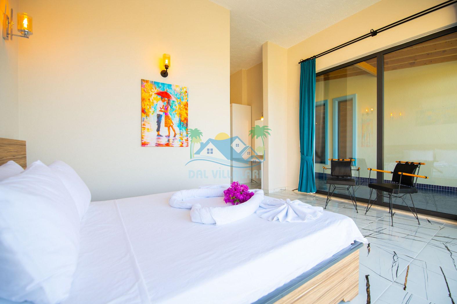 1. Yatak Odası : 1 Adet çift kişilik yatak , komodin , makyaj masası , elbise dolabı , klima ve banyo & tuvalet bulunmaktadır.