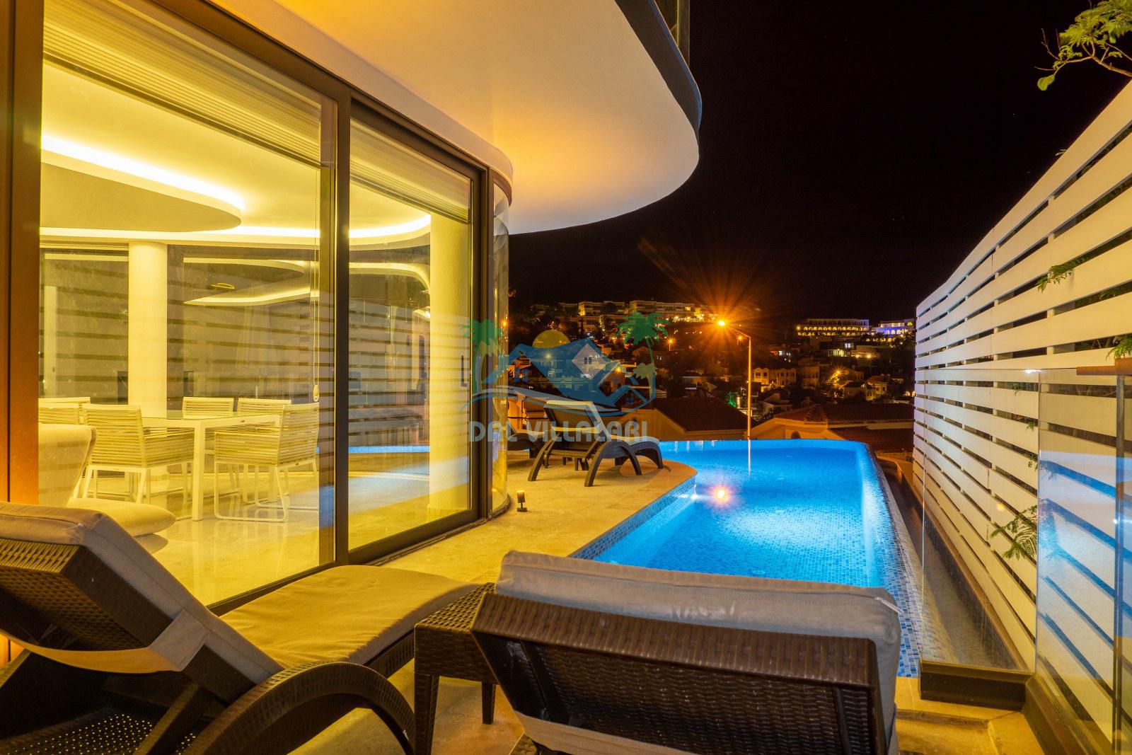 Villa Premium, Kalkan Kalamar mevkiinde yer alan, jakuzili ve 4 yatak odalı lüks bir villadır. 8 kişilik konaklama kapasitesi sunan villa, deniz manzarası, modern tasarımı ve konforlu mimarisiyle dikkat çeker. Kalkan merkeze, restoranlar ve plajlara yürüyüş mesafesinde olan villa, geniş aileler ve arkadaş grupları için ideal bir tatil fırsatı sunar. Ayrıca, bilardo oyun odası ile keyifli zaman geçirebilir, deniz manzaralı havuzda rahatlayabilirsiniz.
