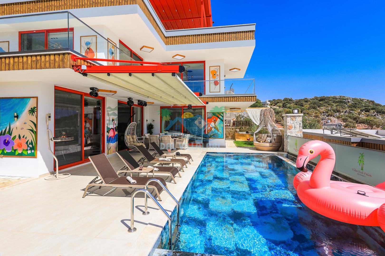 Villa red Palm, Kaş Gökseki Bölgesi'nde yer alan lüks bir tatil evidir ve 3 yatak odası ile 6 kişilik konaklama imkanına sahiptir. Aileler ve balayı çiftleri için ideal olan bu villa, konforlu bir tatil deneyimi sunuyor.