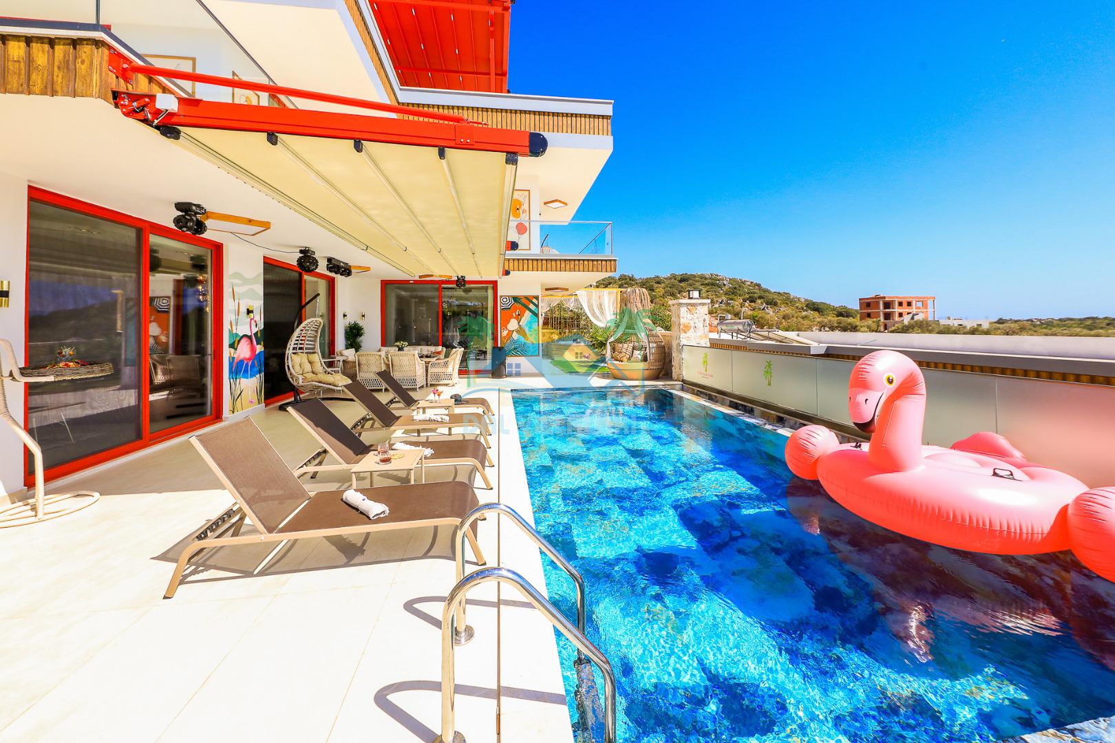 Villa red palm geniş ve ferah odası rahat edebilir, havuz terasında bulunan modern oturma alanları, esnekler, bilardo masası, ses sistemi ve spor aletleri gibi olanaklardan faydalanabilirsiniz. Muhteşem konumu ve manzarası ile Villa red palm, konuklarını muhteşem bir tatil deneyimi için bekliyor.