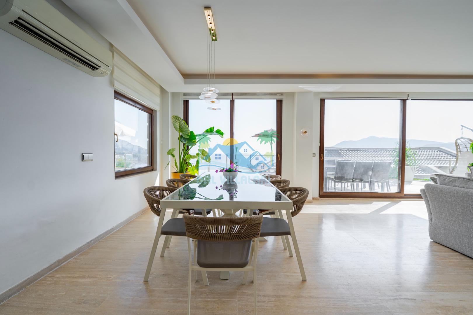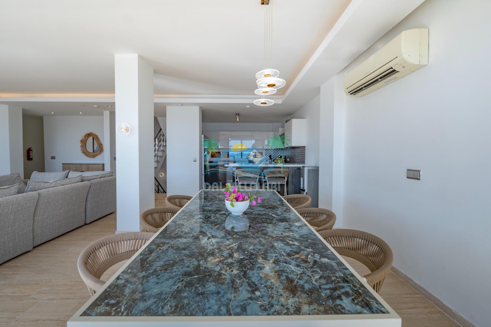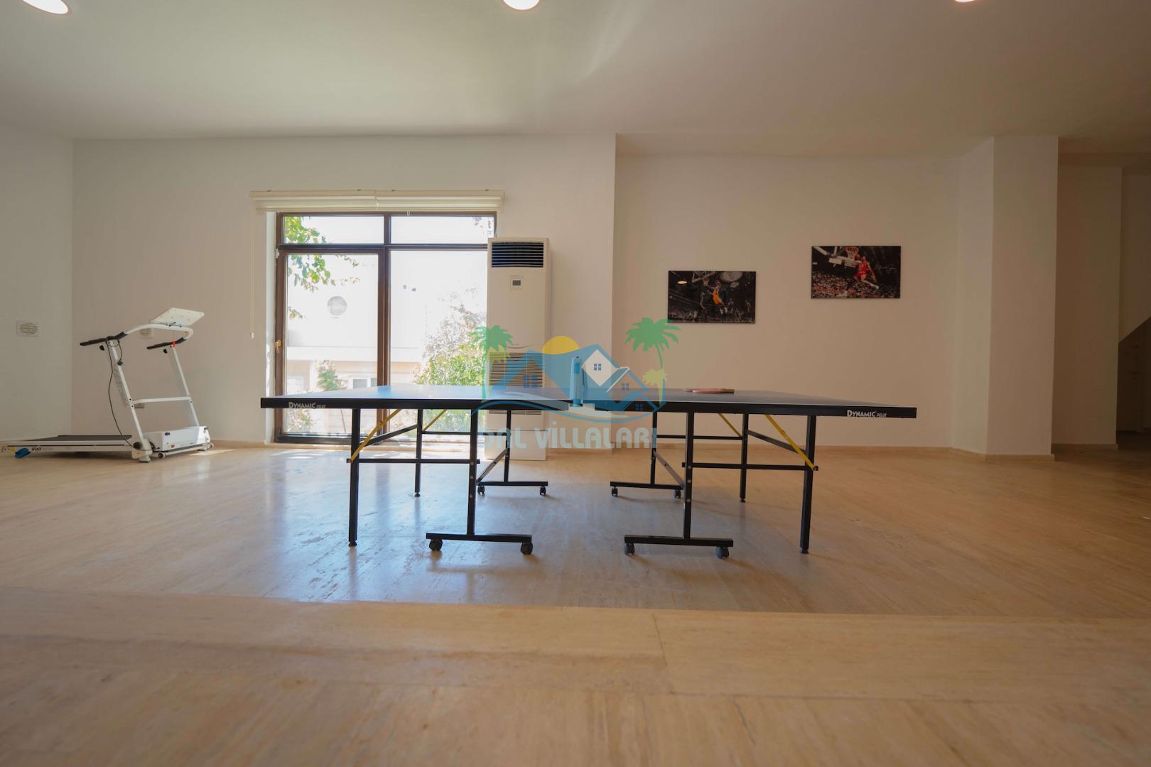 Villamızın giriş katında deniz ve doğa manzaralı Amerikan mutfak ve salon, üst katlarında beş adet suit yatak odası bulunmakta olup, ebeveyn odalarımızdan ikisinde yer alan jakuzide manzaraya karşı keyif yapabileceksiniz. Hayallerinizin ötesinde bir tatil imkanı sunmakta olan villamız, bodrum katta spor salonu (bilardo, masa tenisi, koşu bandı, kondisyon bisikleti) ile bütün bir yılın yorgunluğunu üzerinizden atmanız için, kusursuz bir şekilde tasarlanmıştır.