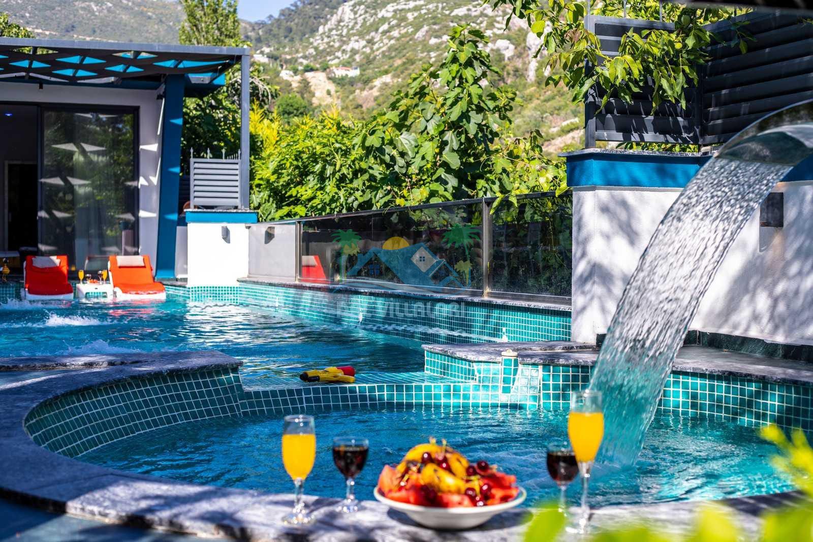 Villa Riyo; Kalkan-İslamlar köyünde yer alan özel havuzlu 4 kişilik tatil villamızdır. Villamızın hem içerisinde hemde dışarıda havuz jakuzisi bulunmaktadır. Havuzun bir ucu sığ havuz olup diğer yuvarlak kısım ise jakuzisidir. Minik bir bahçe alanına sahip villamız siz değerli misafirlerini beklemektedir.