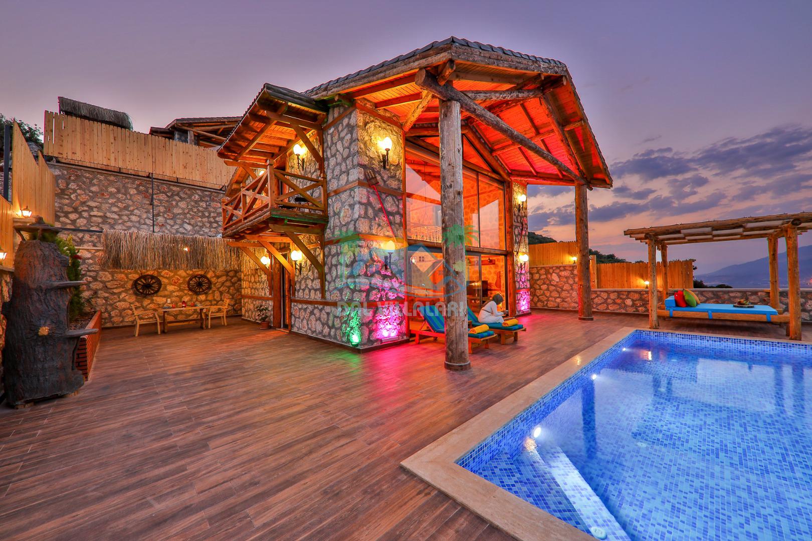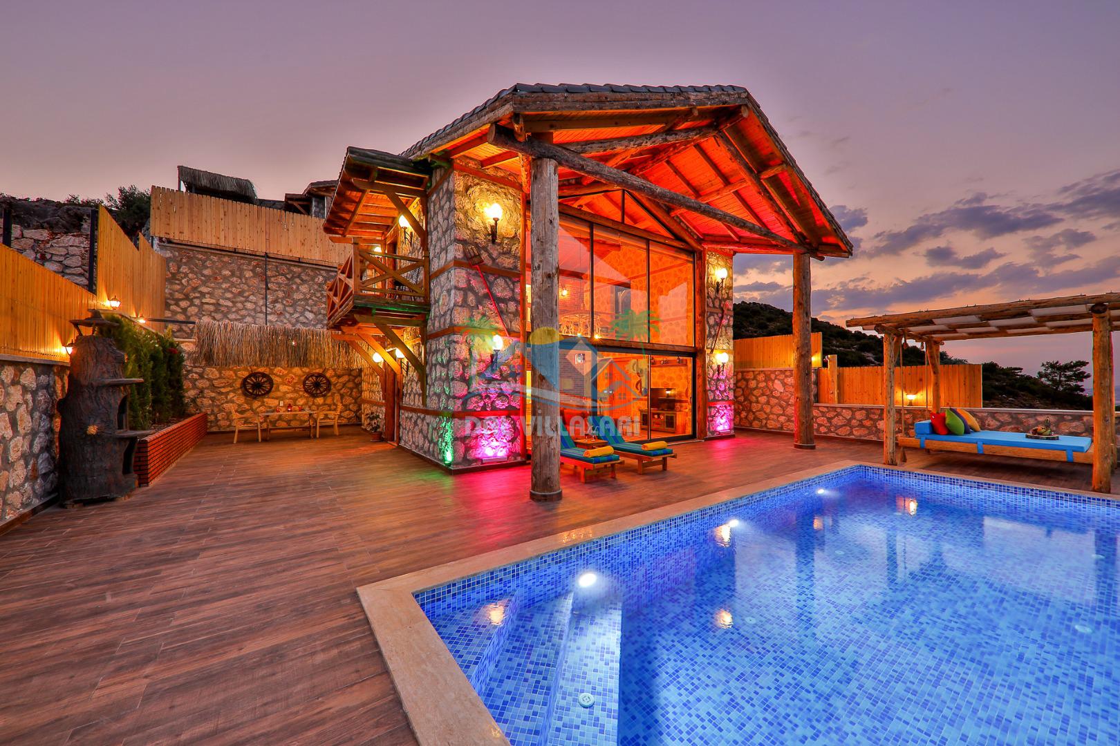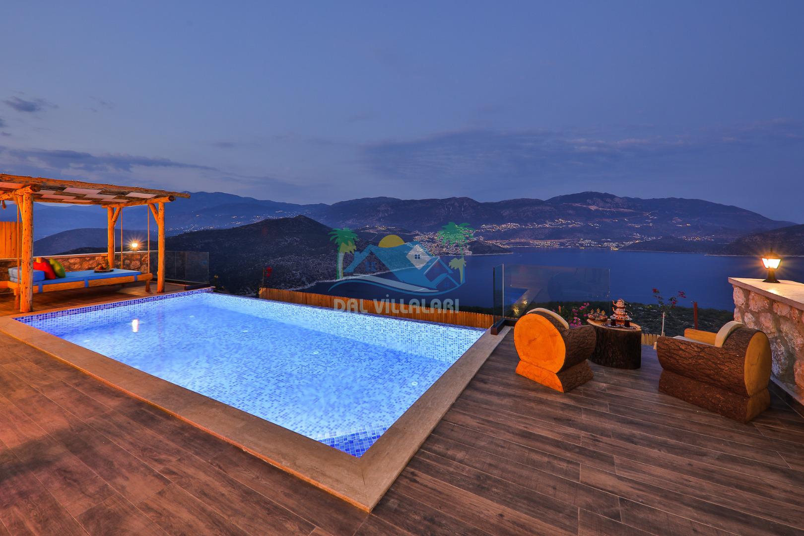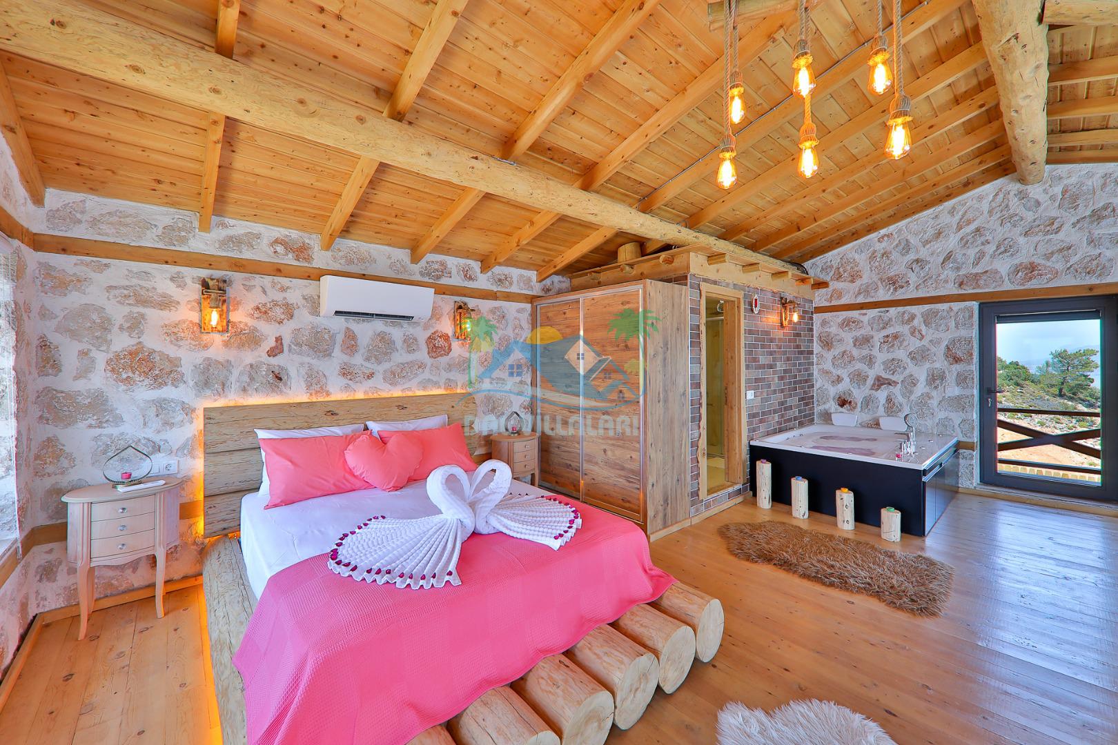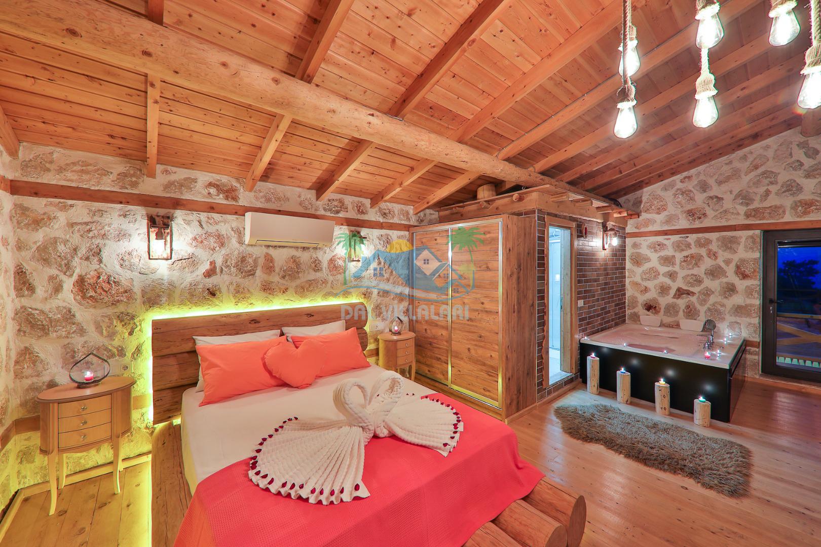 Kalkan’ın benzersiz güzelliklerine tanıklık etmek isteyen çiftler için Villa Roman, Fırnaz Koyu’nda bulunan balayı villalarımızdan biridir. Bu villa, 1 yatak odası ve 2 kişi konaklama kapasitesiyle tasarlanmıştır. Taş ve ahşap materyallerin kullanıldığı mimarisiyle göz kamaştıran bir yapıya sahiptir. Villa Roman’ın en dikkat çekici özelliklerinden biri geniş bir havuz terasına sahip olmasıdır. Bu terasta yer alan sonsuzluk havuzu, size denizin ve doğanın eşsiz güzelliklerini doyasıya yaşama imkanı sunar. Romantik bir atmosferde kendinizi kaybederken, göz alıcı manzaranın tadını çıkaracaksınız. Villa Roman’ın yatak odasında ise size özel bir jakuzi bulunmaktadır. Bu jakuzide romantik anlarınızı daha da özel kılabileceğinizin garantisini veriyoruz. İç mekanı da özenle tasarlanmış olan villa, size konforlu bir konaklama deneyimi sunmak için her detayı düşünmüştür. Villa Roman, kendinizi özel ve ayrıcalıklı hissetmek istediğiniz balayı tatilleriniz için mükemmel bir seçenektir. Huzur dolu bir atmosferde, sevdiklerinizle romantik anlar yaşayabileceğiniz bu villa, sizi hayran bırakan mimarisiyle unutulmaz anılar biriktirmenize olanak tanır.