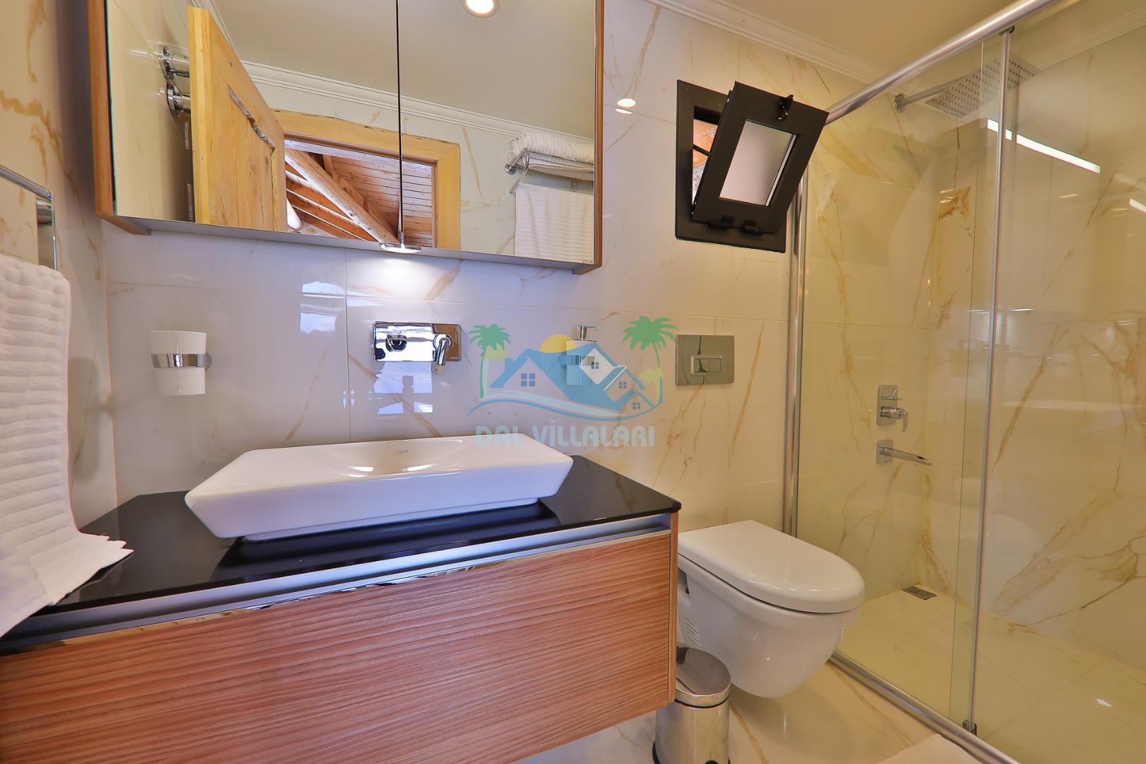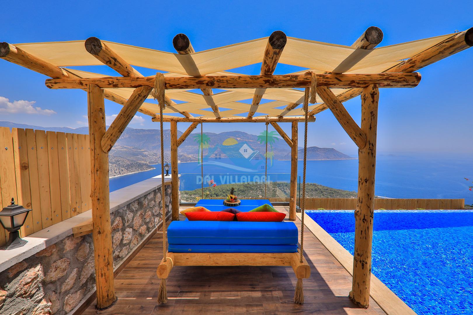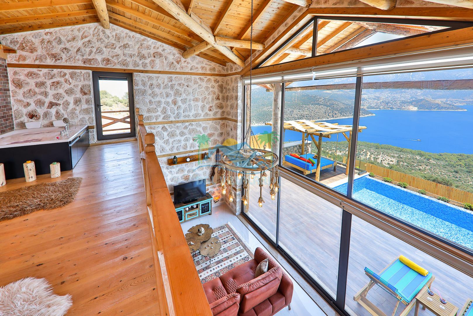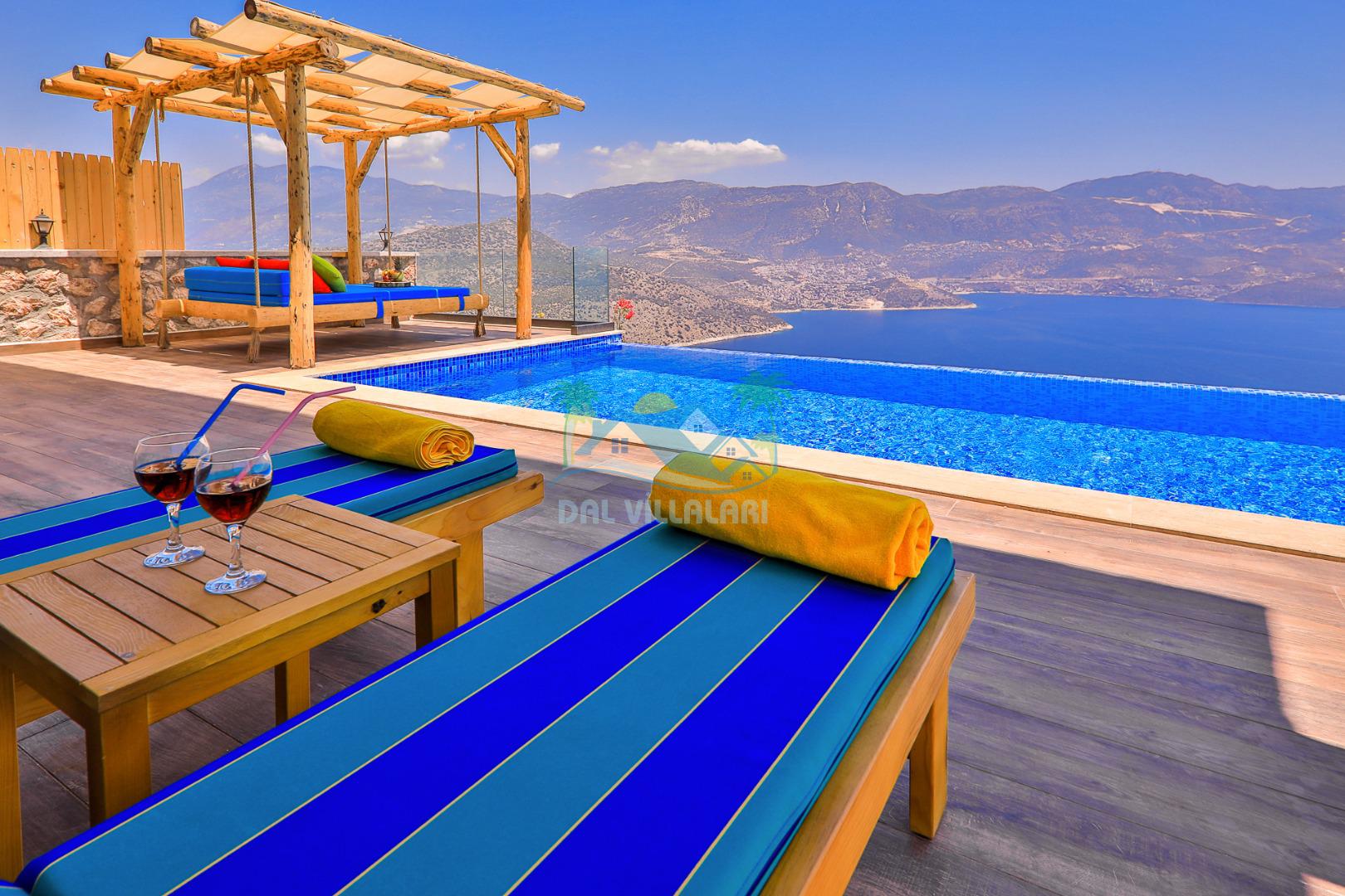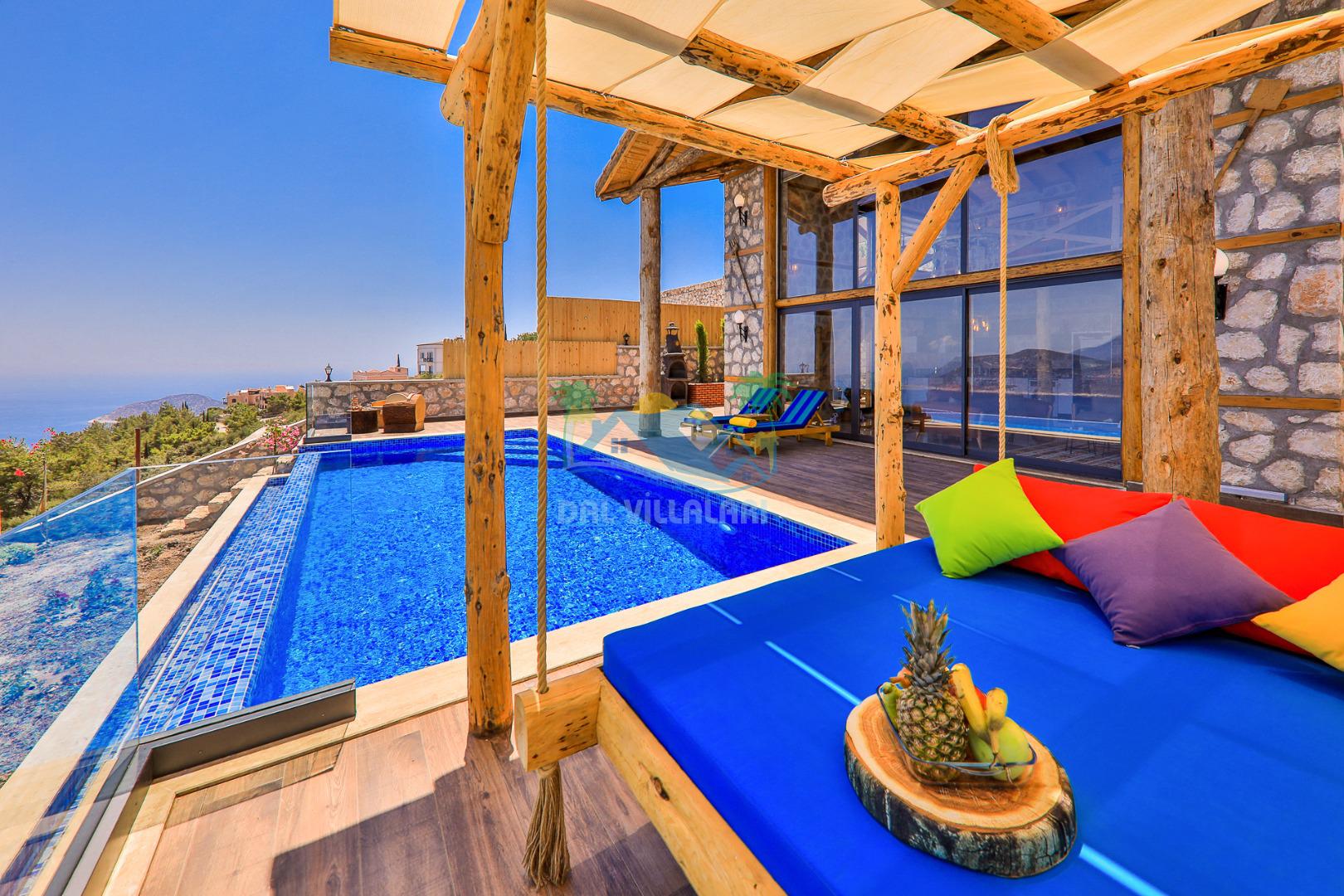 Kalkan’ın benzersiz güzelliklerine tanıklık etmek isteyen çiftler için Villa Roman, Fırnaz Koyu’nda bulunan balayı villalarımızdan biridir. Bu villa, 1 yatak odası ve 2 kişi konaklama kapasitesiyle tasarlanmıştır. Taş ve ahşap materyallerin kullanıldığı mimarisiyle göz kamaştıran bir yapıya sahiptir. Villa Roman’ın en dikkat çekici özelliklerinden biri geniş bir havuz terasına sahip olmasıdır. Bu terasta yer alan sonsuzluk havuzu, size denizin ve doğanın eşsiz güzelliklerini doyasıya yaşama imkanı sunar. Romantik bir atmosferde kendinizi kaybederken, göz alıcı manzaranın tadını çıkaracaksınız. Villa Roman’ın yatak odasında ise size özel bir jakuzi bulunmaktadır. Bu jakuzide romantik anlarınızı daha da özel kılabileceğinizin garantisini veriyoruz. İç mekanı da özenle tasarlanmış olan villa, size konforlu bir konaklama deneyimi sunmak için her detayı düşünmüştür. Villa Roman, kendinizi özel ve ayrıcalıklı hissetmek istediğiniz balayı tatilleriniz için mükemmel bir seçenektir. Huzur dolu bir atmosferde, sevdiklerinizle romantik anlar yaşayabileceğiniz bu villa, sizi hayran bırakan mimarisiyle unutulmaz anılar biriktirmenize olanak tanır.