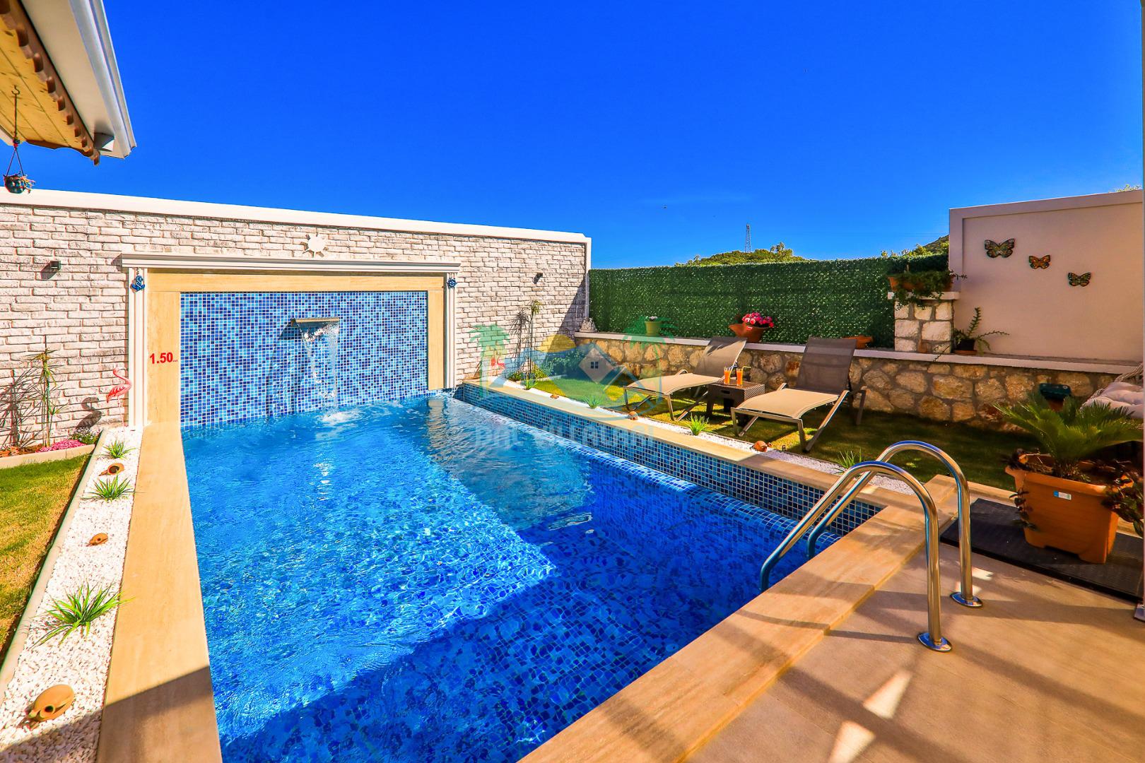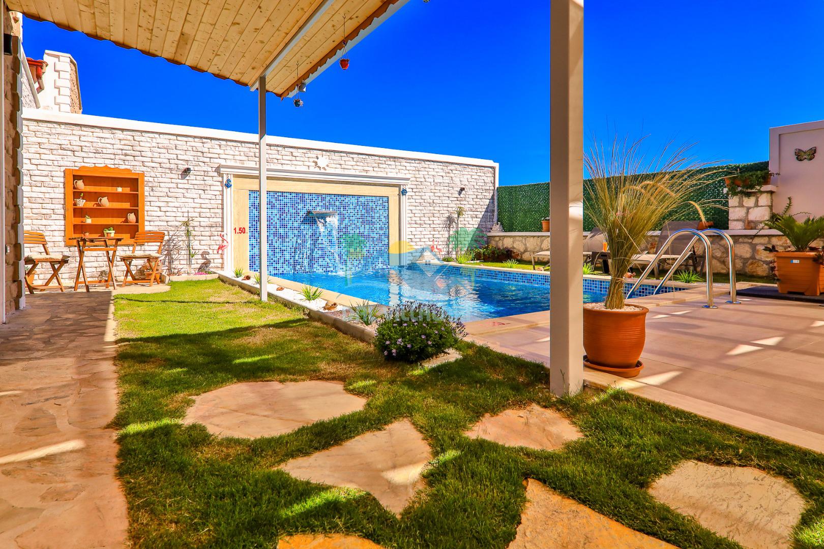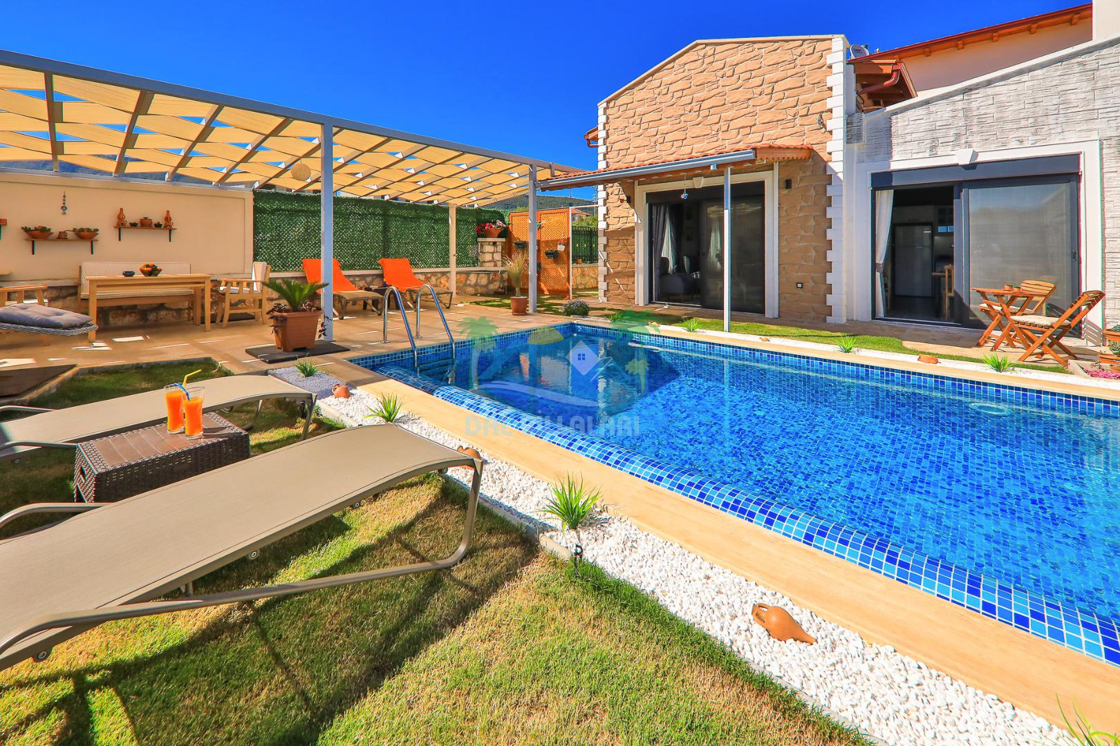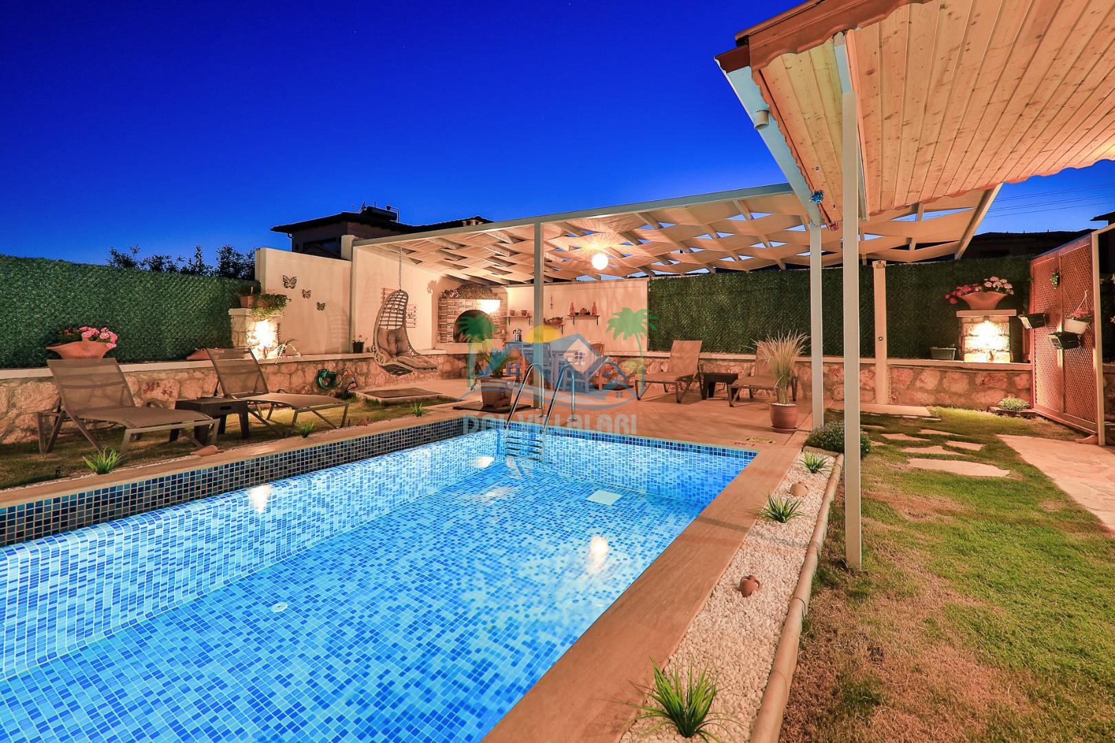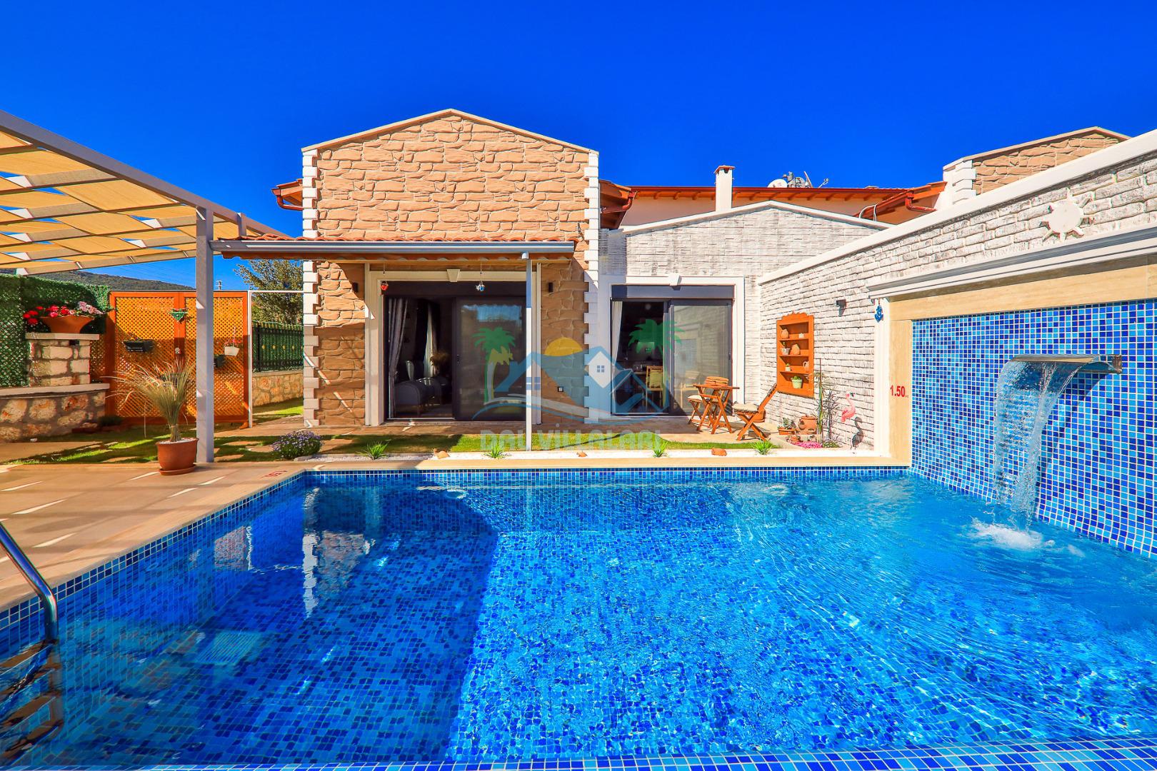 Kaş Çukurbağ bölgesinde bulunan villamız 2 yatak odalı 4 kişilik özel yüzme havuzlu kiralık yeni villamızdır. Villamızın havuzu korunaklı olup dışarıdan gözükmemekte olup balayı çiftlerimiz ve muhafazakar aileler içinde uygun bir villa seçeneğimizdir. Kaş merkeze 10 dk. mesafede olup kolay bir şekilde Kaş'taki plajlarımıza ve merkeze ulaşım sağlayabilirsiniz. Villamız doğa içerisin de olup sessiz ve sakın bir konumda bulunmaktadır.