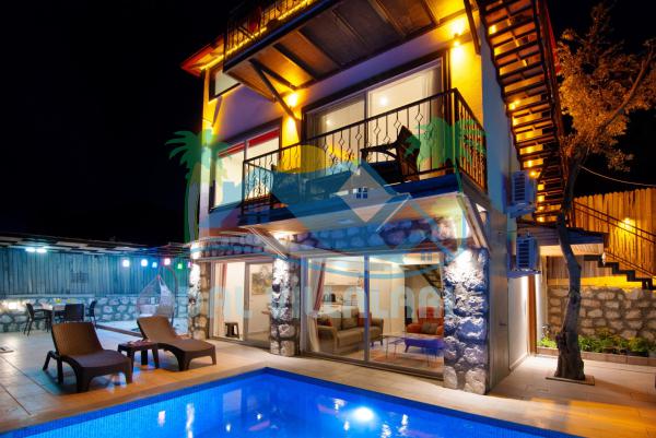 Villa Sanem, Kalkan Üzümlü Lapaz bölgesinde konumlanan havuzu tam korunaklı villamızdır. Yüksek konumda yer alan villamız, 2019 yılında tamamlanmıştır ve ilk kez misafirlerine kapılarını açmıştır. Konforlu bir iç tasarıma sahip villamız, güzel bir doğa manzarasına sahiptir.