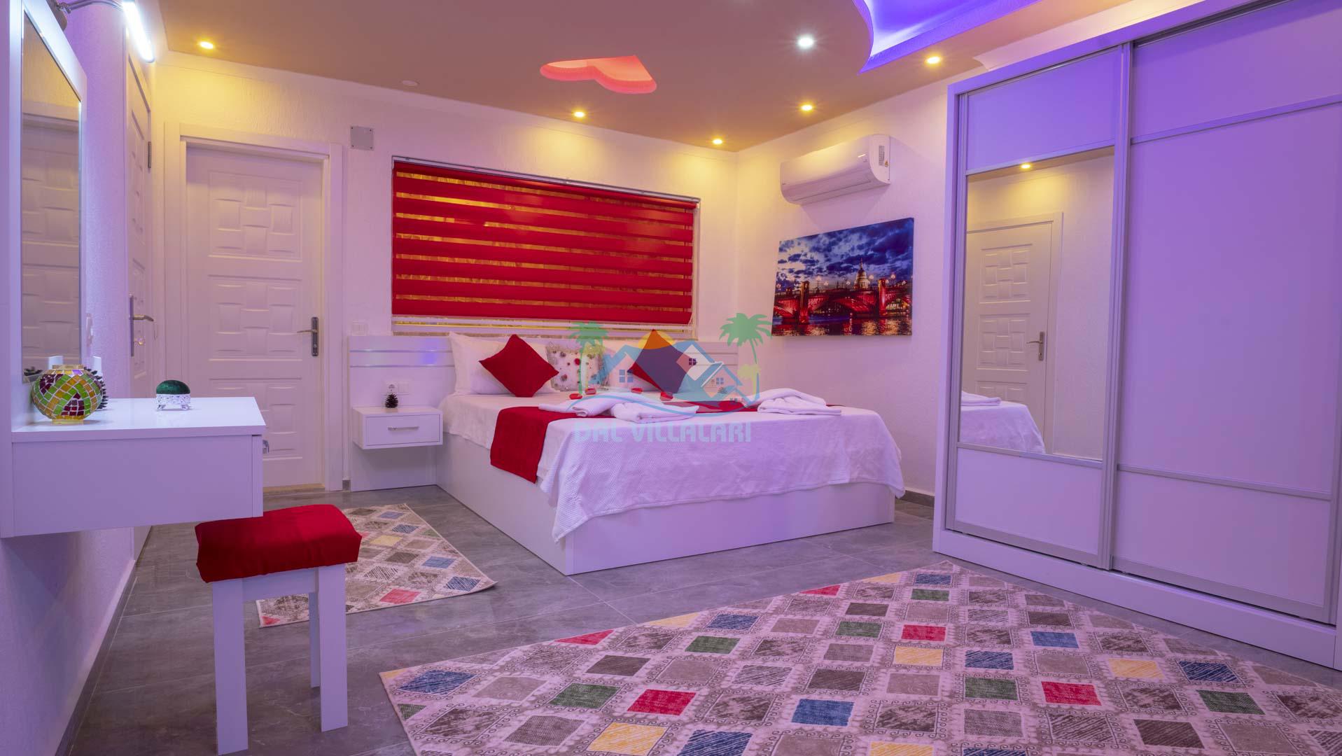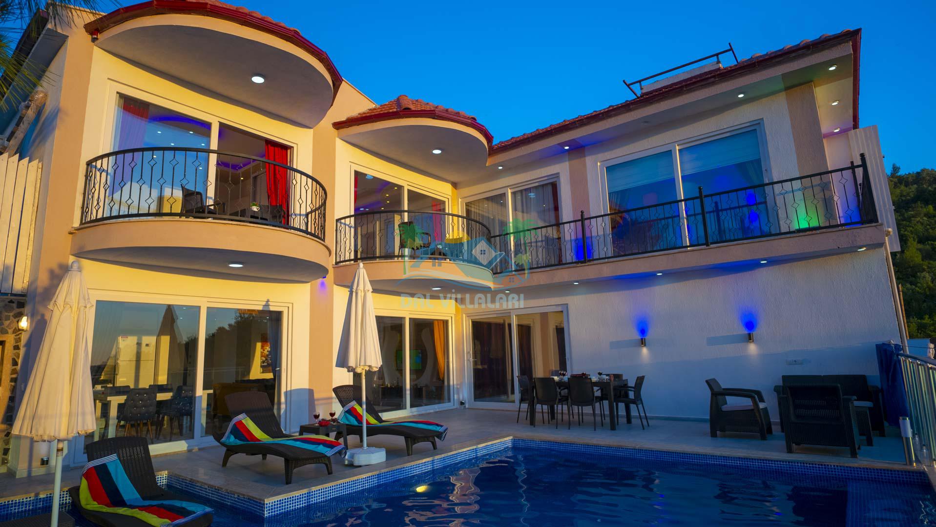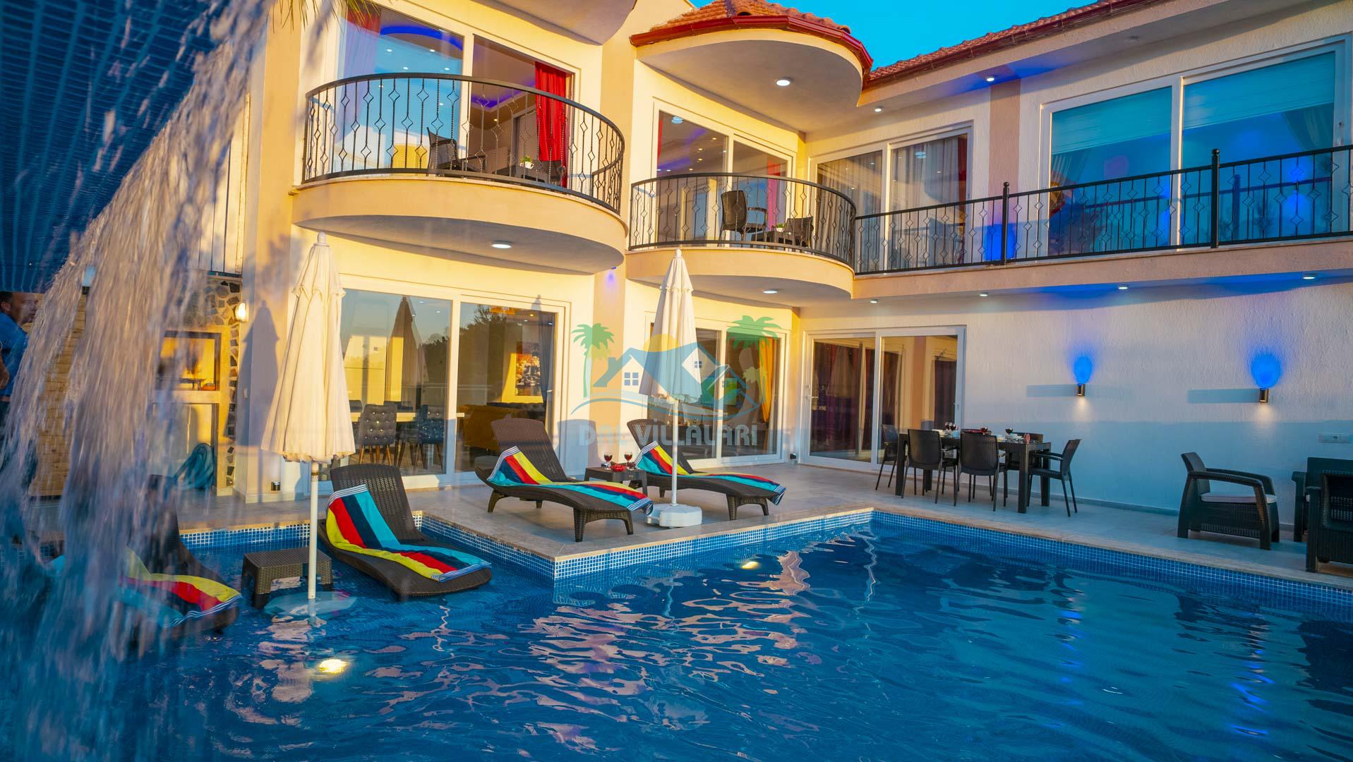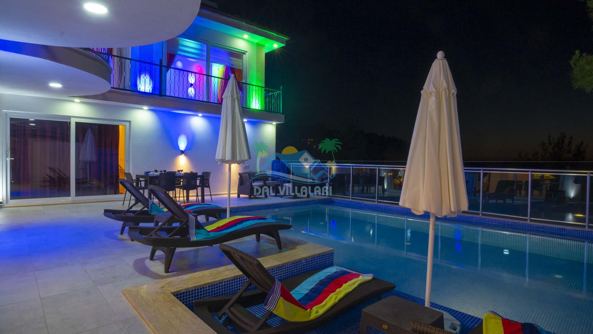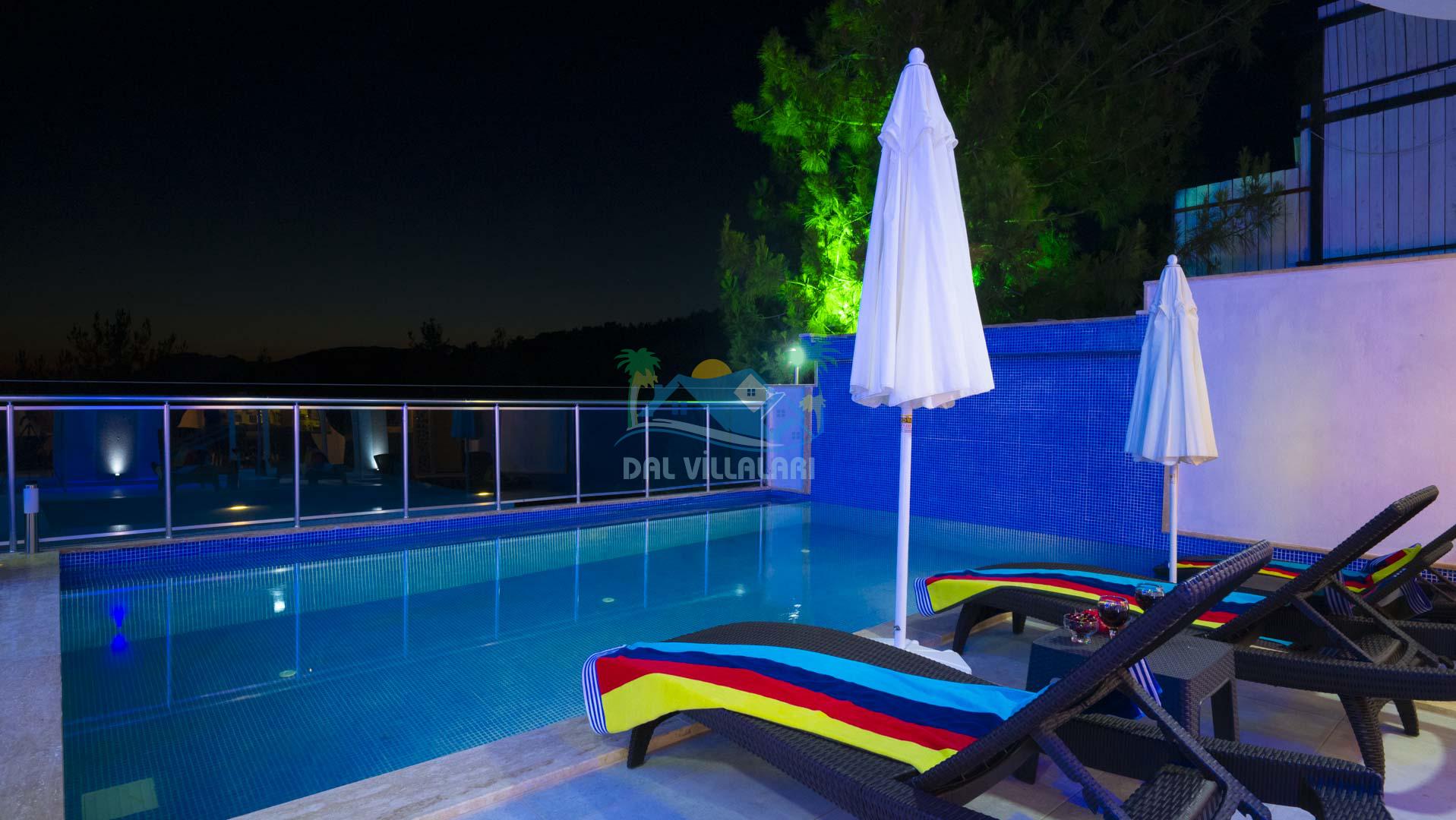 Kalkan Akbel mevkisinde bulunan kiralık balayı villası, 2 yatak odası ve 4 kişilik konaklama kapasitesi ile çocuklu ailelere ve balayı çiftlerine hitap etmektedir. Muhafazakar villalar ve balayı villaları kategorisinde yer alan villamızda soğuk kış aylarında havuz keyfini sürdürebilmeniz için kapalı ısıtmalı bir havuz yer almakta olup ekstra sinema salonuyla eğlenceli zamanlar geçirmenize olanak sağlamaktadır. Havuzu korunaklı ve bahçesi dışarıdan görünmeyen Villa Sare uzaktan deniz manzarasına sahiptir. Villamız, konumu itibariyle kalabalık şehir hayatından kaçmak isteyen ailelerimiz için unutulmaz bir tatil imkanı sunmaktadır.