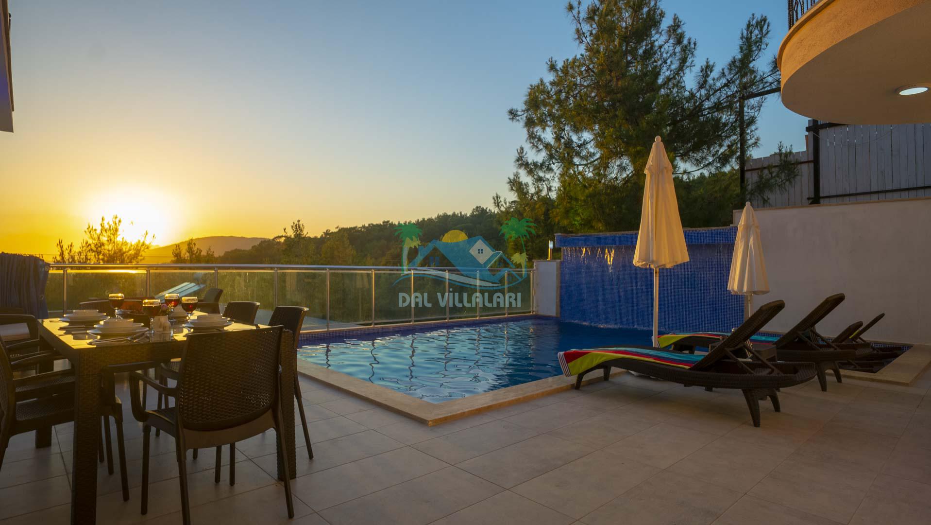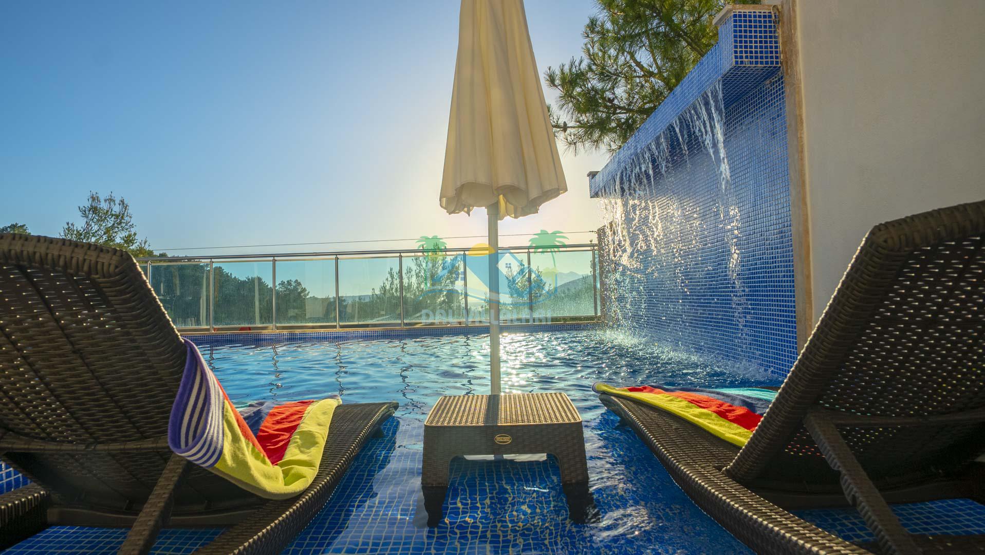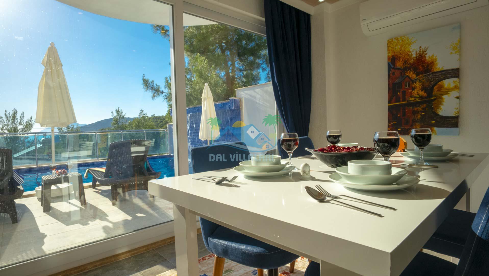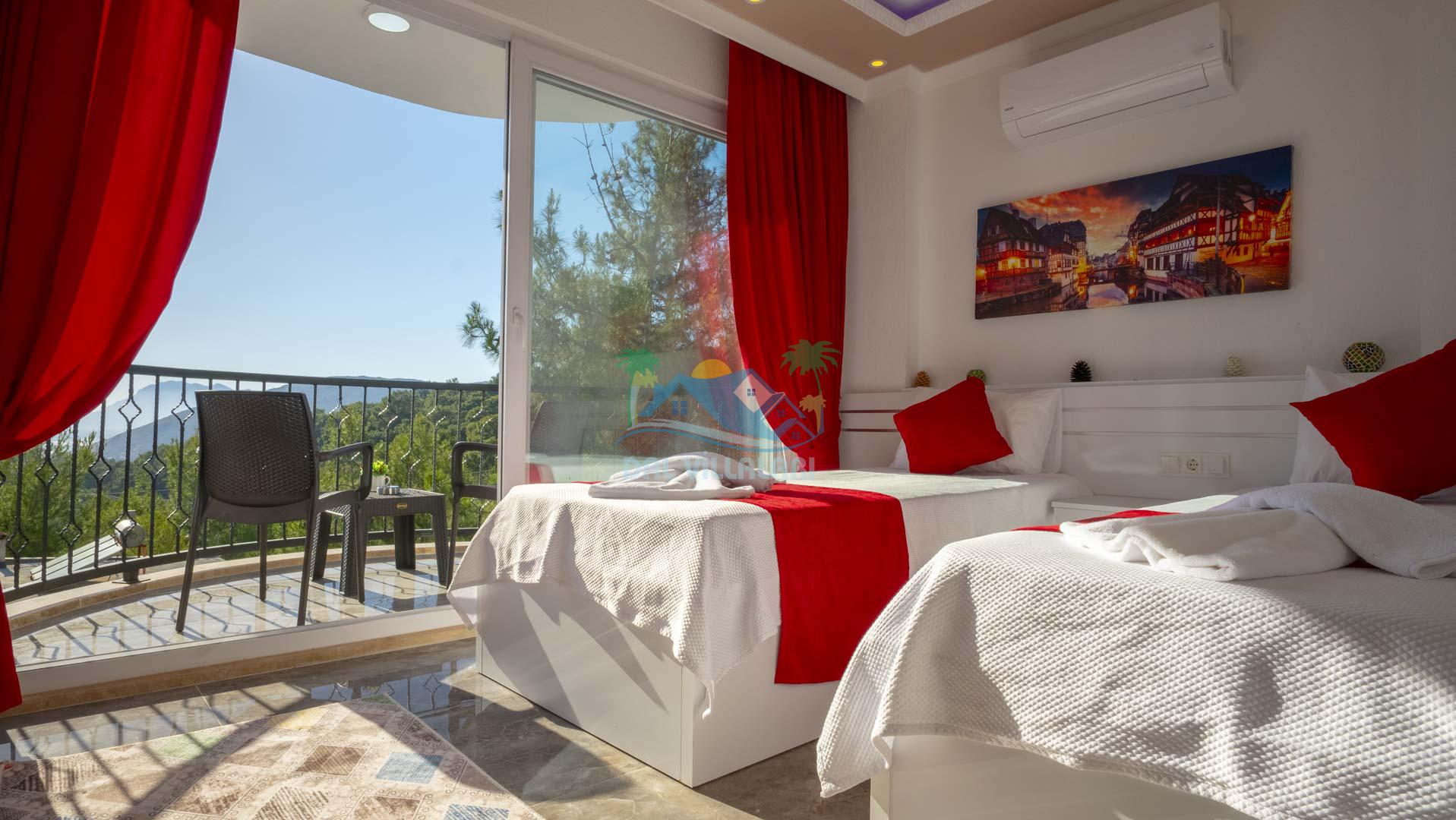 Kalkan Akbel mevkisinde bulunan kiralık balayı villası, 2 yatak odası ve 4 kişilik konaklama kapasitesi ile çocuklu ailelere ve balayı çiftlerine hitap etmektedir. Muhafazakar villalar ve balayı villaları kategorisinde yer alan villamızda soğuk kış aylarında havuz keyfini sürdürebilmeniz için kapalı ısıtmalı bir havuz yer almakta olup ekstra sinema salonuyla eğlenceli zamanlar geçirmenize olanak sağlamaktadır. Havuzu korunaklı ve bahçesi dışarıdan görünmeyen Villa Sare uzaktan deniz manzarasına sahiptir. Villamız, konumu itibariyle kalabalık şehir hayatından kaçmak isteyen ailelerimiz için unutulmaz bir tatil imkanı sunmaktadır.