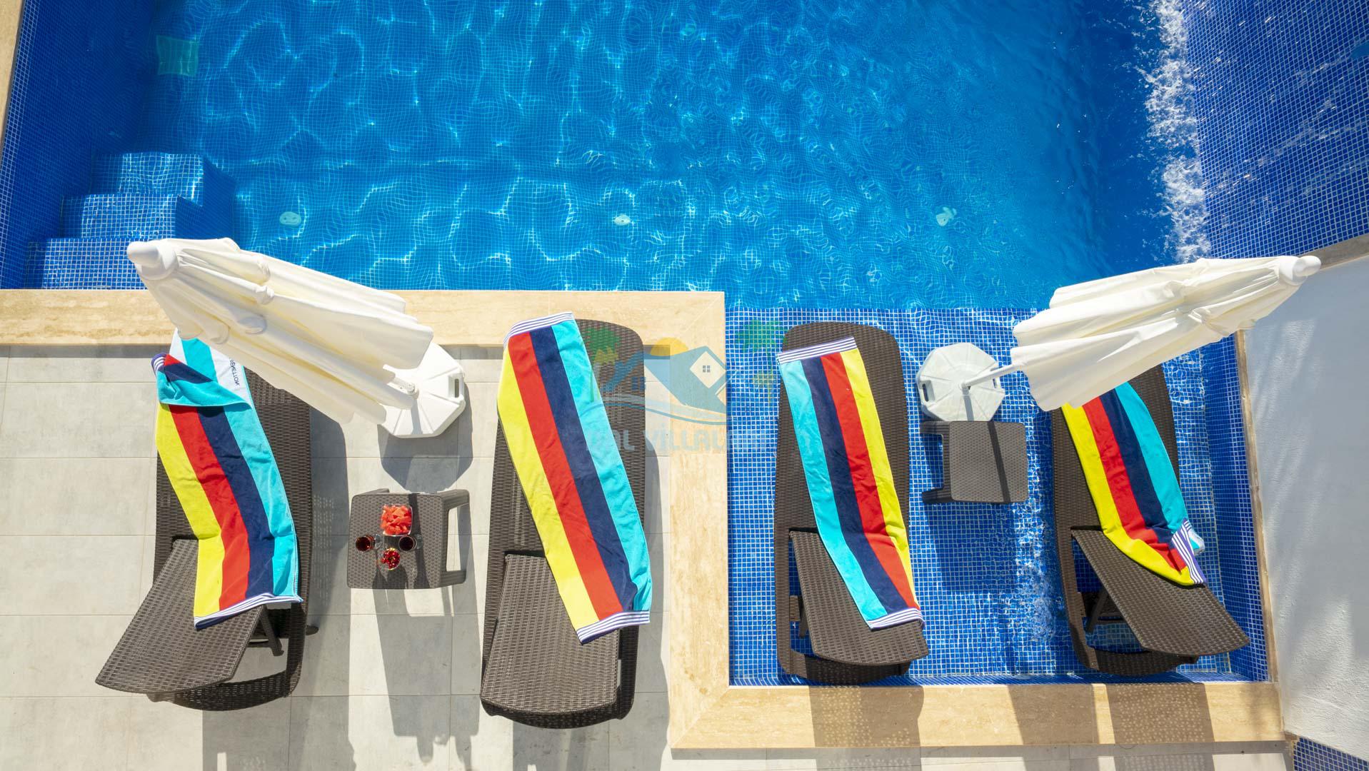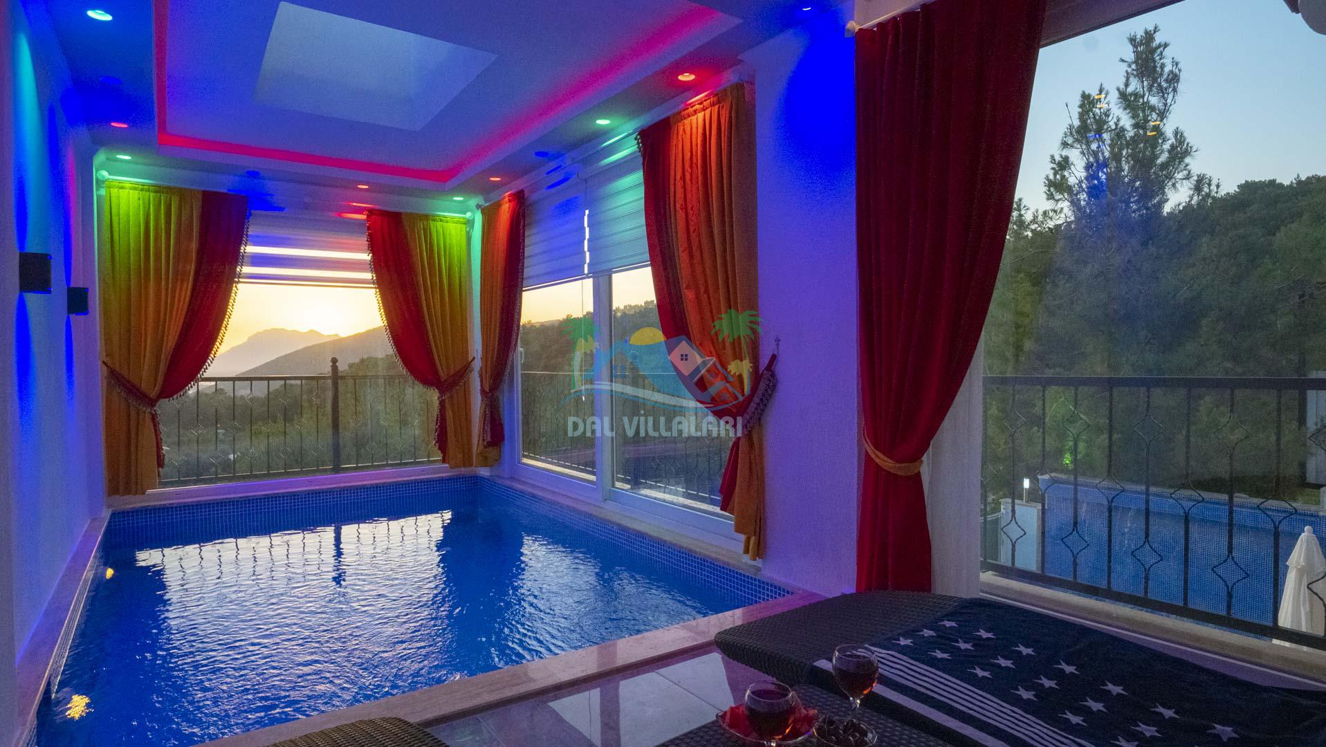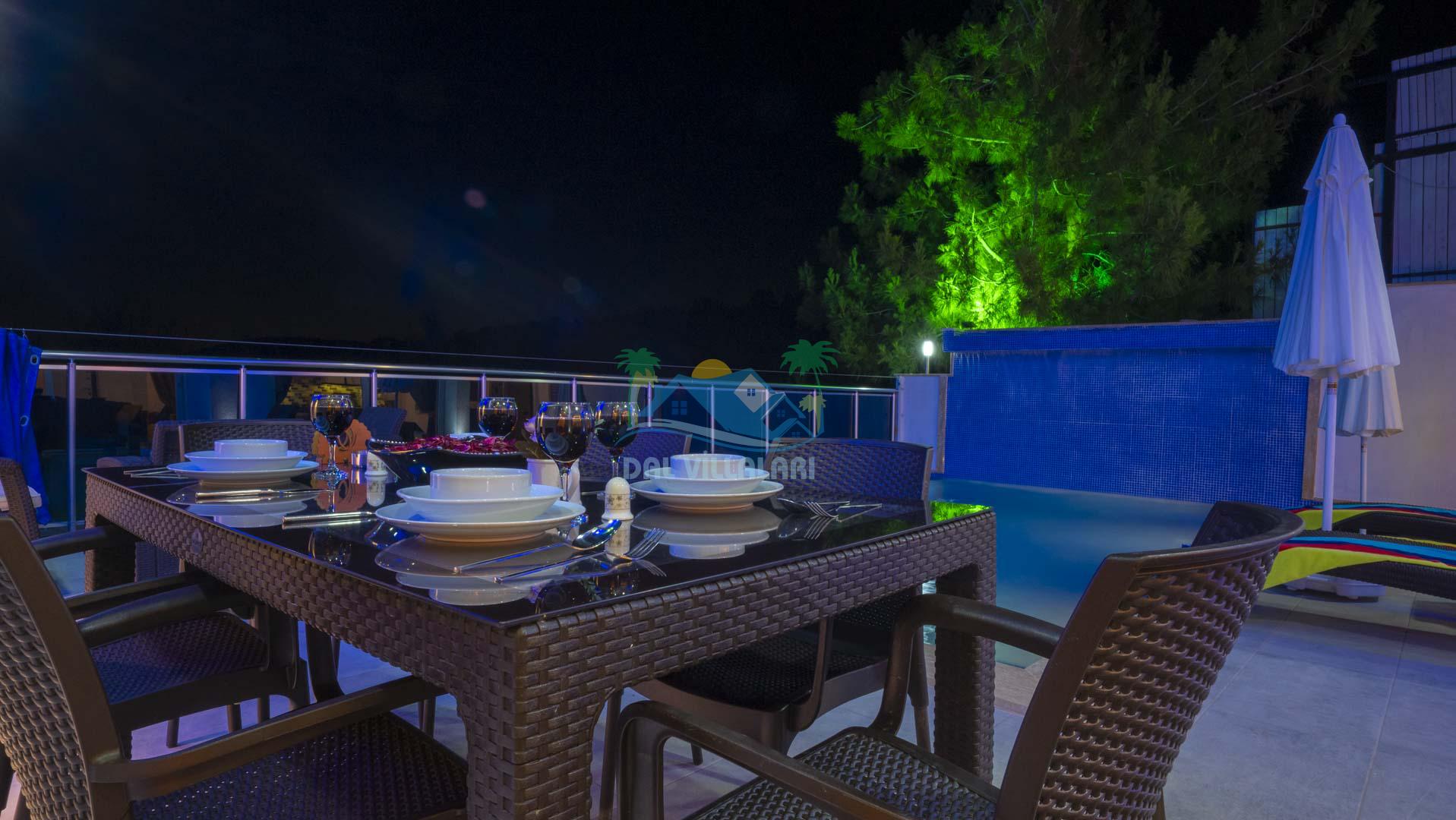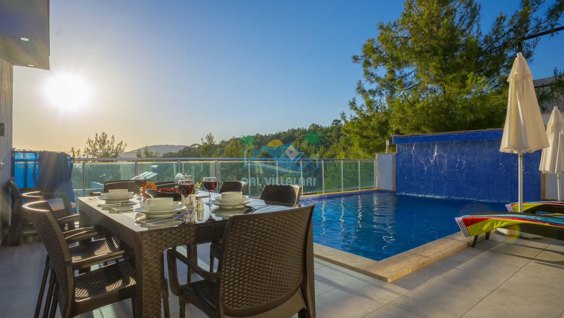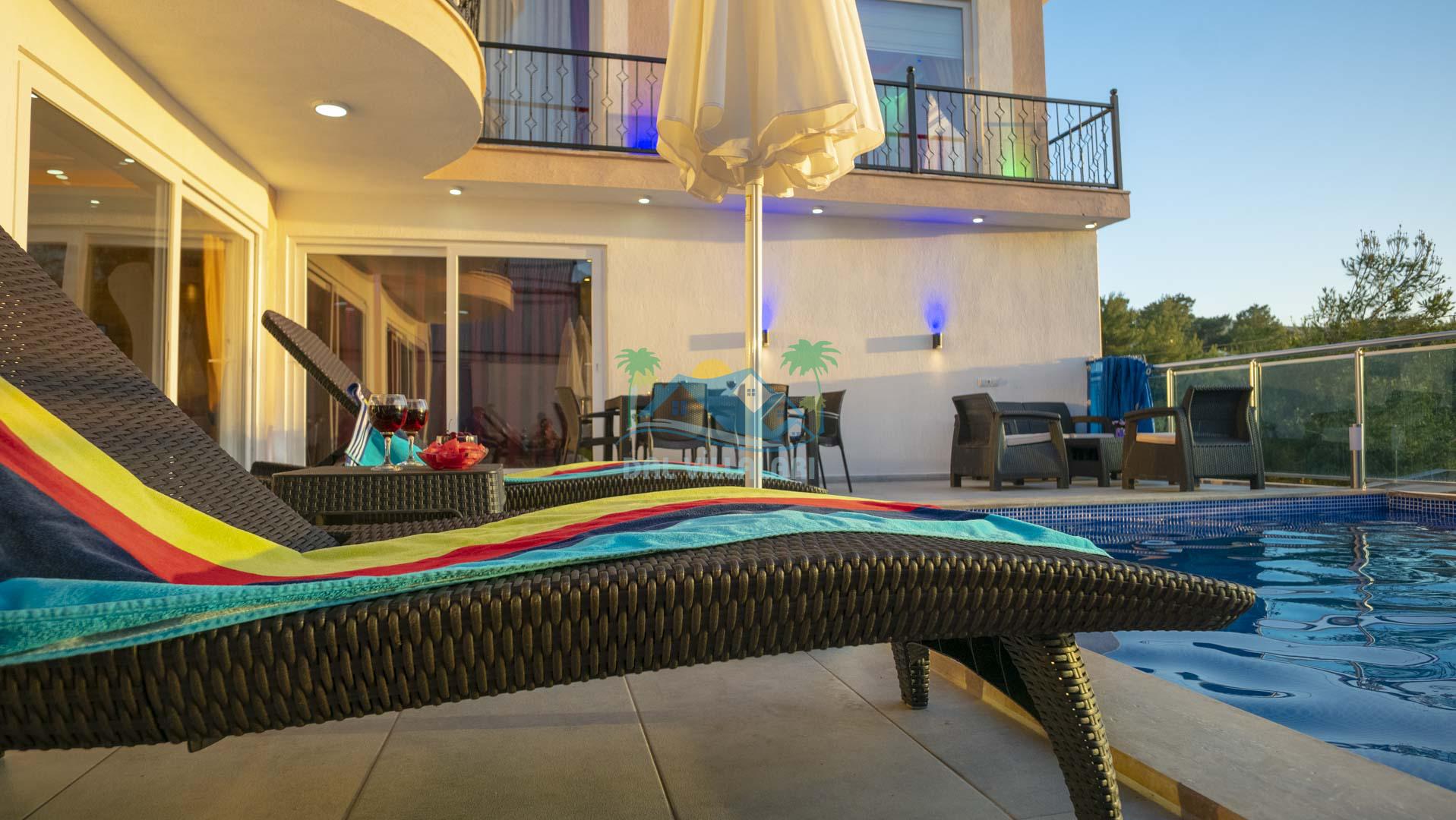 Kalkan Akbel mevkisinde bulunan kiralık balayı villası, 2 yatak odası ve 4 kişilik konaklama kapasitesi ile çocuklu ailelere ve balayı çiftlerine hitap etmektedir. Muhafazakar villalar ve balayı villaları kategorisinde yer alan villamızda soğuk kış aylarında havuz keyfini sürdürebilmeniz için kapalı ısıtmalı bir havuz yer almakta olup ekstra sinema salonuyla eğlenceli zamanlar geçirmenize olanak sağlamaktadır. Havuzu korunaklı ve bahçesi dışarıdan görünmeyen Villa Sare uzaktan deniz manzarasına sahiptir. Villamız, konumu itibariyle kalabalık şehir hayatından kaçmak isteyen ailelerimiz için unutulmaz bir tatil imkanı sunmaktadır.