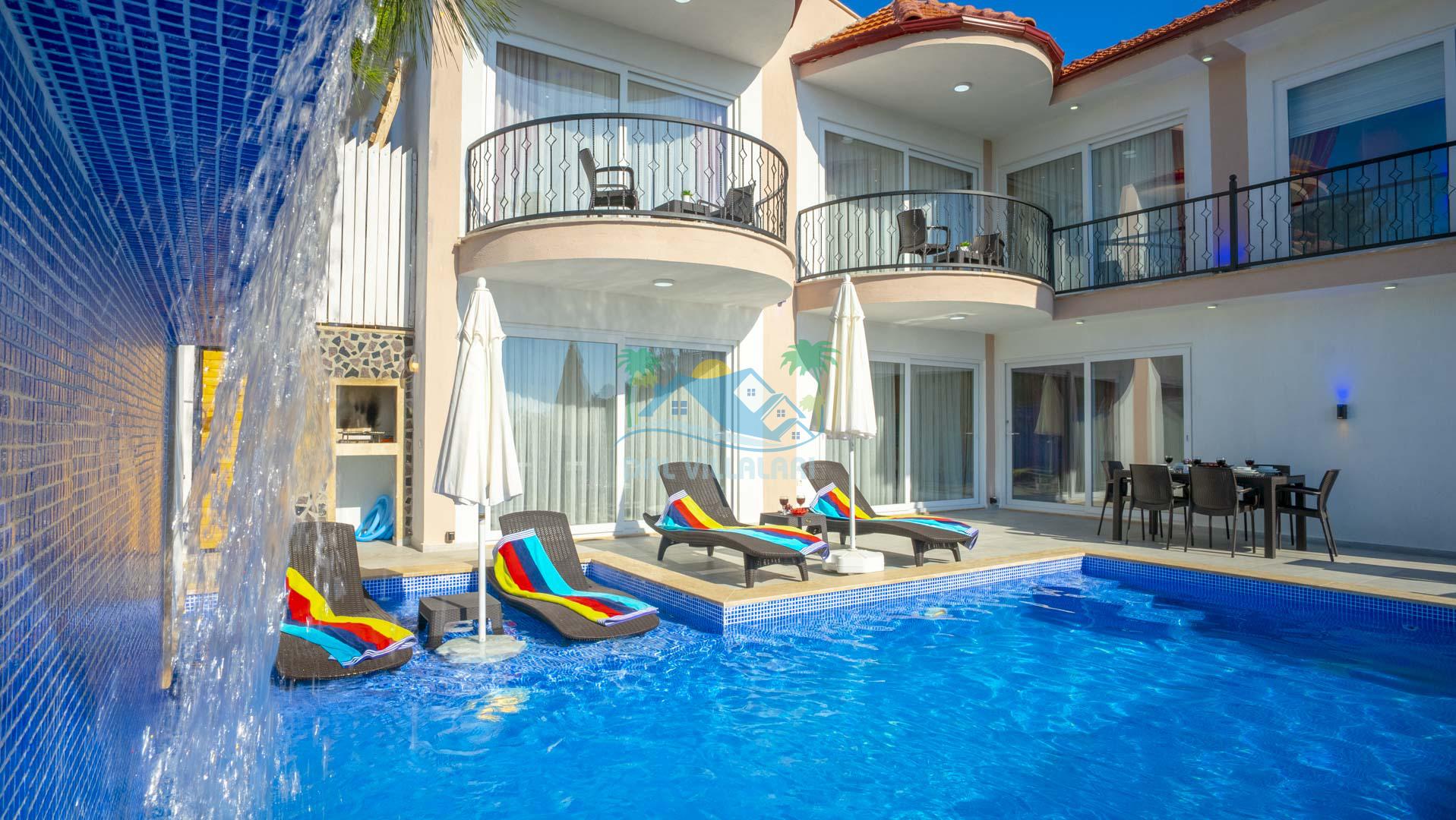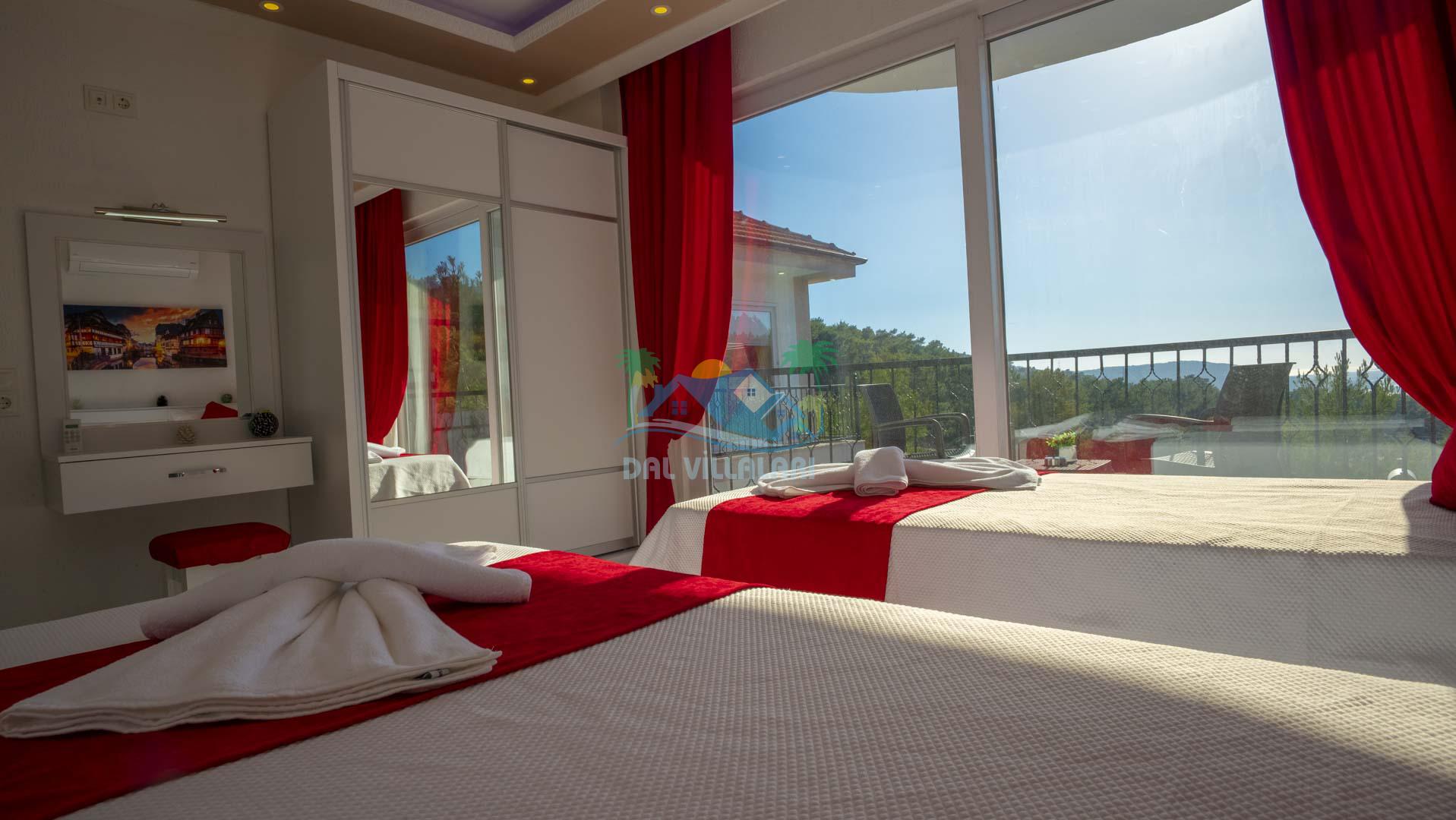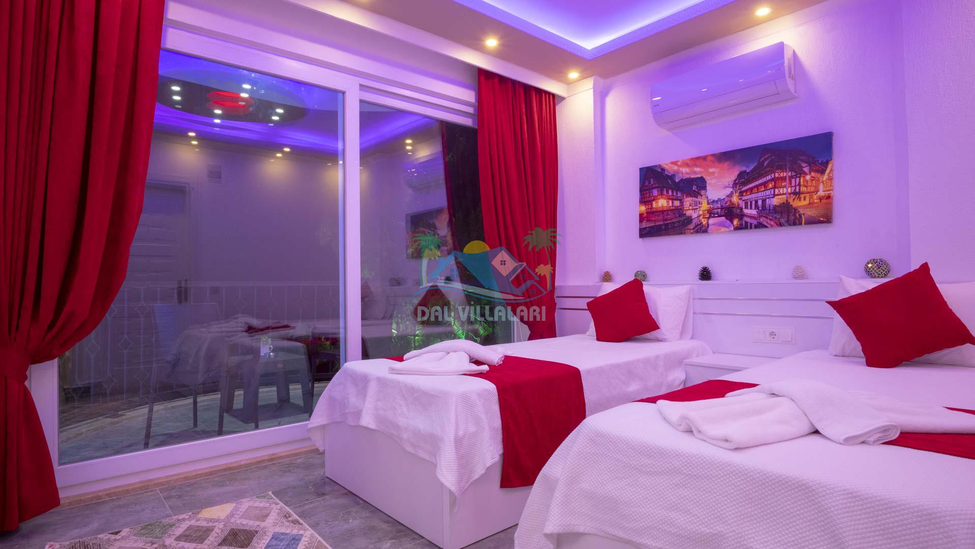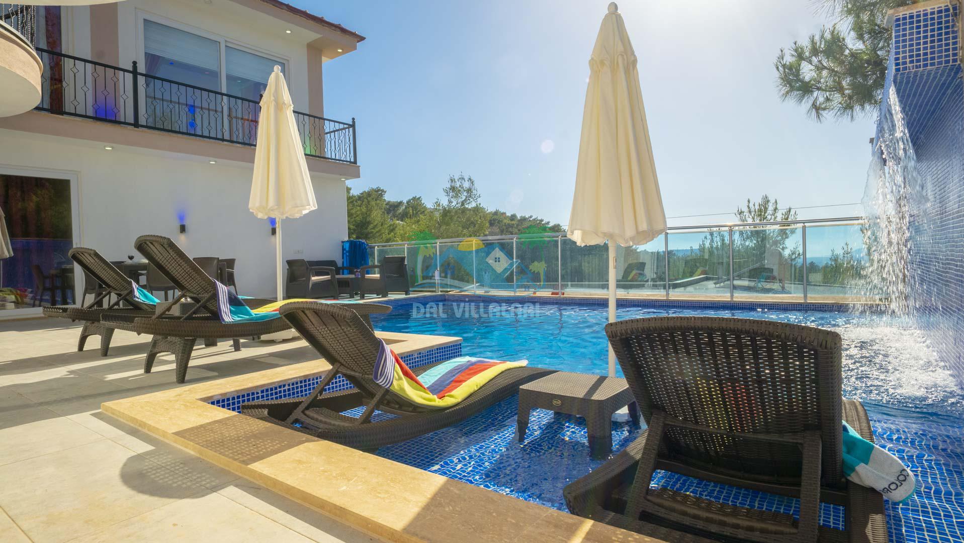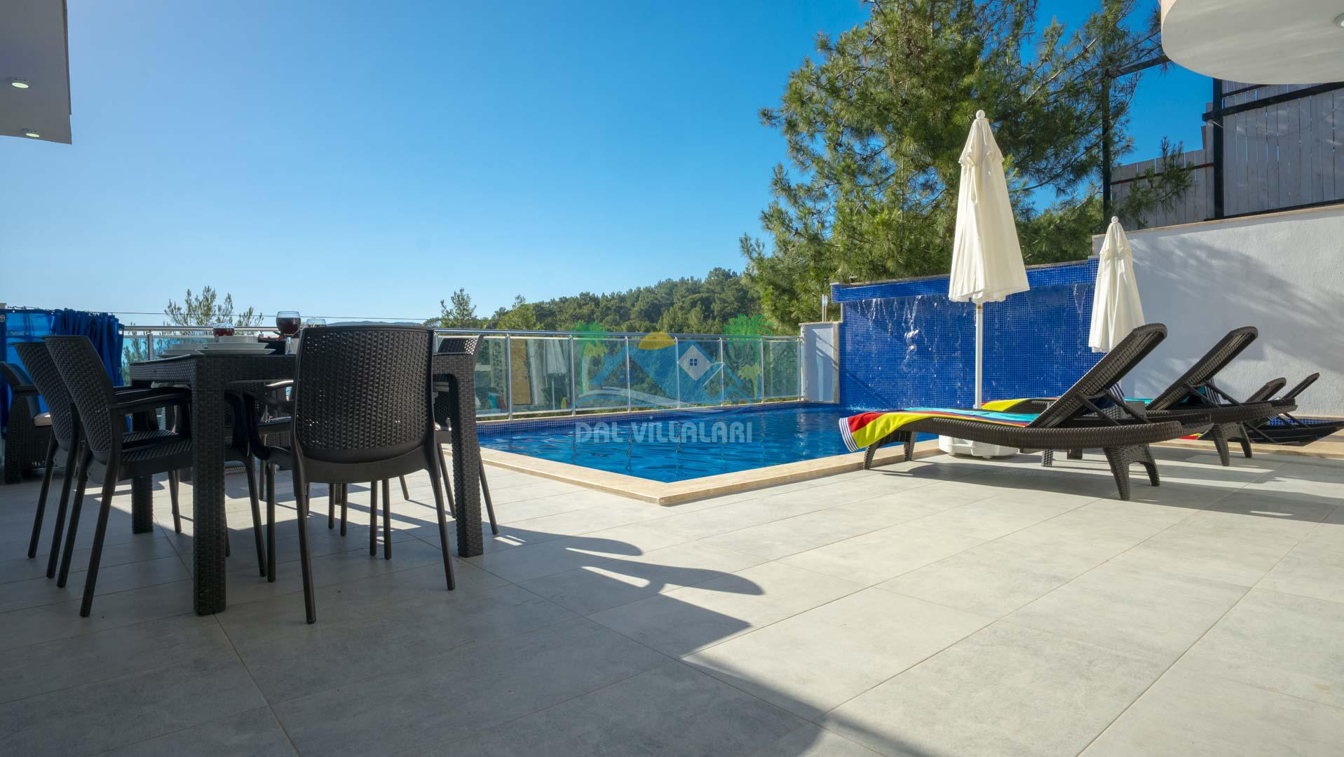 Kalkan Akbel mevkisinde bulunan kiralık balayı villası, 2 yatak odası ve 4 kişilik konaklama kapasitesi ile çocuklu ailelere ve balayı çiftlerine hitap etmektedir. Muhafazakar villalar ve balayı villaları kategorisinde yer alan villamızda soğuk kış aylarında havuz keyfini sürdürebilmeniz için kapalı ısıtmalı bir havuz yer almakta olup ekstra sinema salonuyla eğlenceli zamanlar geçirmenize olanak sağlamaktadır. Havuzu korunaklı ve bahçesi dışarıdan görünmeyen Villa Sare uzaktan deniz manzarasına sahiptir. Villamız, konumu itibariyle kalabalık şehir hayatından kaçmak isteyen ailelerimiz için unutulmaz bir tatil imkanı sunmaktadır.